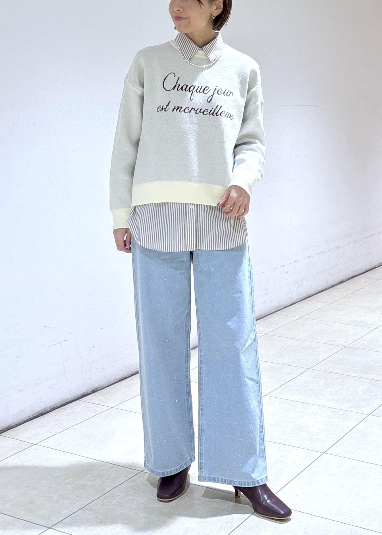 コーディネートに馴染んでくれるキラキラ感がポイントのデニムパンツです。 -