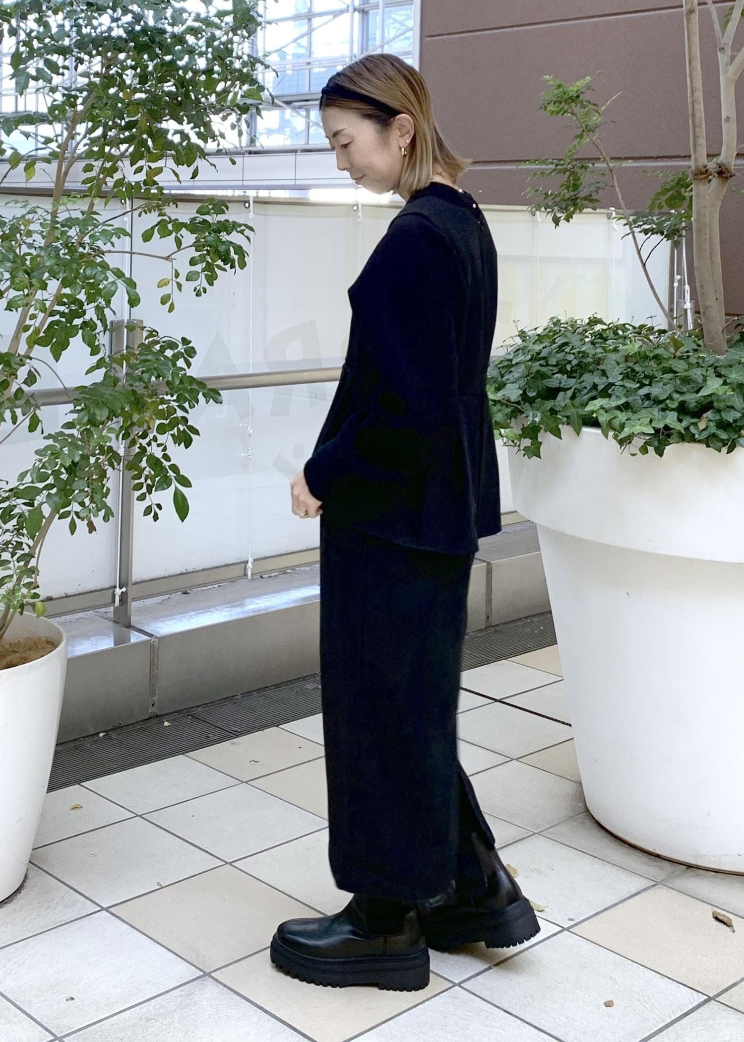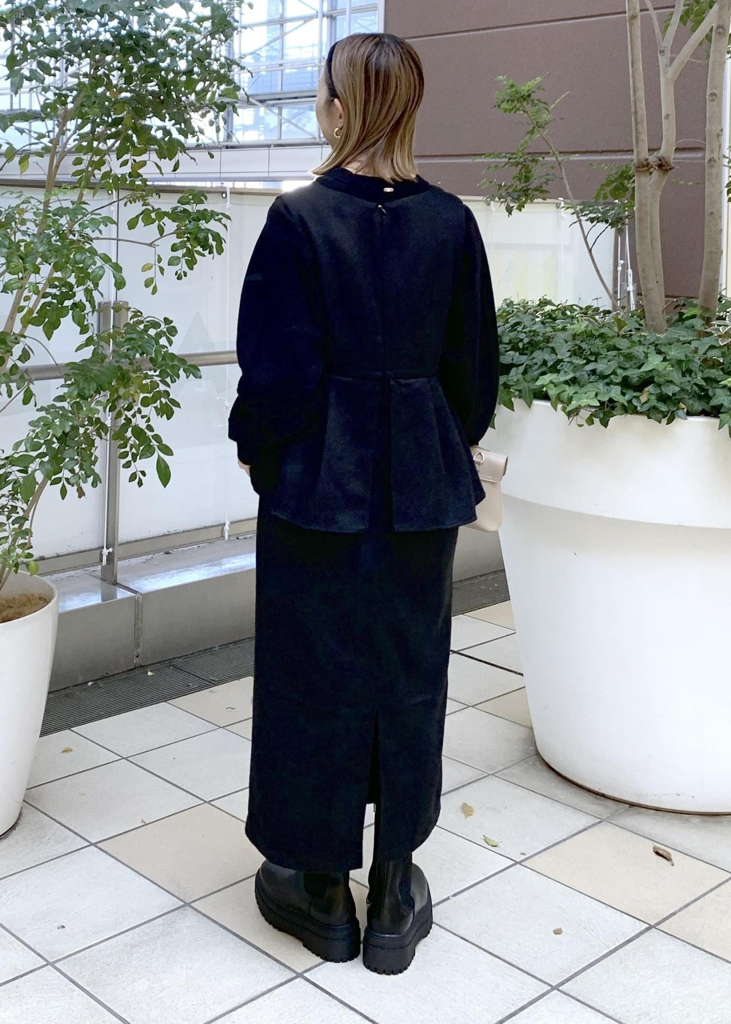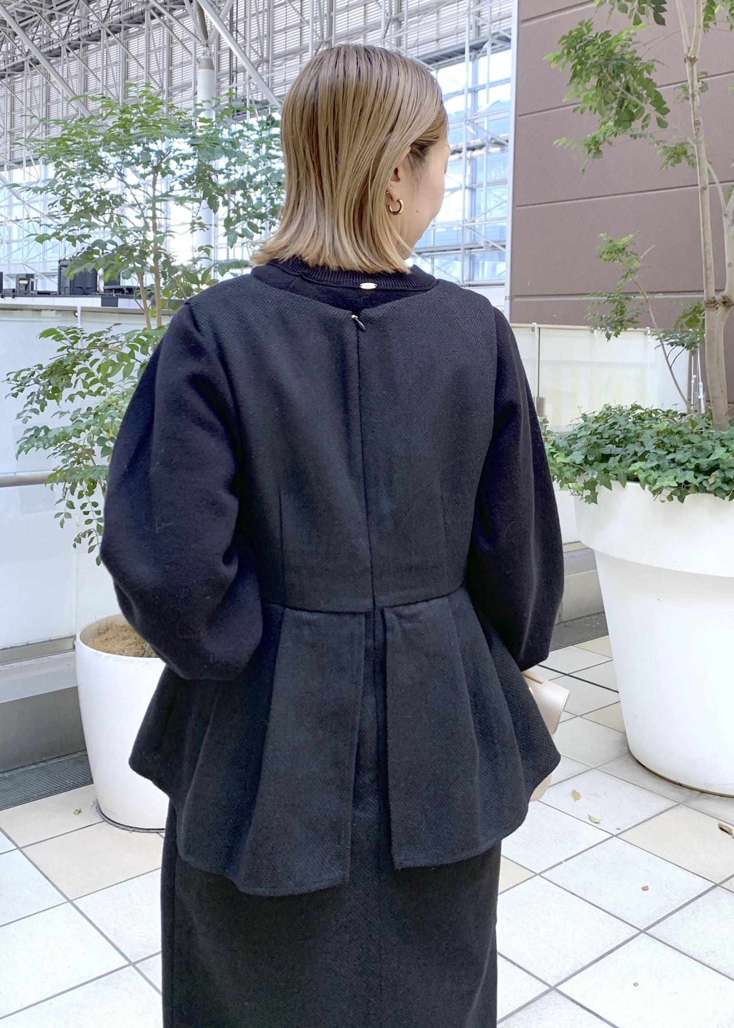 ペプラムが可愛らしいので、カラーはオールブラックで大人も着やすいスタイリングに。