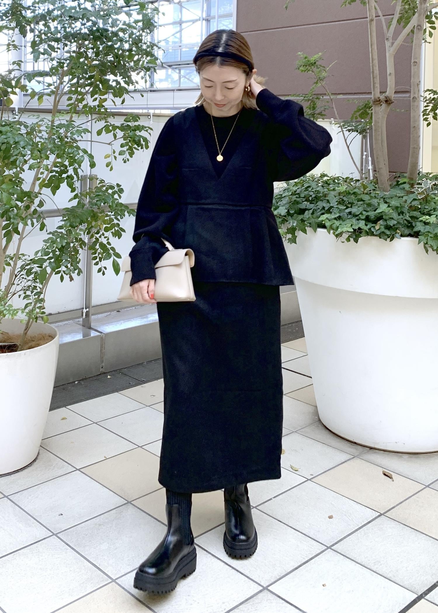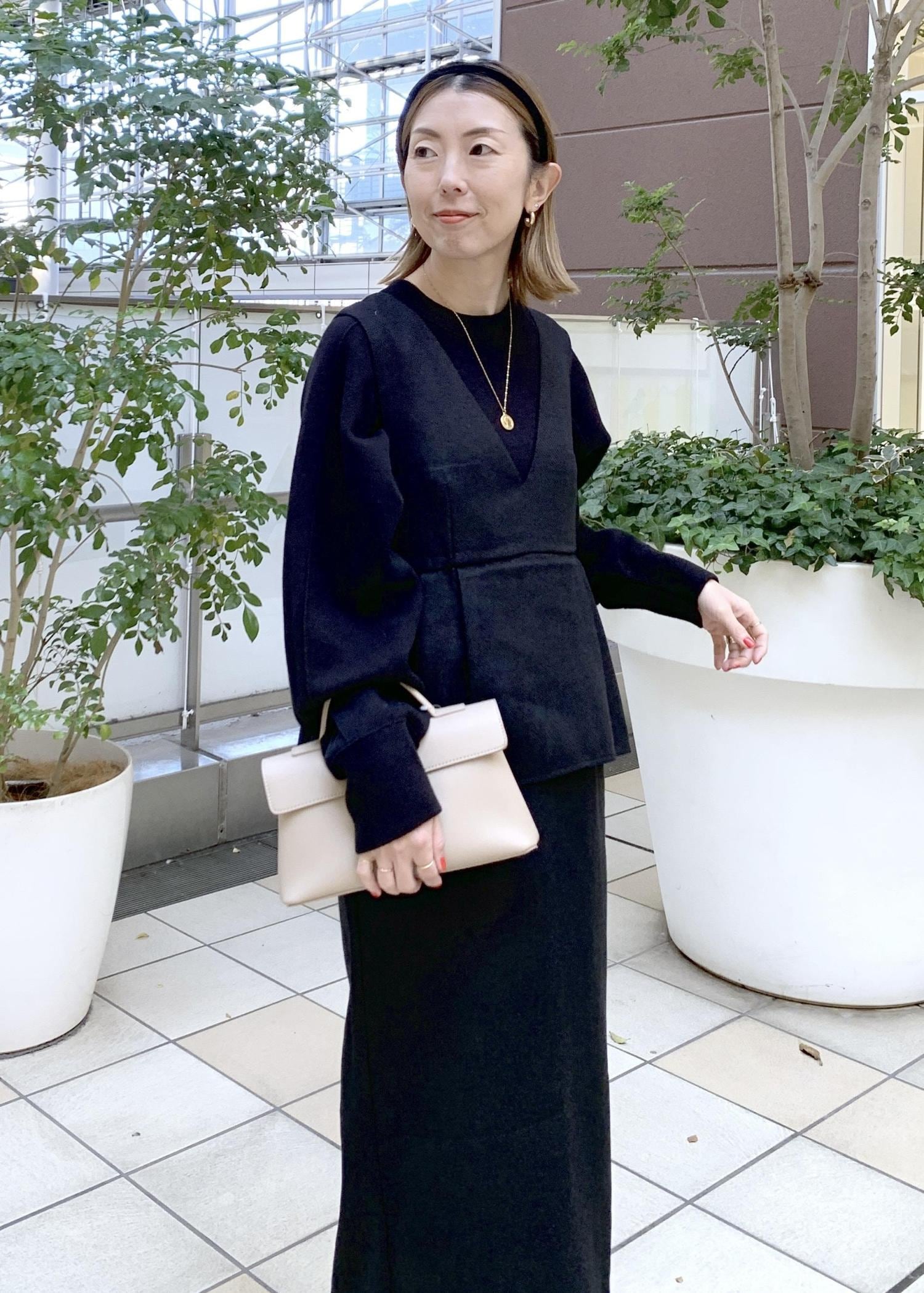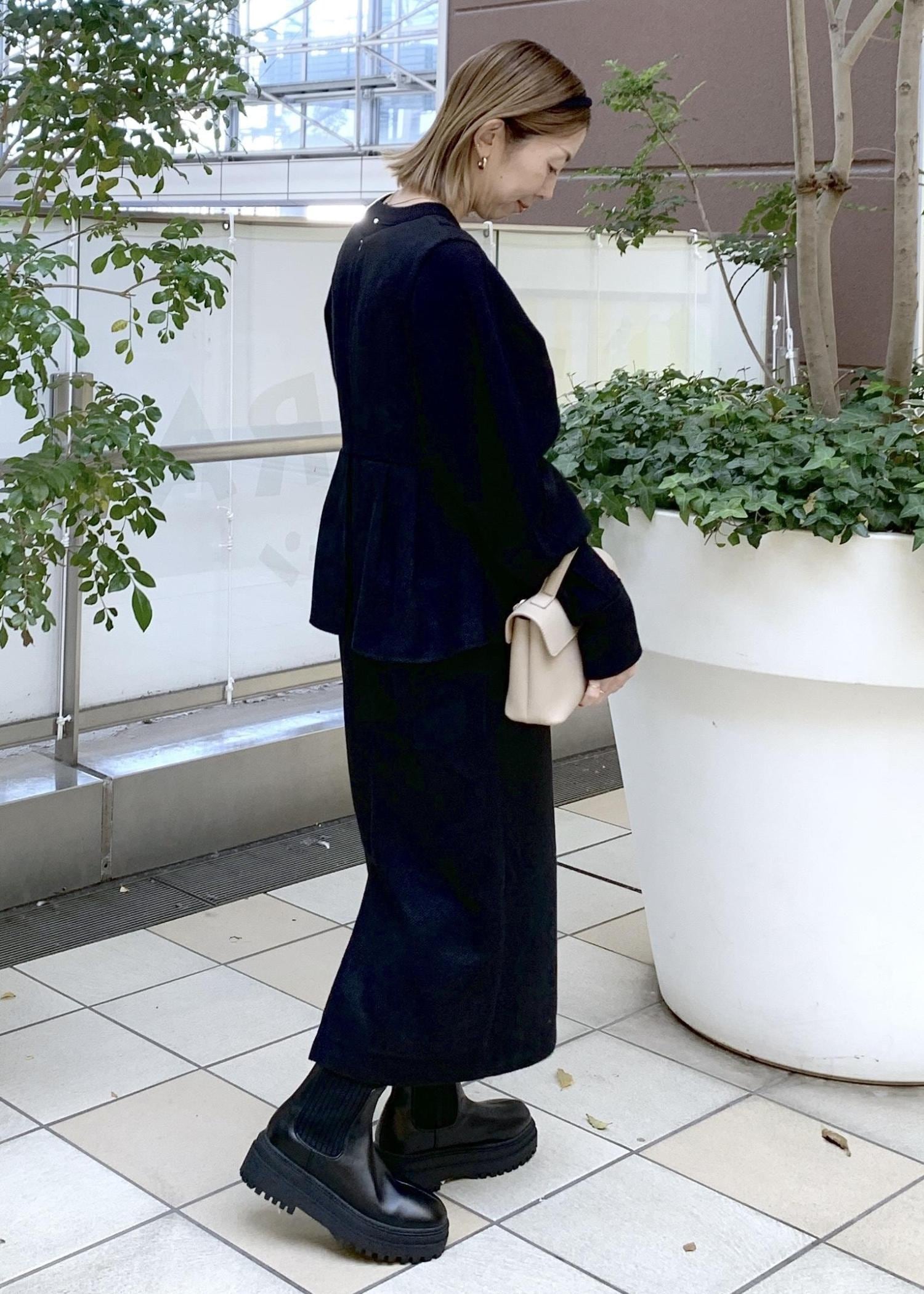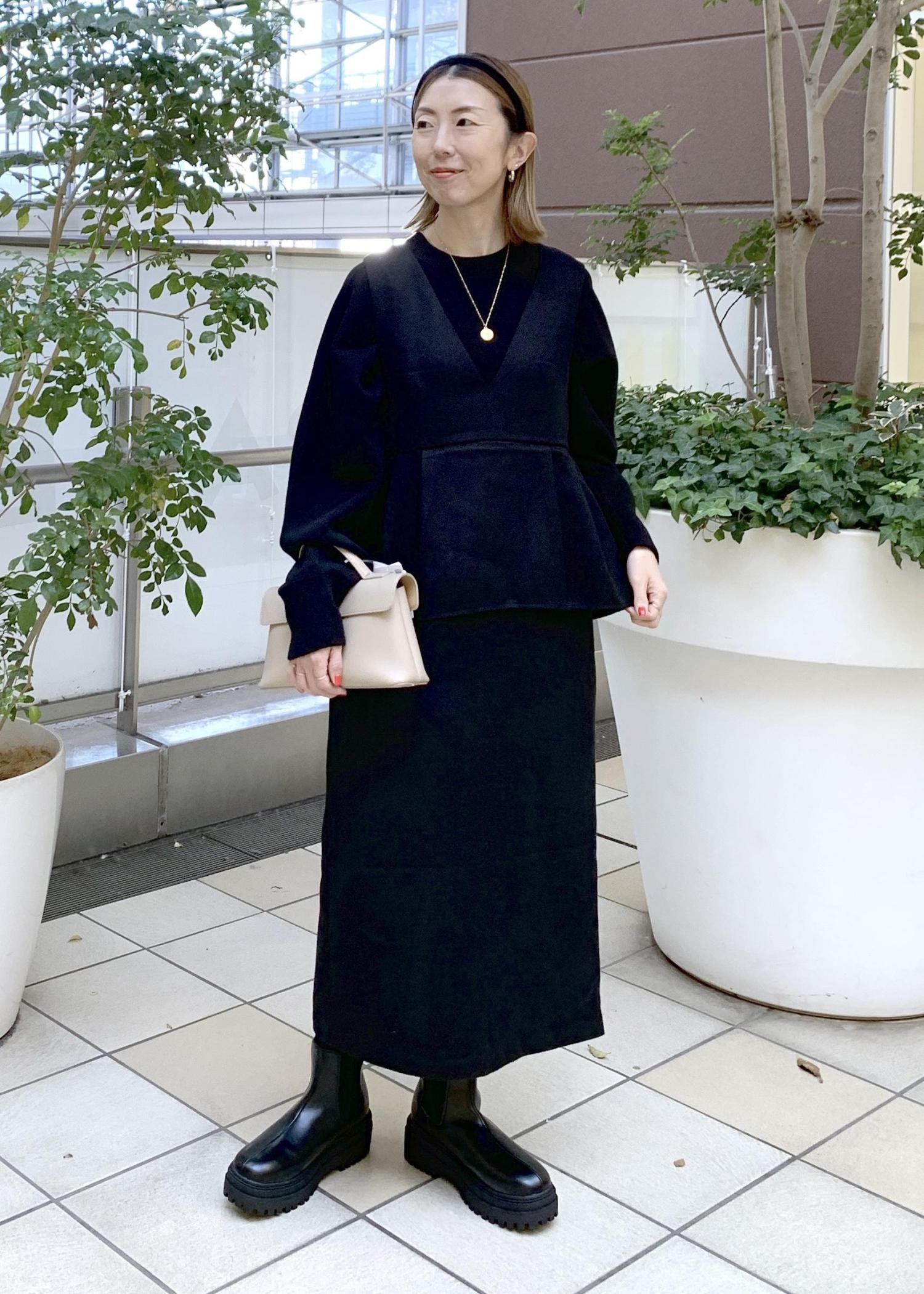 ペプラムが可愛らしいので、カラーはオールブラックで大人も着やすいスタイリングに。