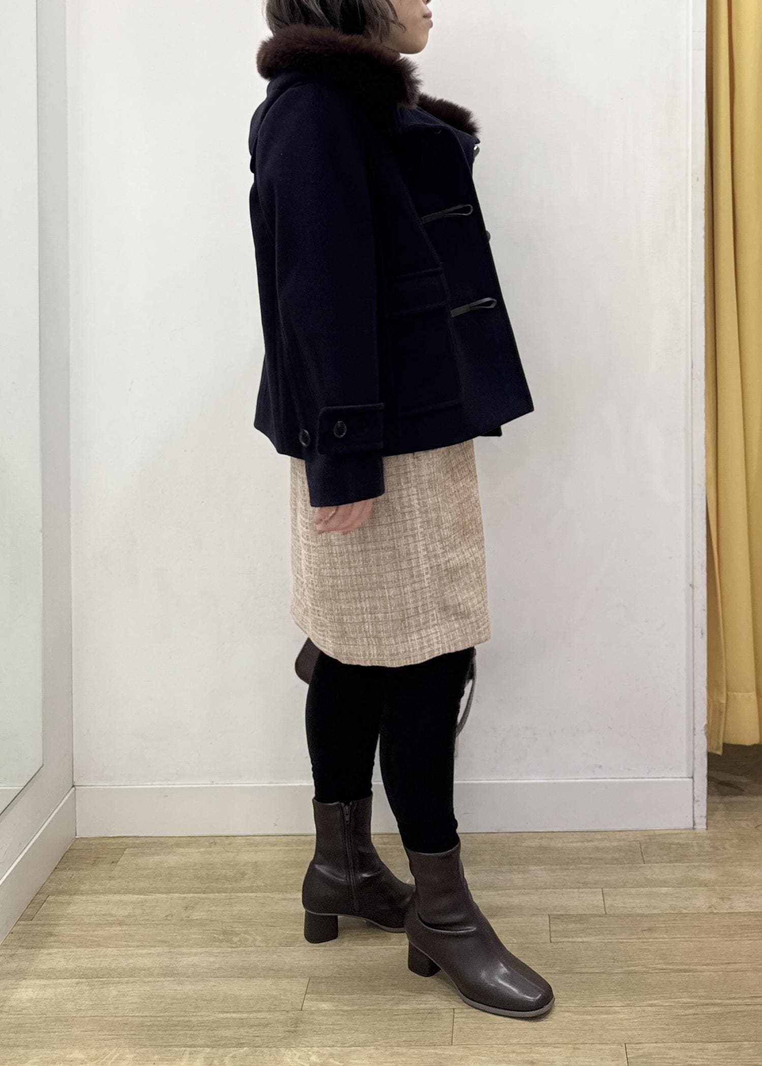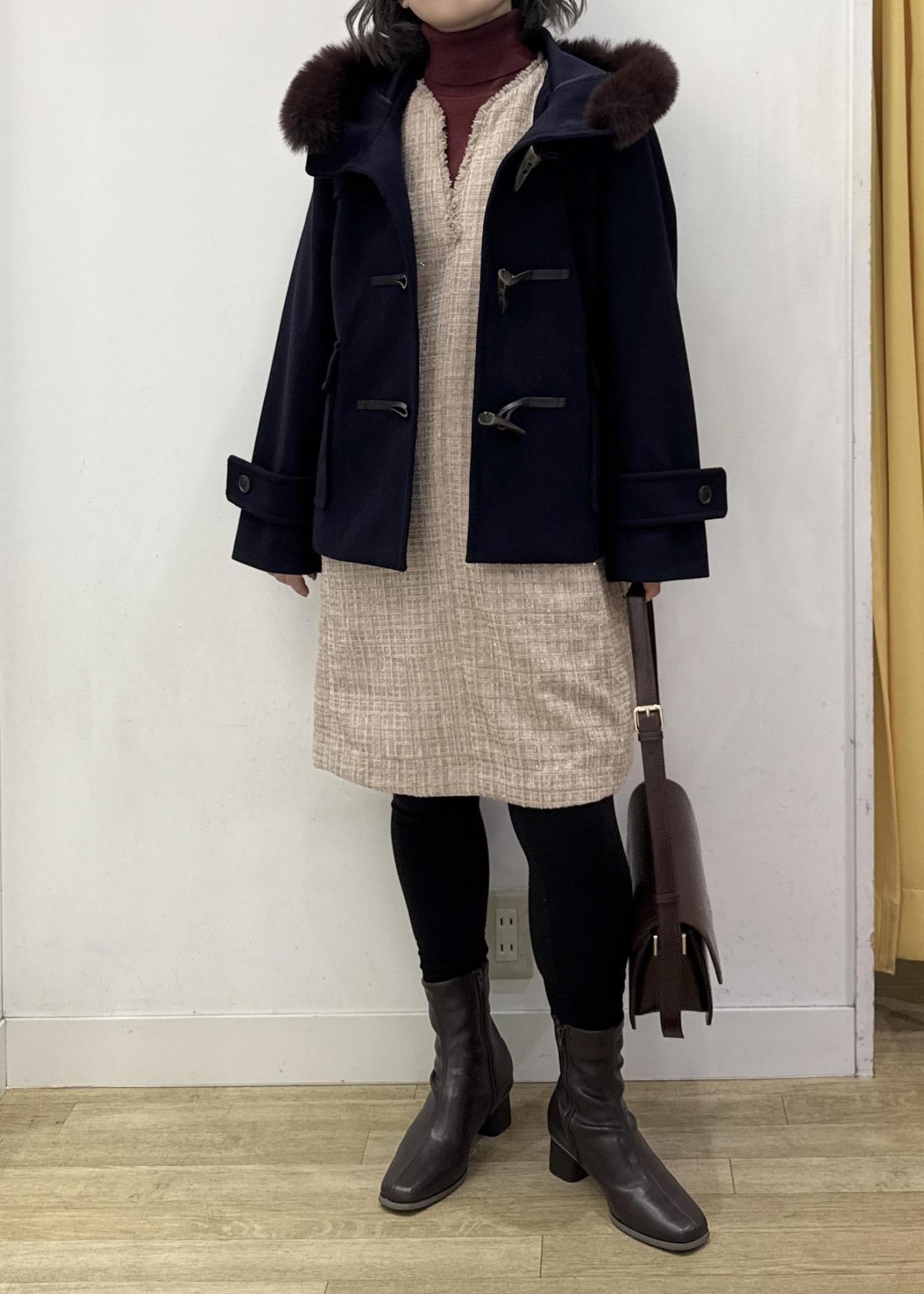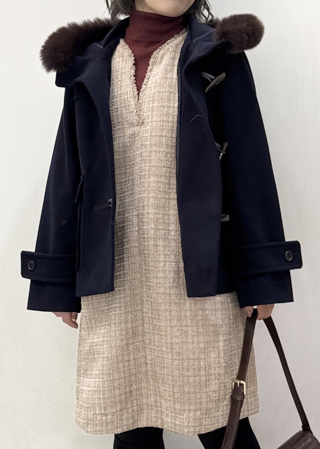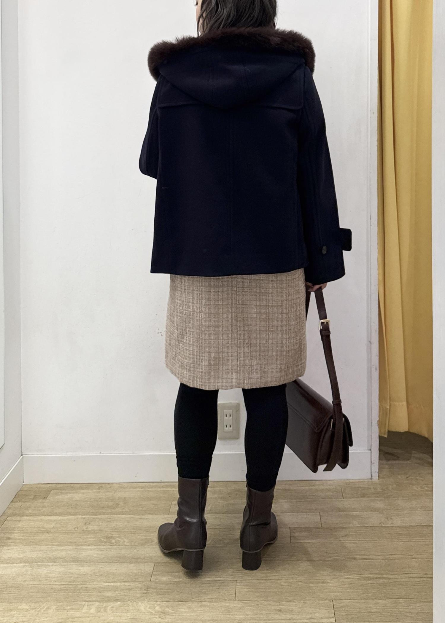 ROPÉ PICNICジャージーメルトンシリーズ ファー付きショートダッフルコート/リンクコーデネイビー / M¥13,200レビューMサイズで程よくゆとりもあり、ニット合わせでも窮屈感が気にならずに着られました。