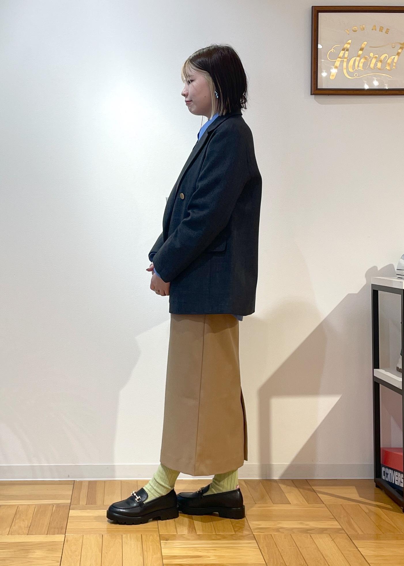サラッと着心地のいいゆったりシャツにスッキリ見えするスカートの組み合わせはスタイルのメリハリがつくのでおすすめです♩