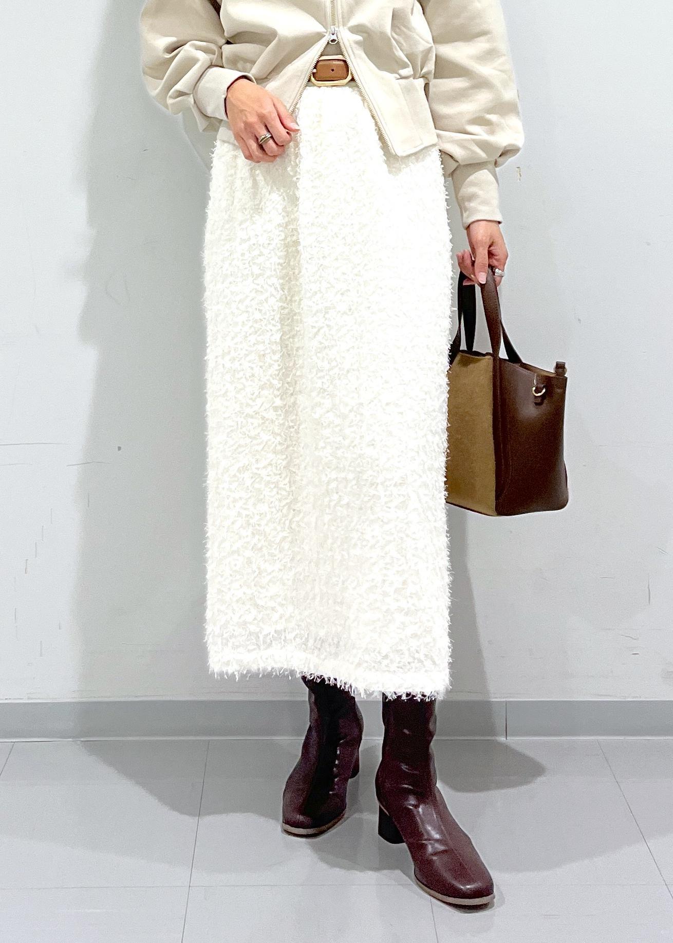 ホースヘア調のシャギー素材がアクセントになりコーディネートのポイントに。 -