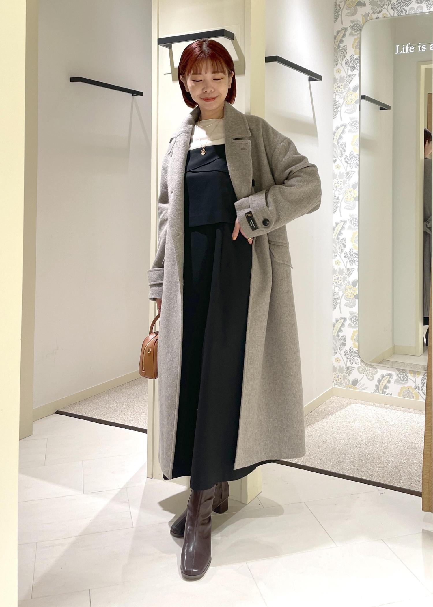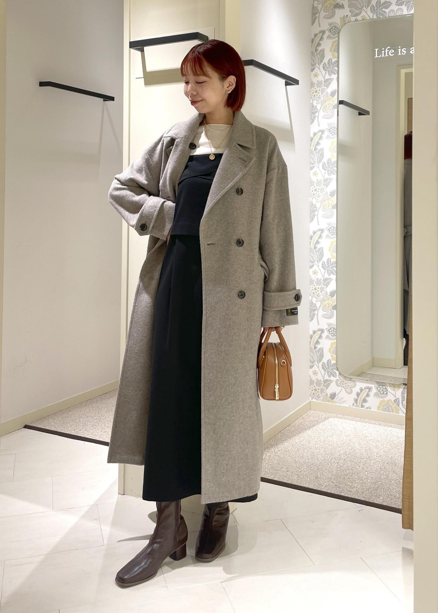 セットアップ見えするワンピースにコートをさらっと合わせて、年末年始のイベントシーンにもオススメのコーディネートです◎