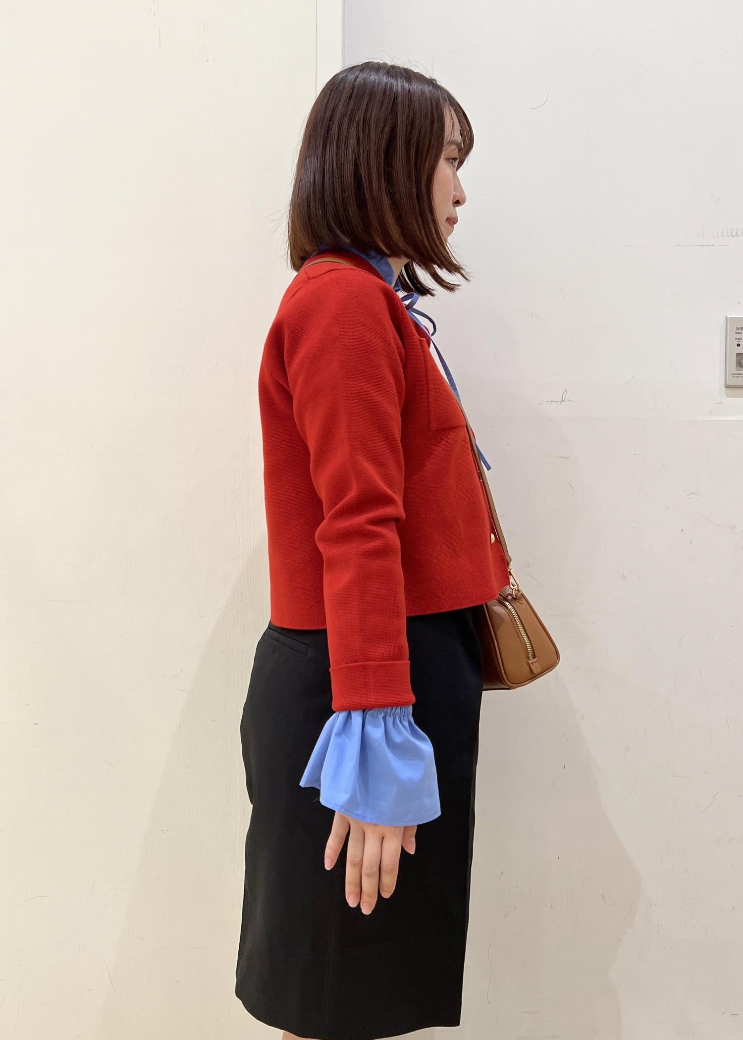 首元がリボンで結べたり、袖口がボリュームのあるシルエットなので女性らしいアイテムです! -