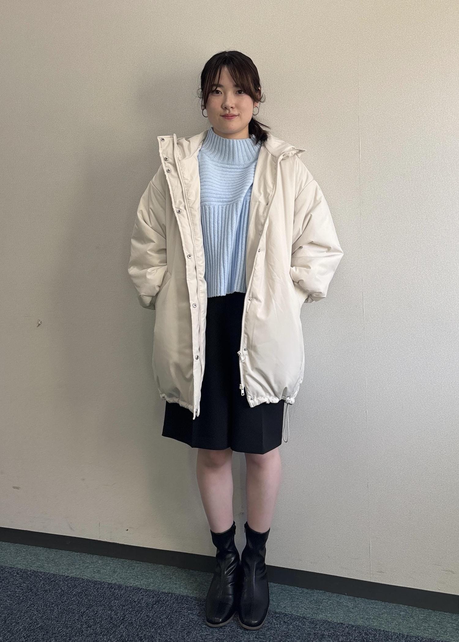 白アウターとブルーニットは、冬の最強可愛い組み合わせです。