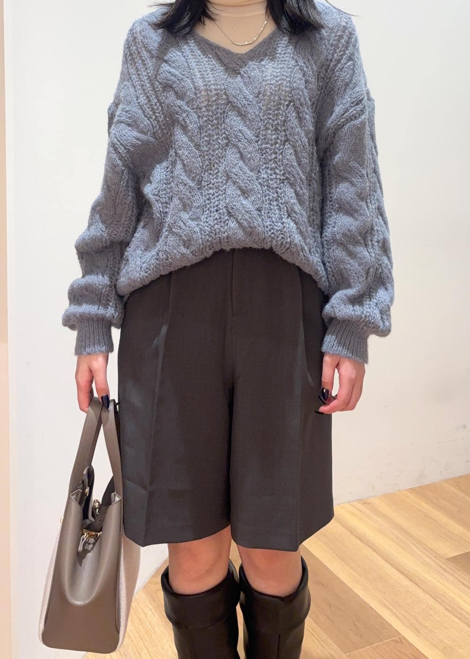 ROPÉ PICNICゆるケーブル編みVネックニットブルー系 / F¥5,489レビューゆったりとしていて、ヒップラインが隠れるくらいの長さです。ネックが空いていて、シャツやインナーなどレイヤードして着ていただけます。