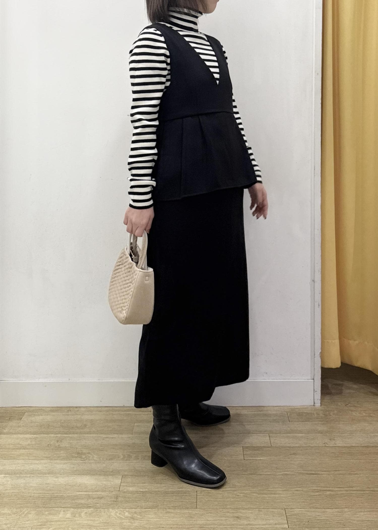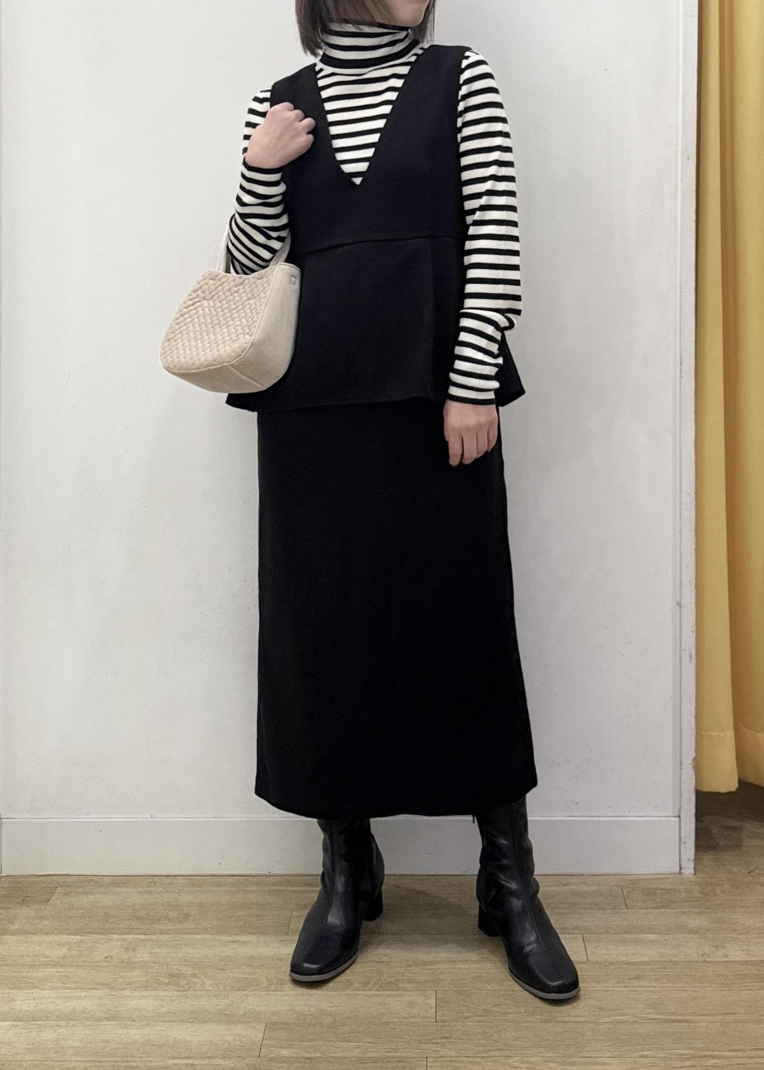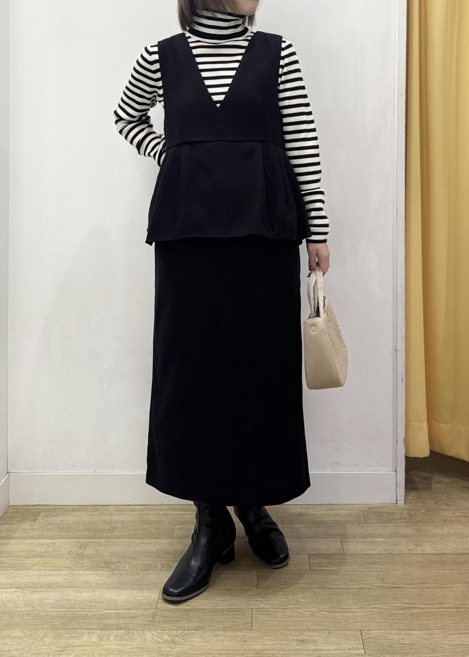ROPÉ PICNIC【新色追加】レイヤード風ペプラムジャンパースカートブラック / S¥7,997レビューSサイズで薄手のニット合わせで、程よくゆとりもあるサイズ感で着られました。