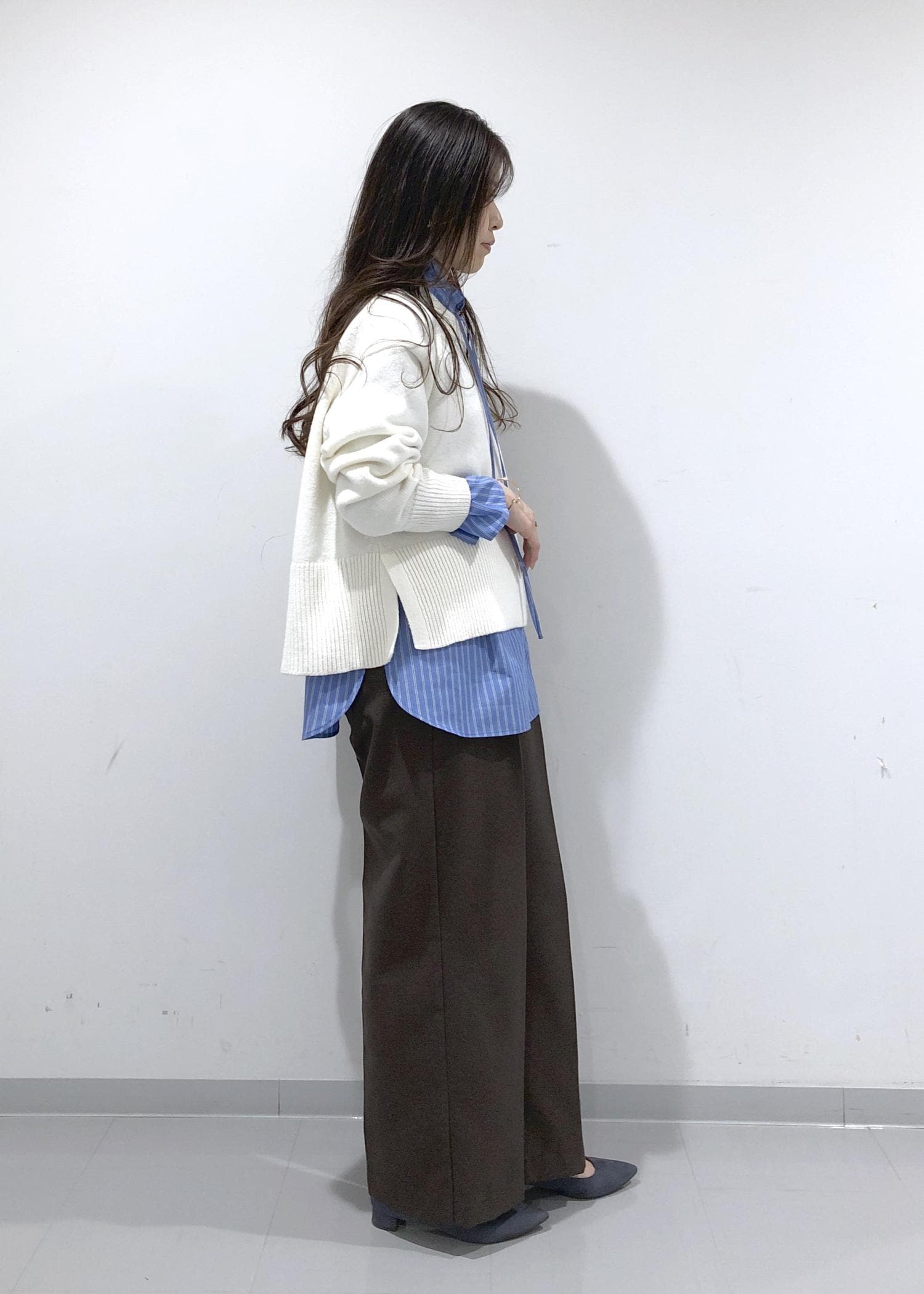 サイドにスリットが入っており抜け感を出せたり、レイヤードコーデのインナーがサイドから見えて動きが出ます!