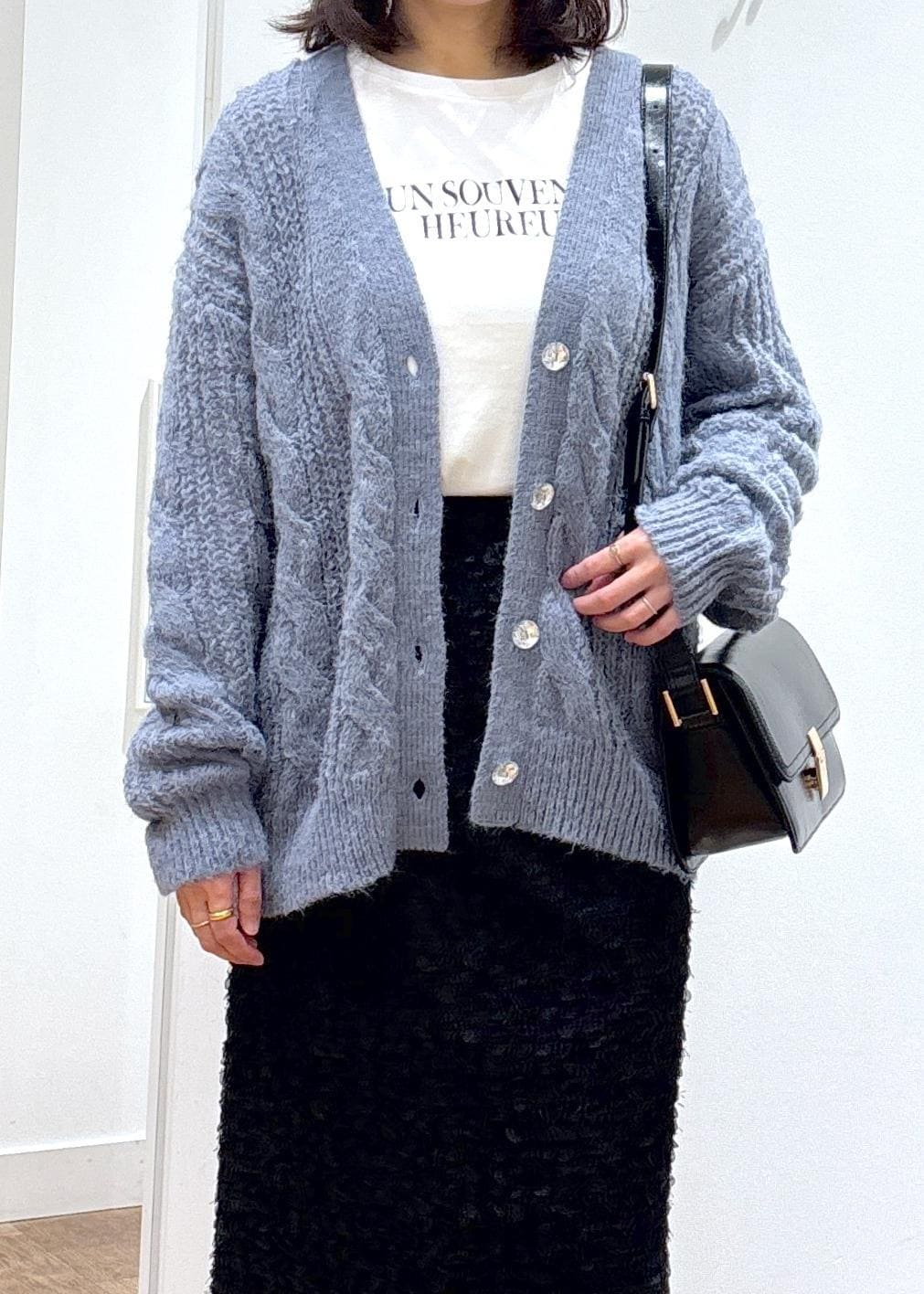 ゆるケーブル編みVネックカーディガン
