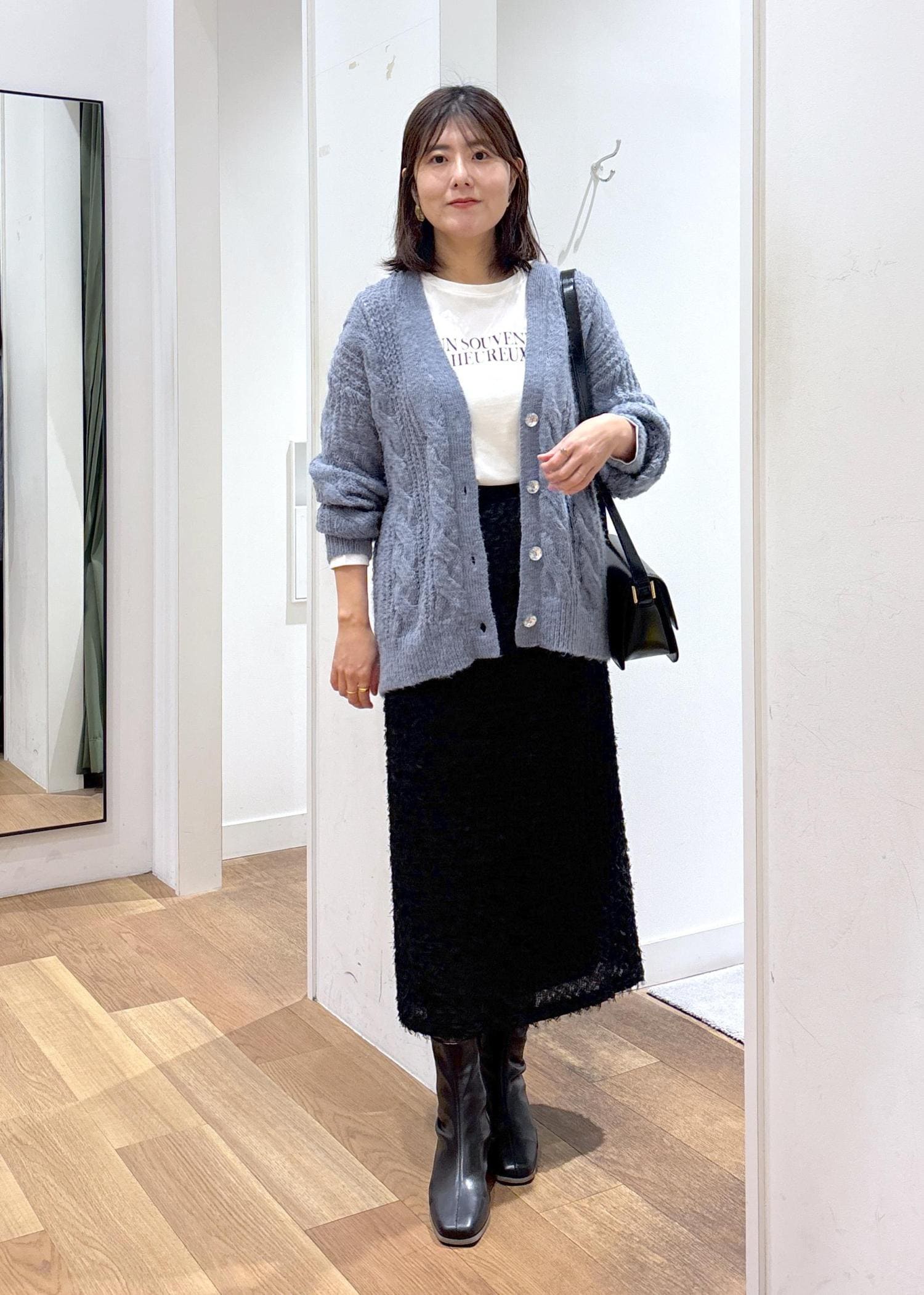 お尻が隠れる着丈なので安心感もあります。 -