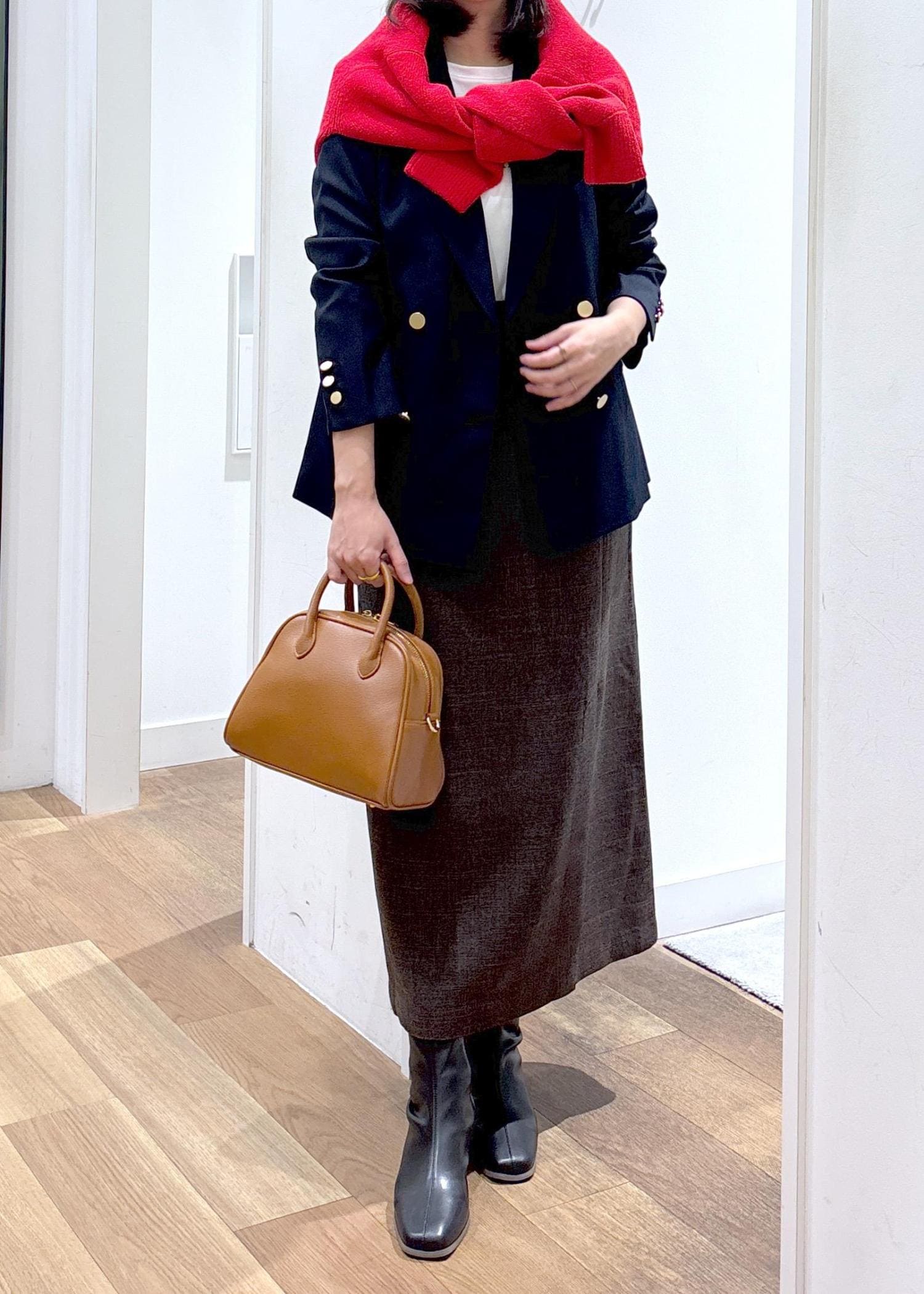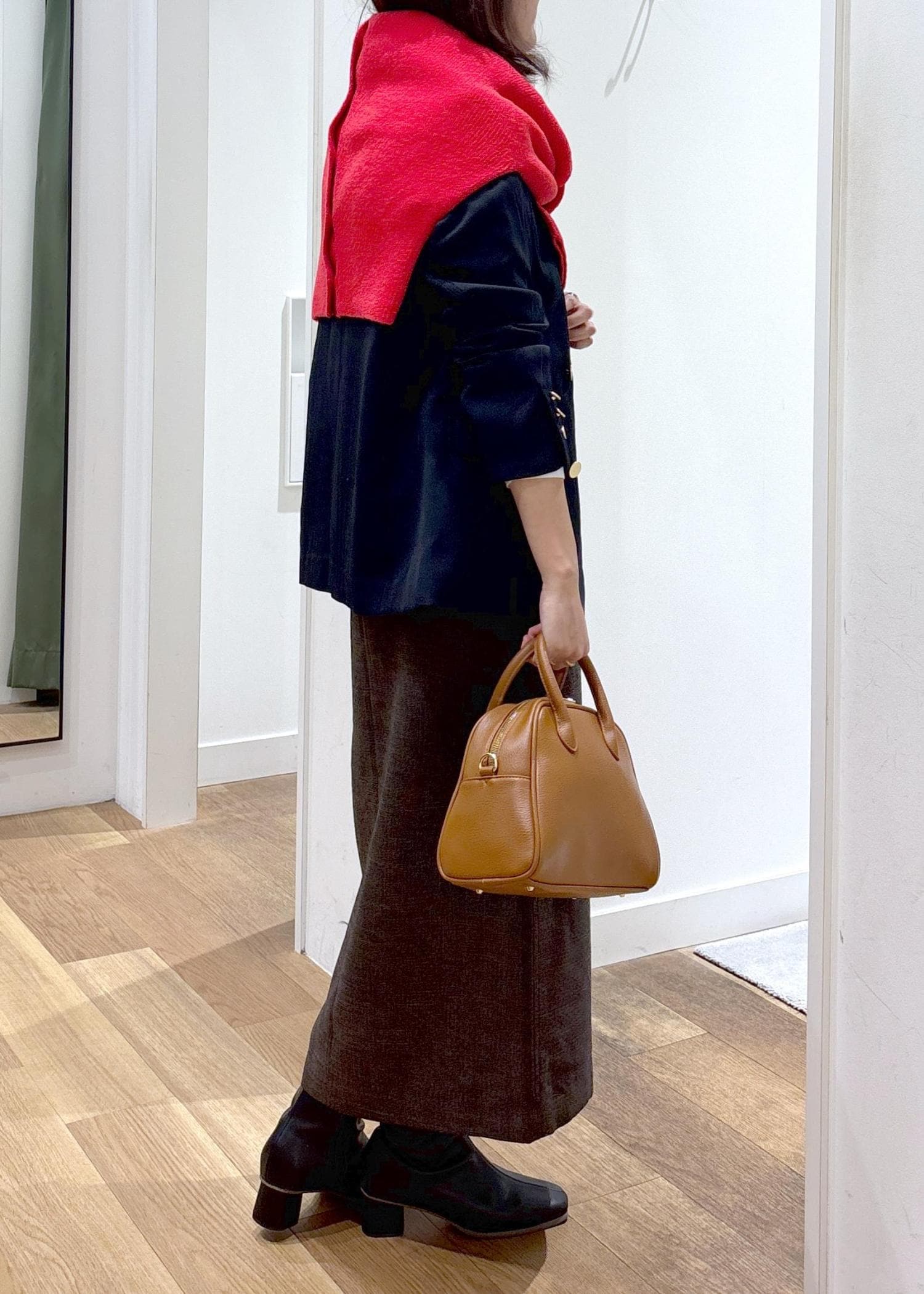 柔らかい素材のボストンです。手持ちでもショルダーでも使いやすい絶妙な大きさで、マチがしっかりあるので、収納力も◯です。