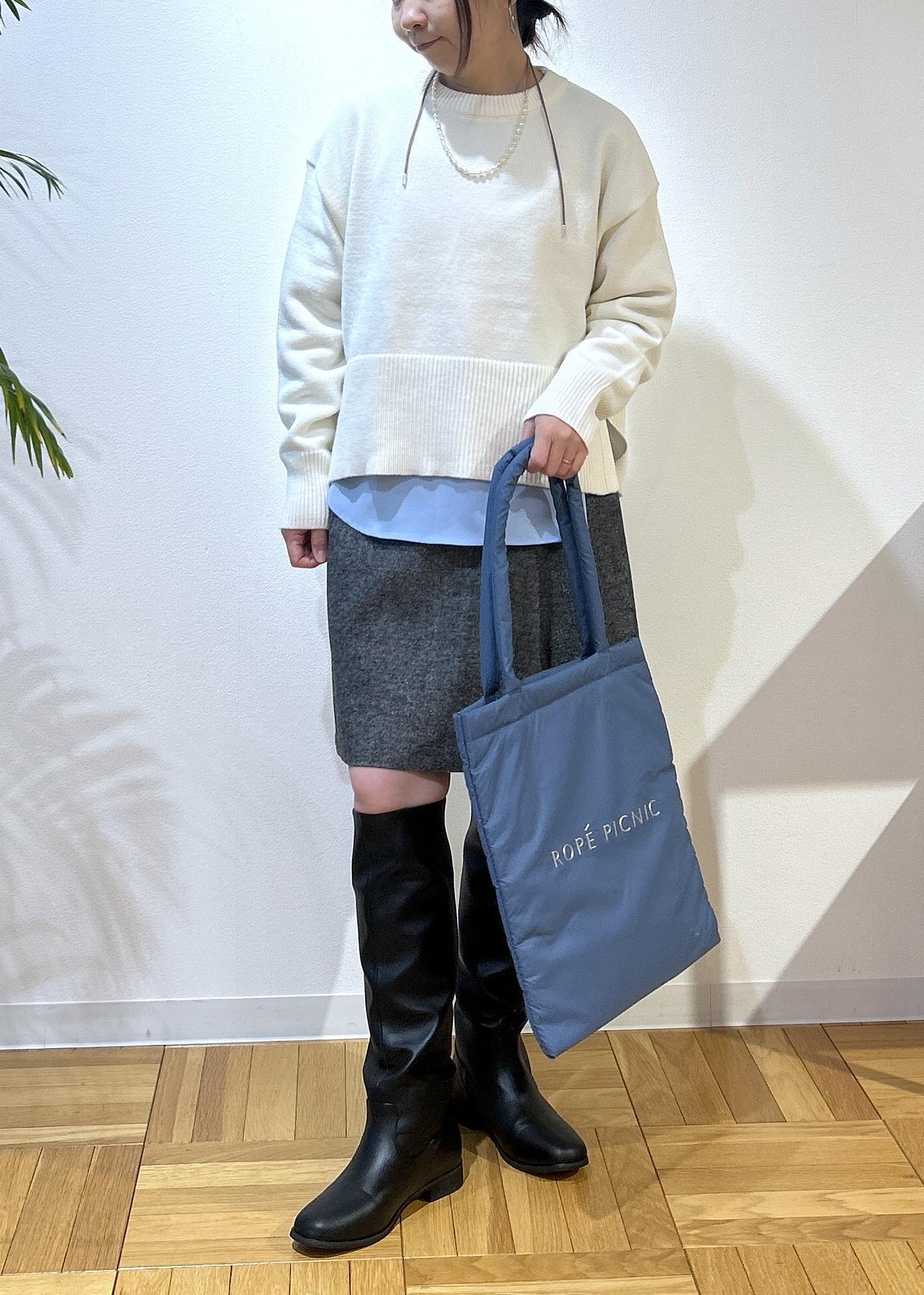 ラメ感が華やかさを出してくれるスカート。いつもSサイズをボトムスは穿いてますが、今回はMサイズで合わせてみました。ウエストはジャスト、着丈は膝上でした。