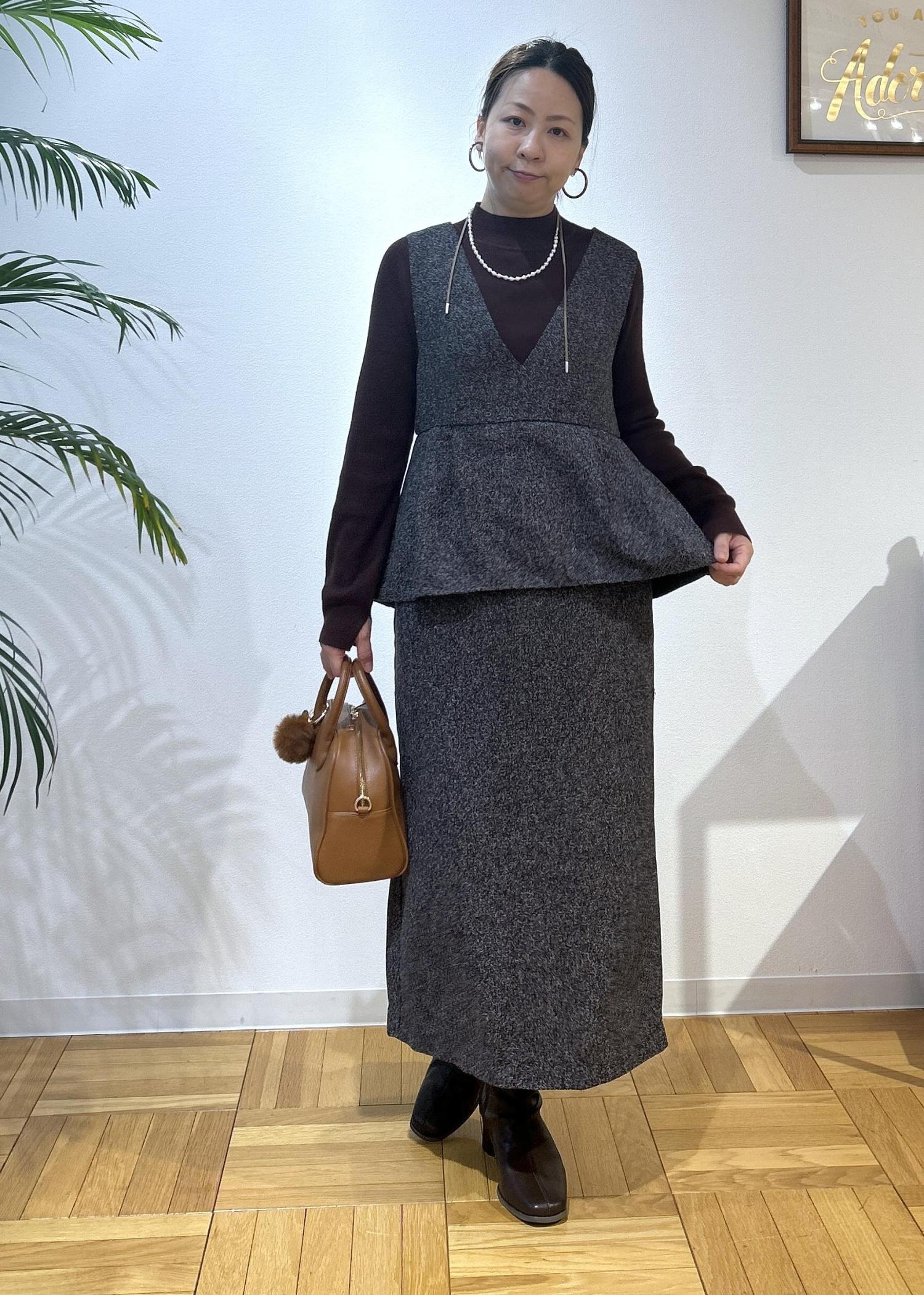 ROPÉ PICNIC【新色追加】レイヤード風ペプラムジャンパースカートダークブラウン / S¥7,997レビュー一枚で様になるワンピース。横幅広めかなと思ってましたが、きてみるの意外と着膨れしなかったです。着丈はSサイズでふくらはぎ半分くらいの長さでした。動きやすさもありましたのでタイトすぎないところも良いです。