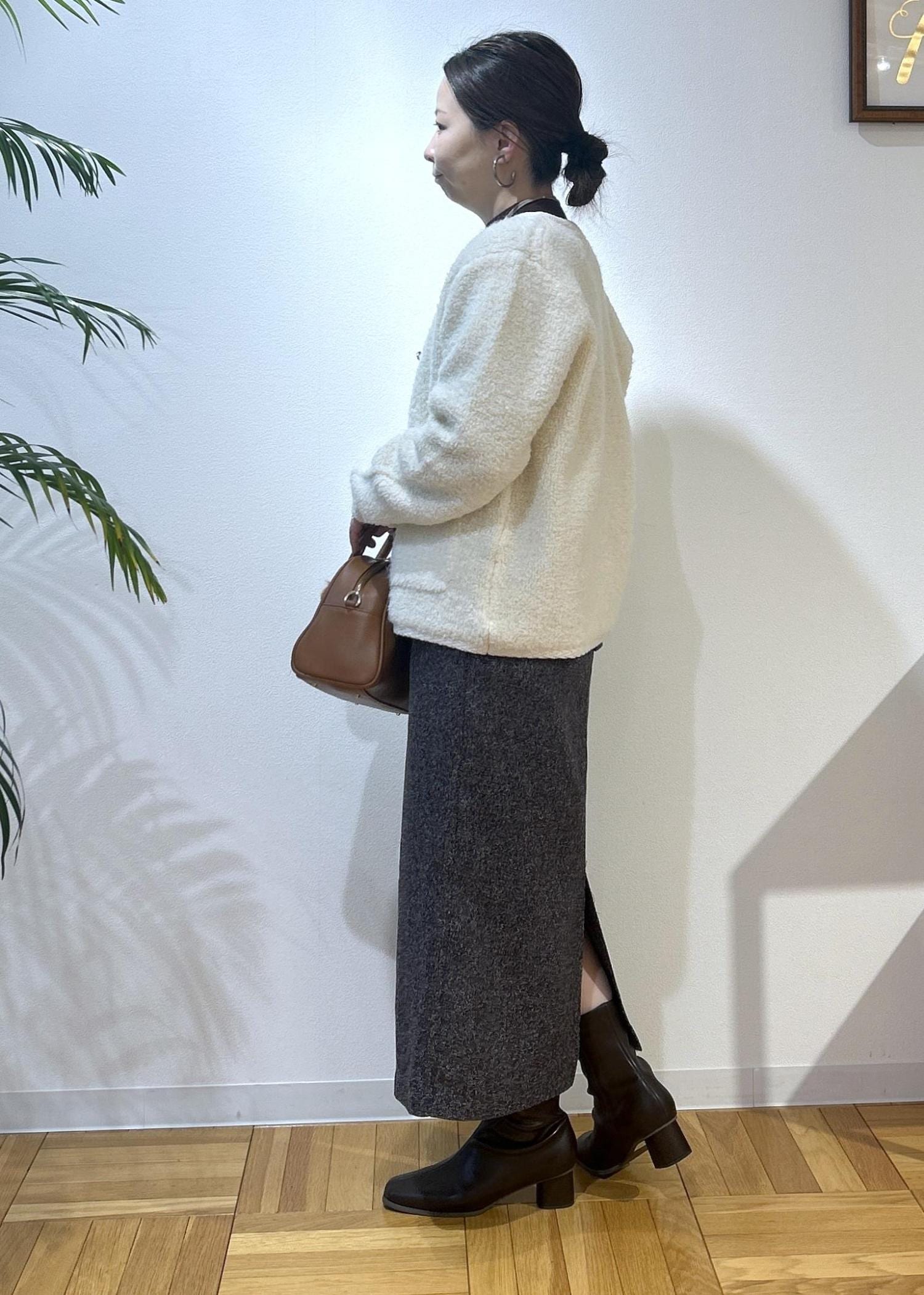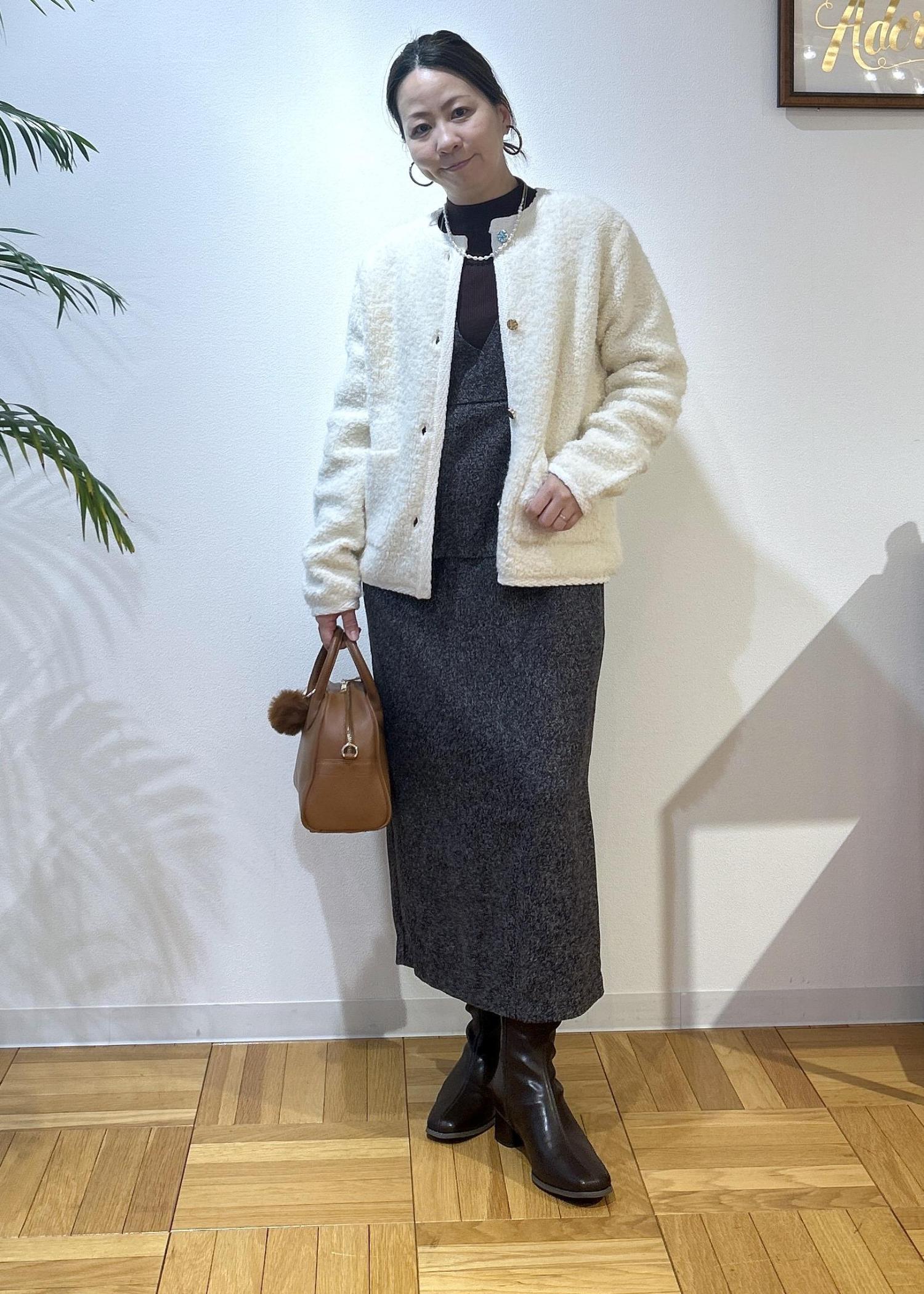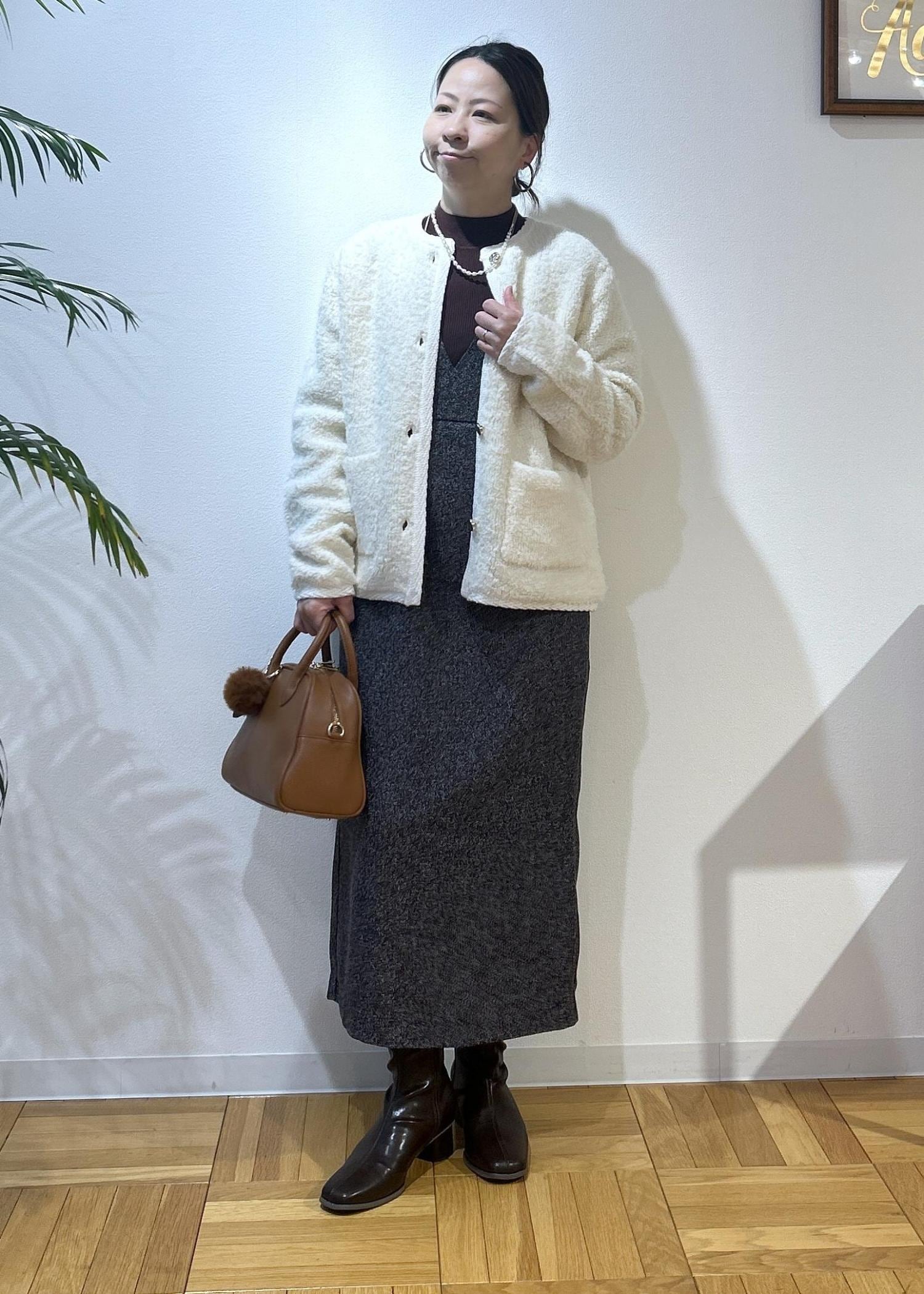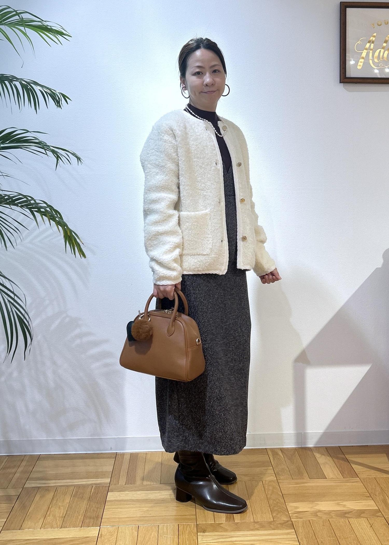 ROPÉ PICNICループ編みニットカーディガンキナリ / F¥6,996レビュー着丈は骨盤かかるくらい、袖丈は手の甲が隠れるくらいです。ニットの厚みのあるものなので冬のアウターとしても長く着用できるアイテムです。シンプルなデザインに金ボタンが華やかにしてくれます。軽くて暖かくもこもこした感じが可愛く見せてくれます。