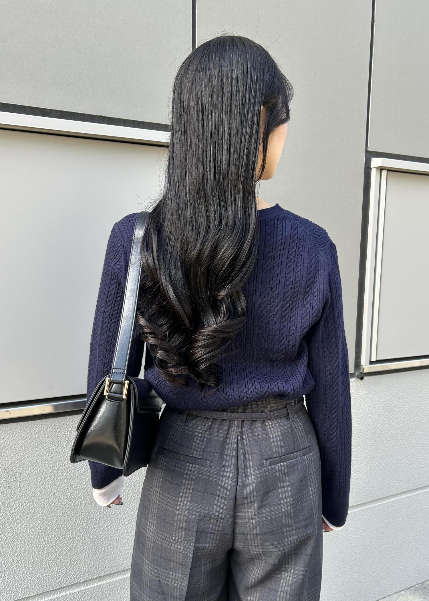 重たくなりがちな秋冬のネイビートーンを軽やかに見せています。