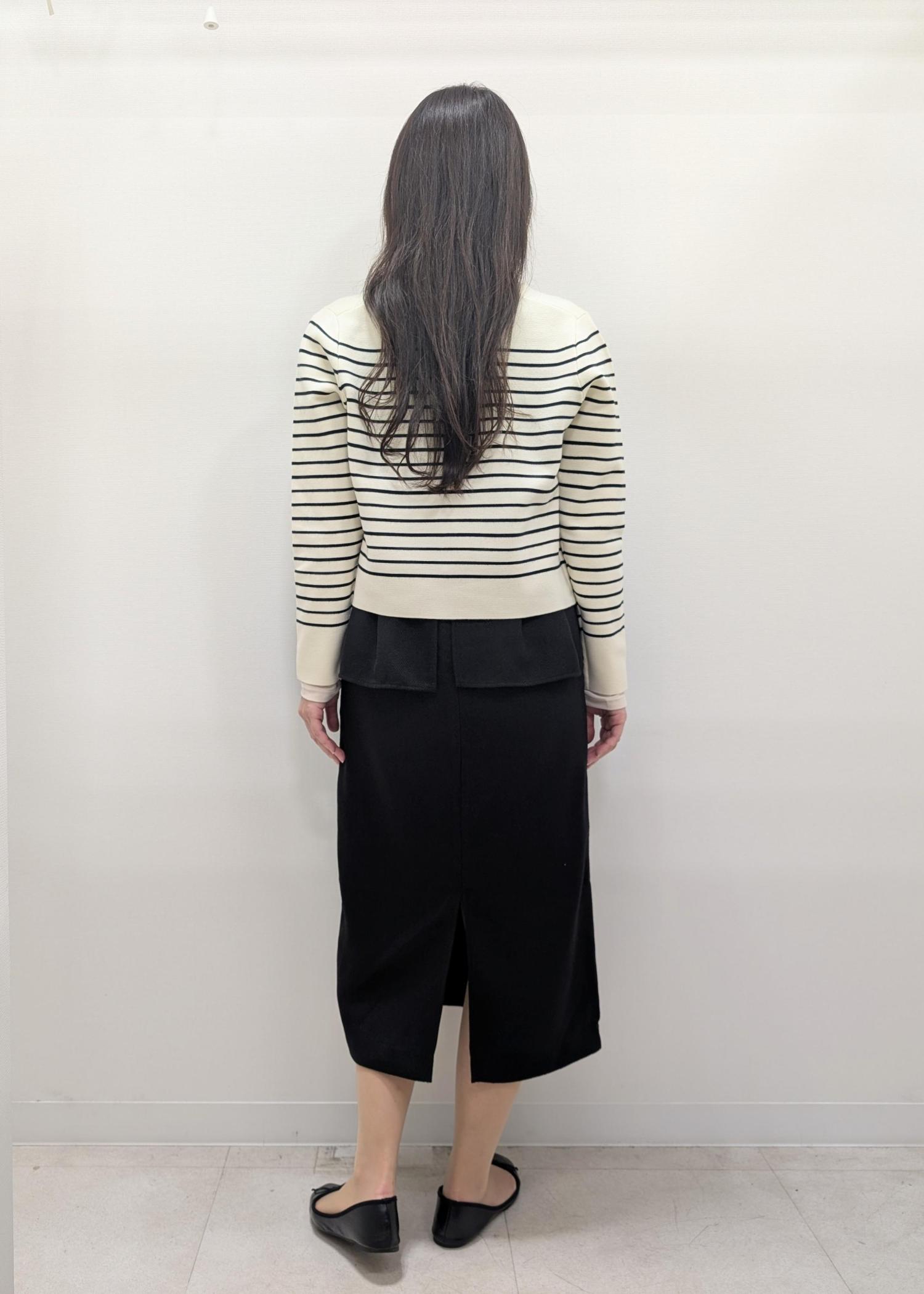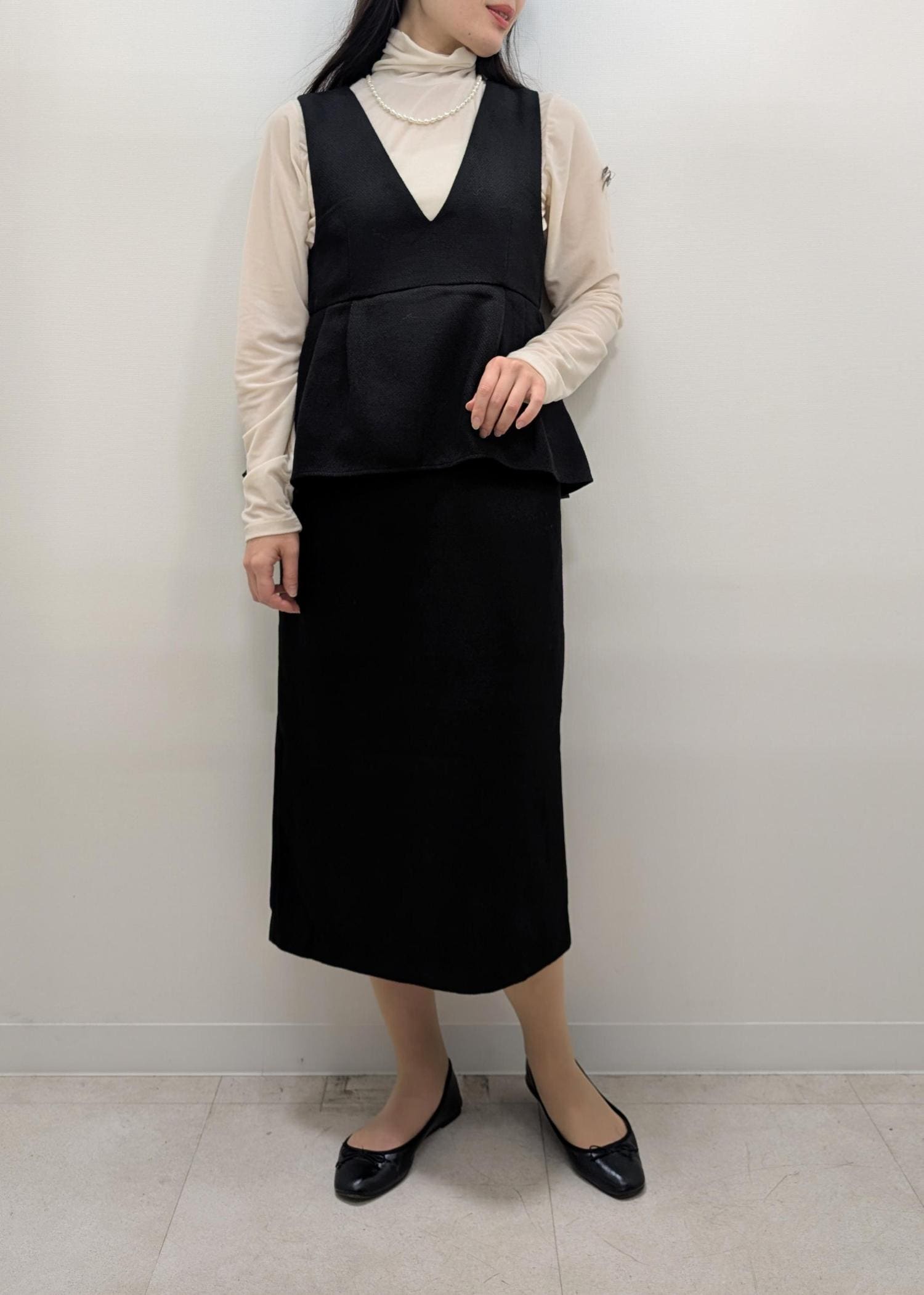 ペプラムがふんわりしている分、インナーはコンパクトなトップスがおすすめです。