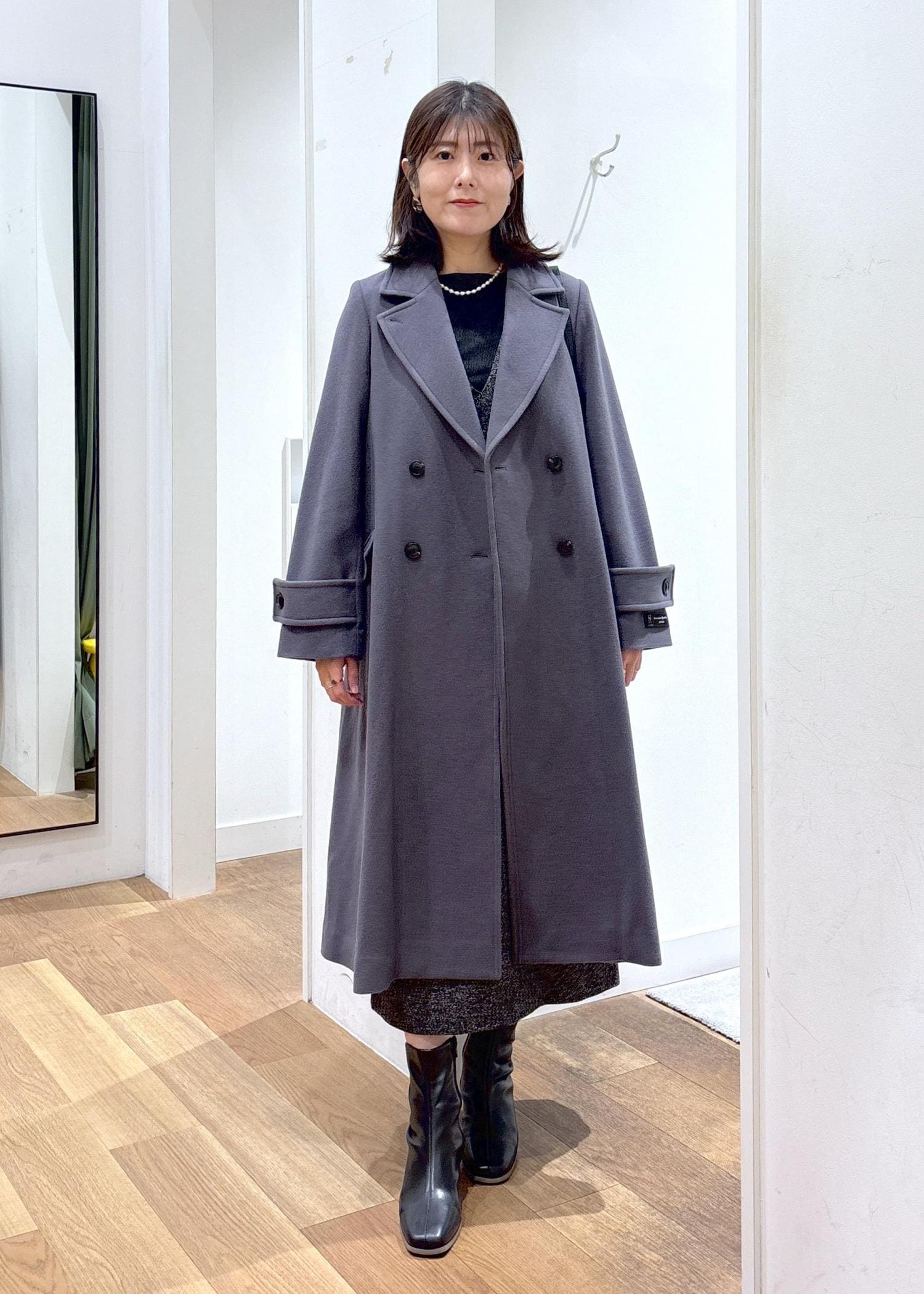 ROPÉ PICNICJAPAN FABRIC ダブルチェスターコート/一部WEB限定カラーグレー / F¥19,800レビュー身幅はゆとりがありますが、肩がジャストサイズなのでとてもすっきりとして見えるデザインです。