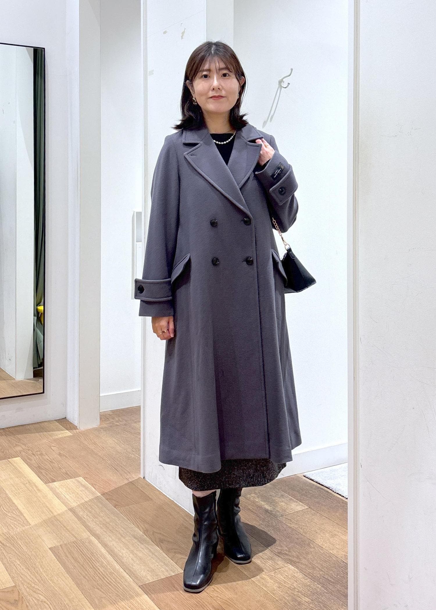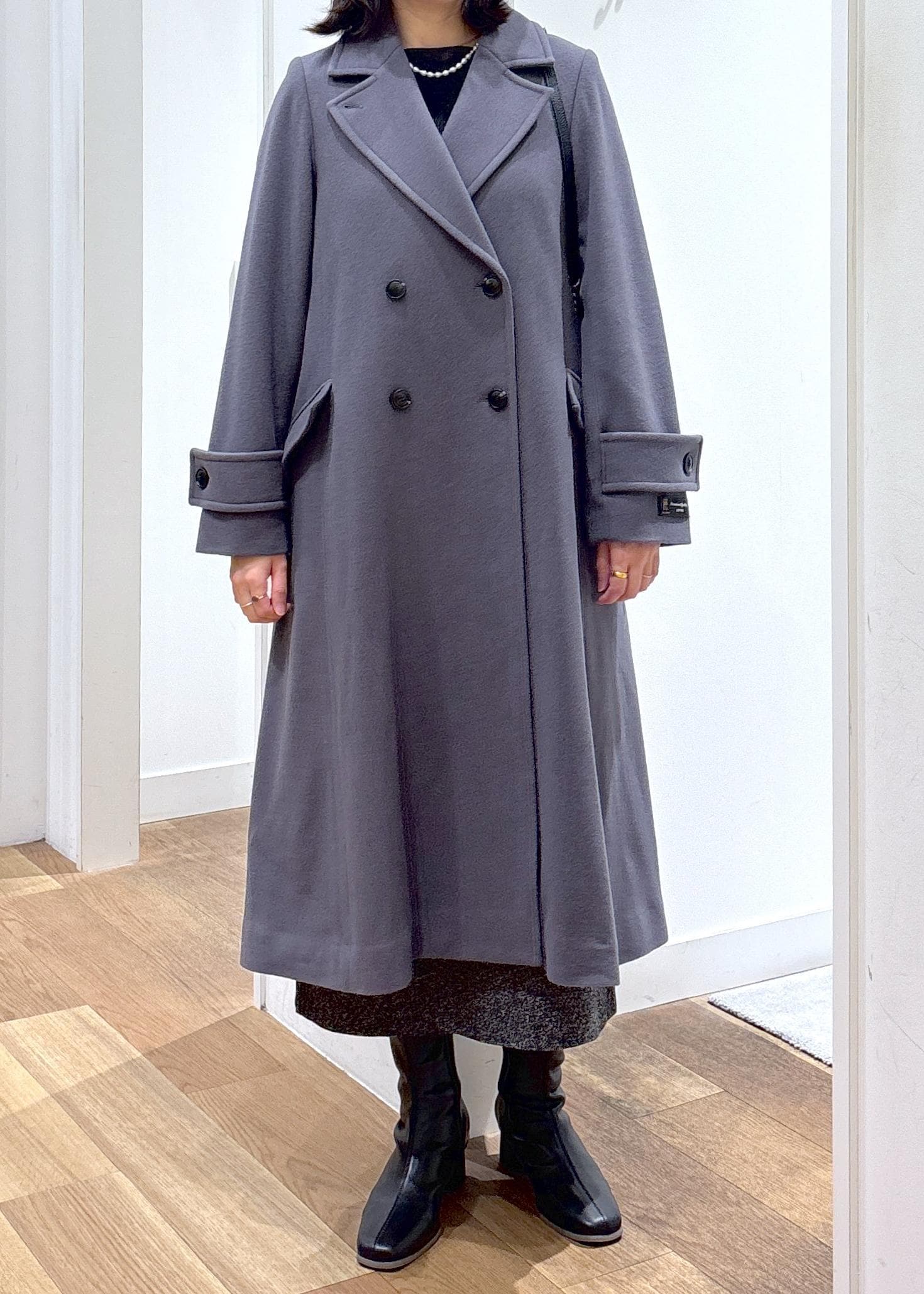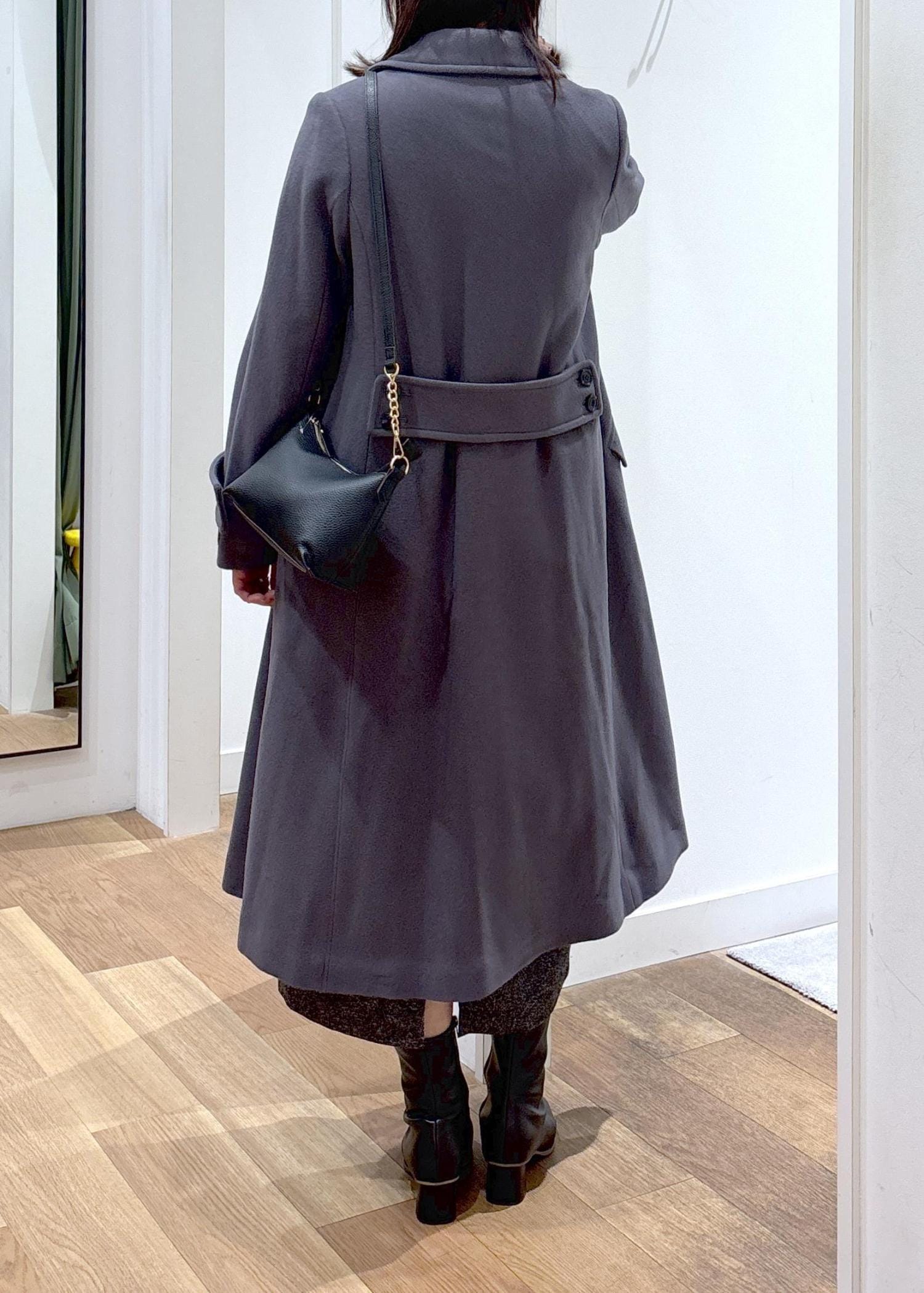 動くと揺れるフレアシルエットがとてもきれいで、女性らしい印象のコートです。 -