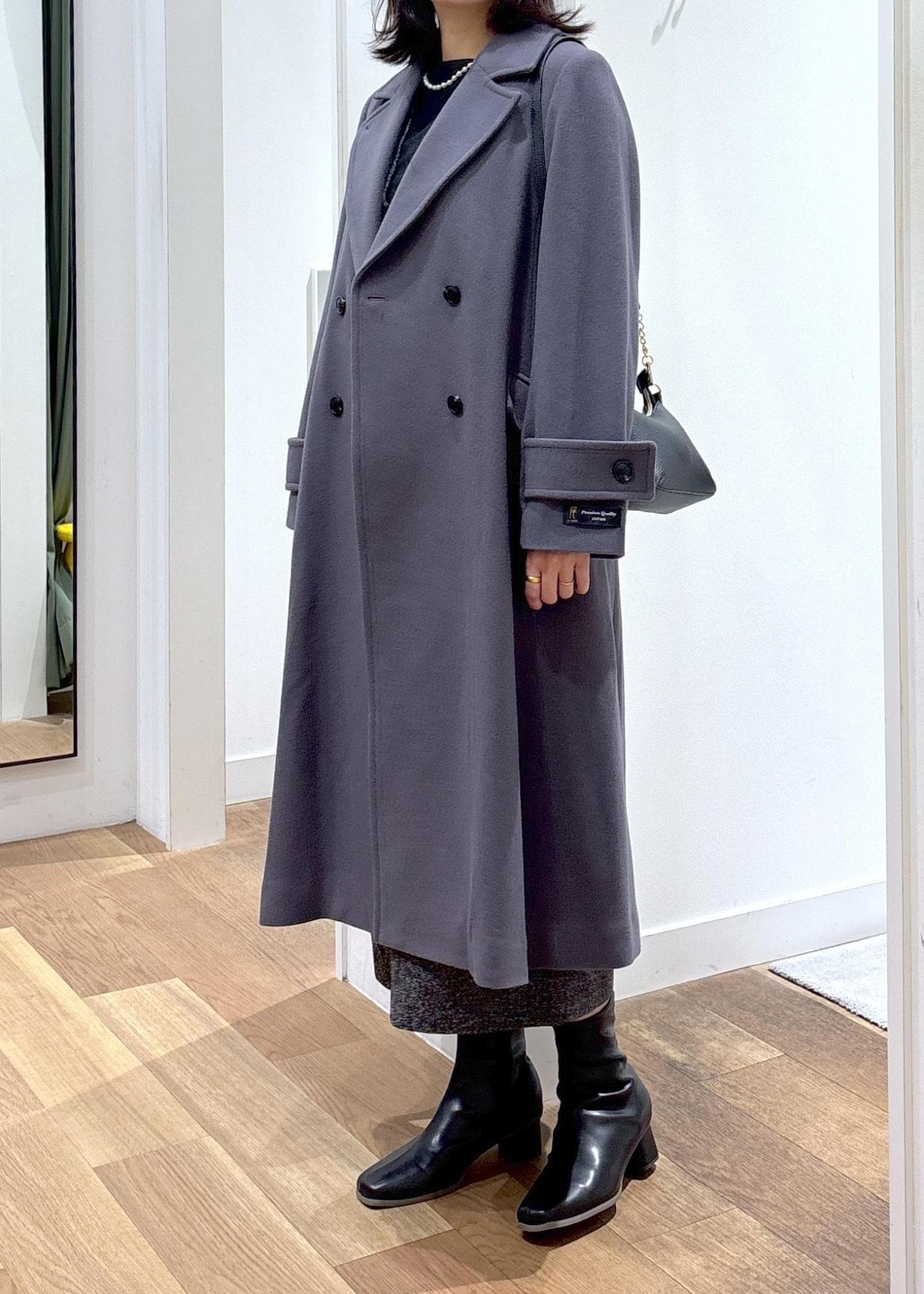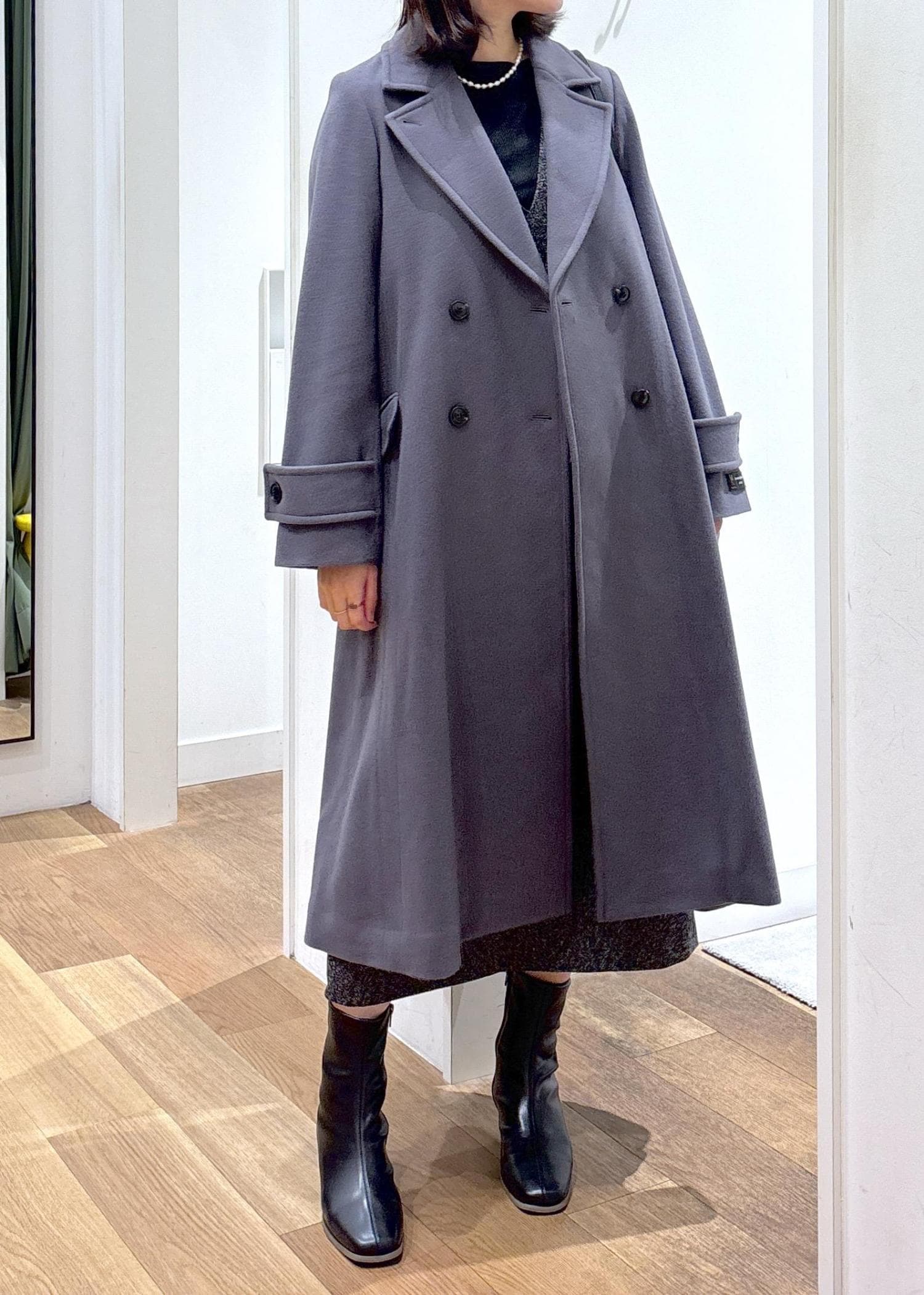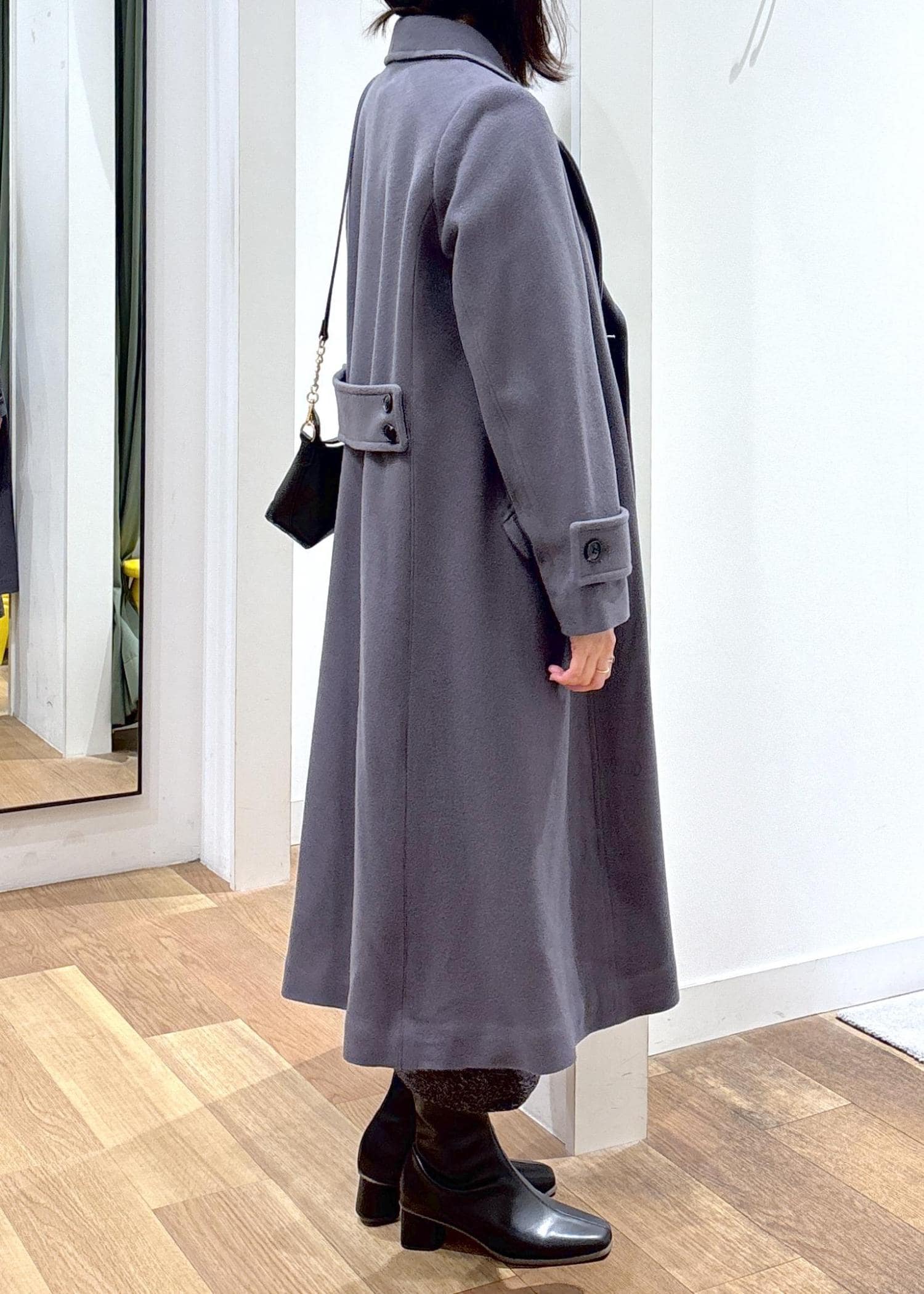 動くと揺れるフレアシルエットがとてもきれいで、女性らしい印象のコートです。 -