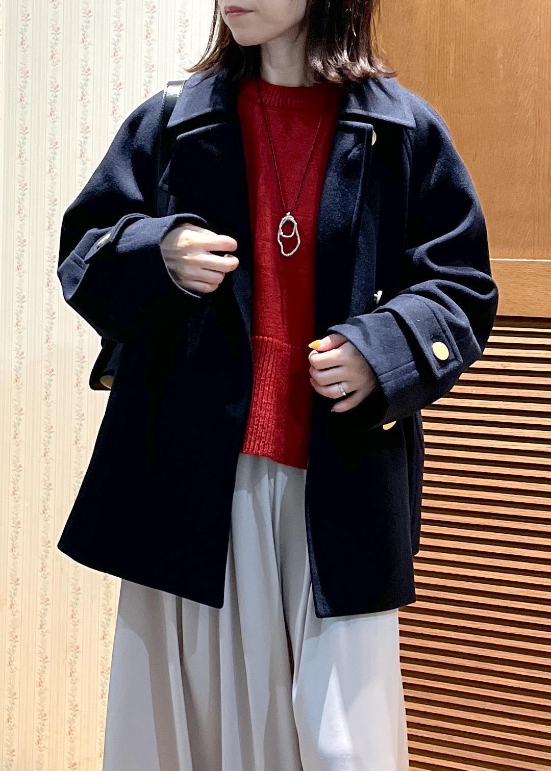 ROPÉ PICNICジャージーメルトンシリーズ 金ボタンミドル丈コート/リンクコーデネイビー / F¥6,593レビュー全体的にゆとりがあり、厚手のニットの上にも羽織りやすい余裕のあるサイズ感です。