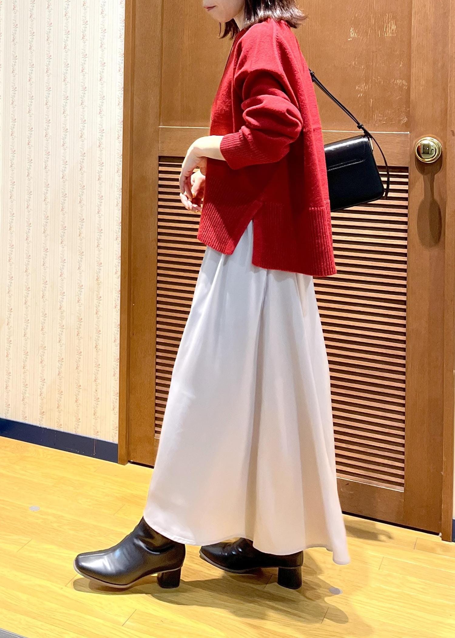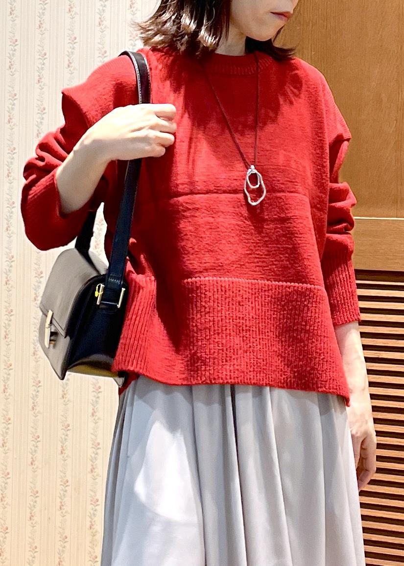 ROPÉ PICNIC【新色追加】着丈が選べるクルーネックサイドスリットニットプルオーバー/イージーケアレッド / M¥2,969レビューフロントの方が少し短めになっていて、ヒップにかかる丈感です。