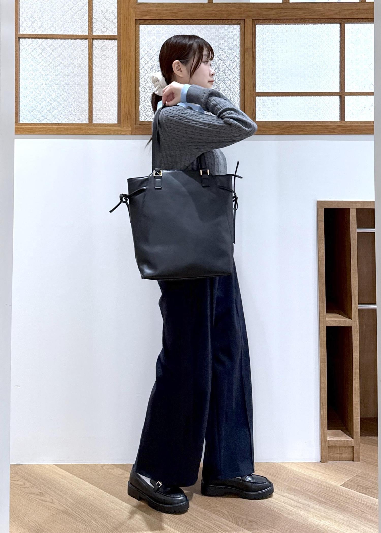小物は黒で合わせて統一感を出しているのがポイントです。