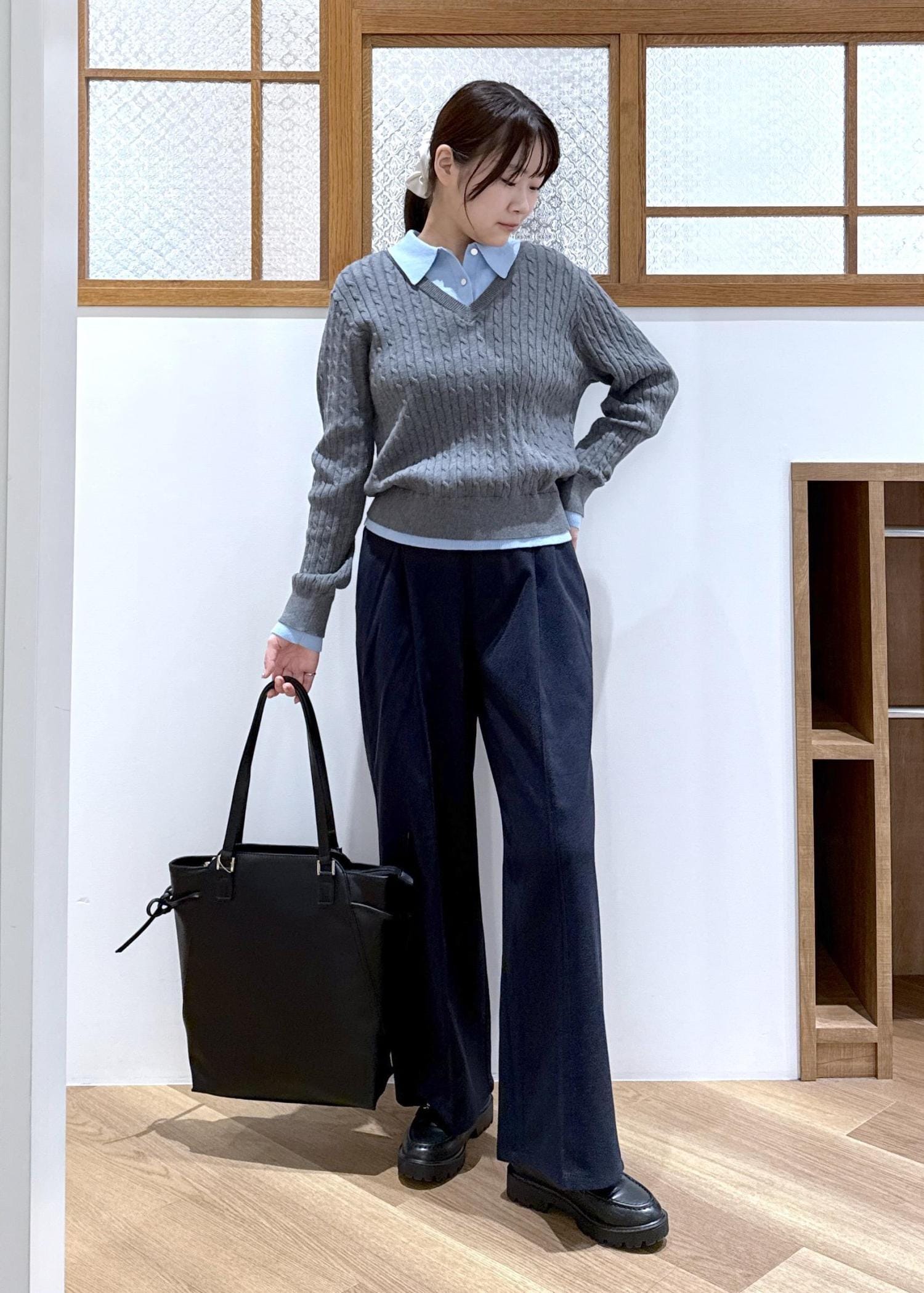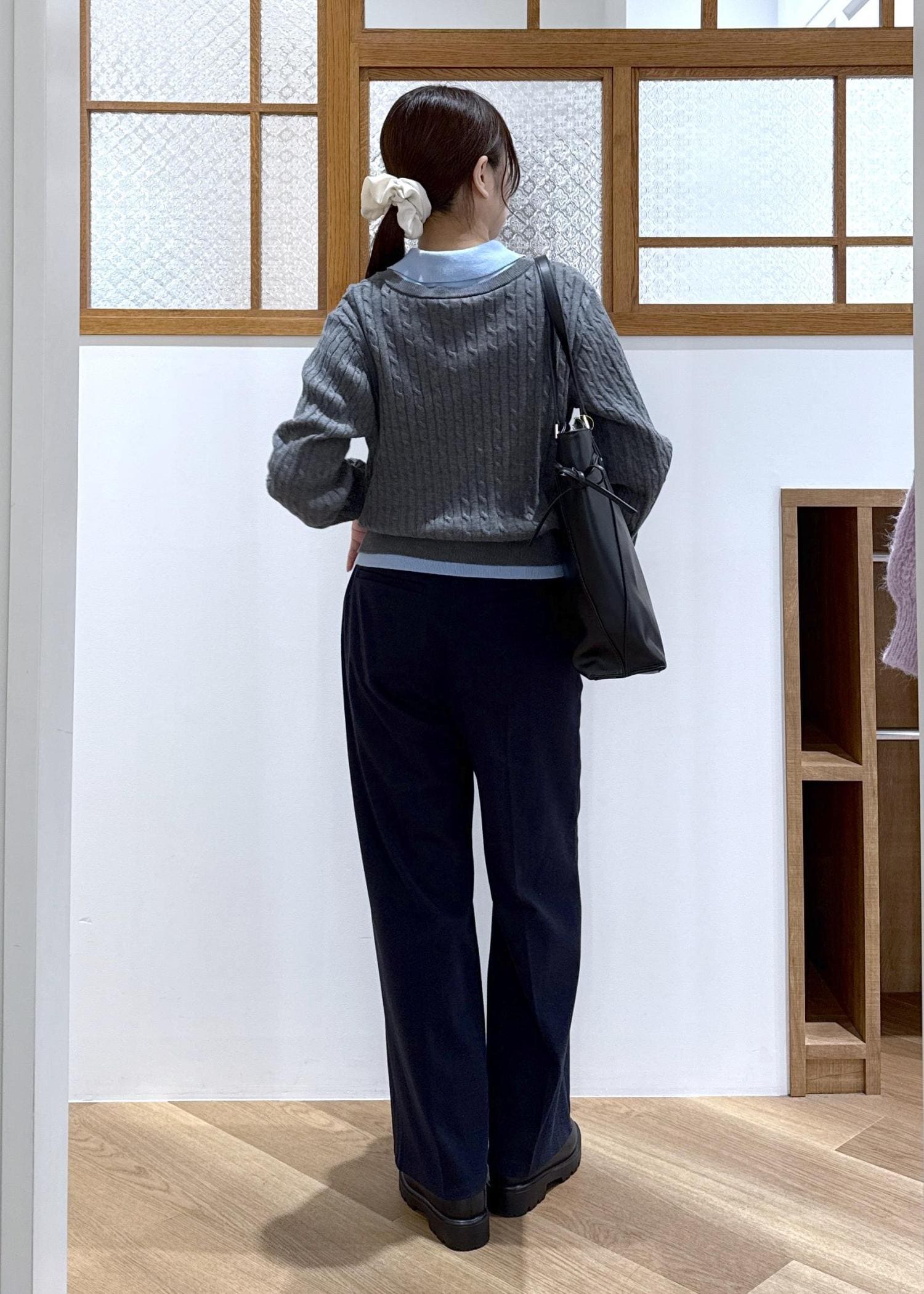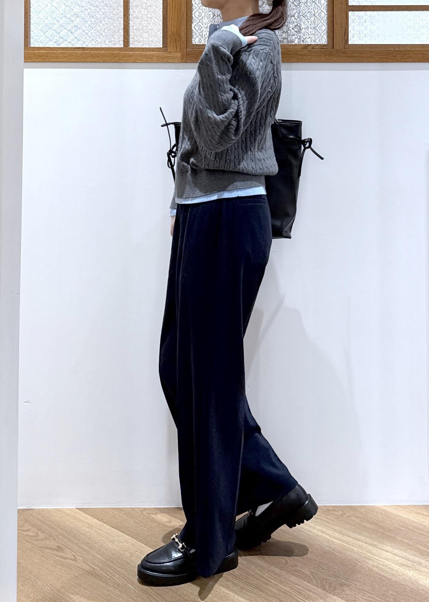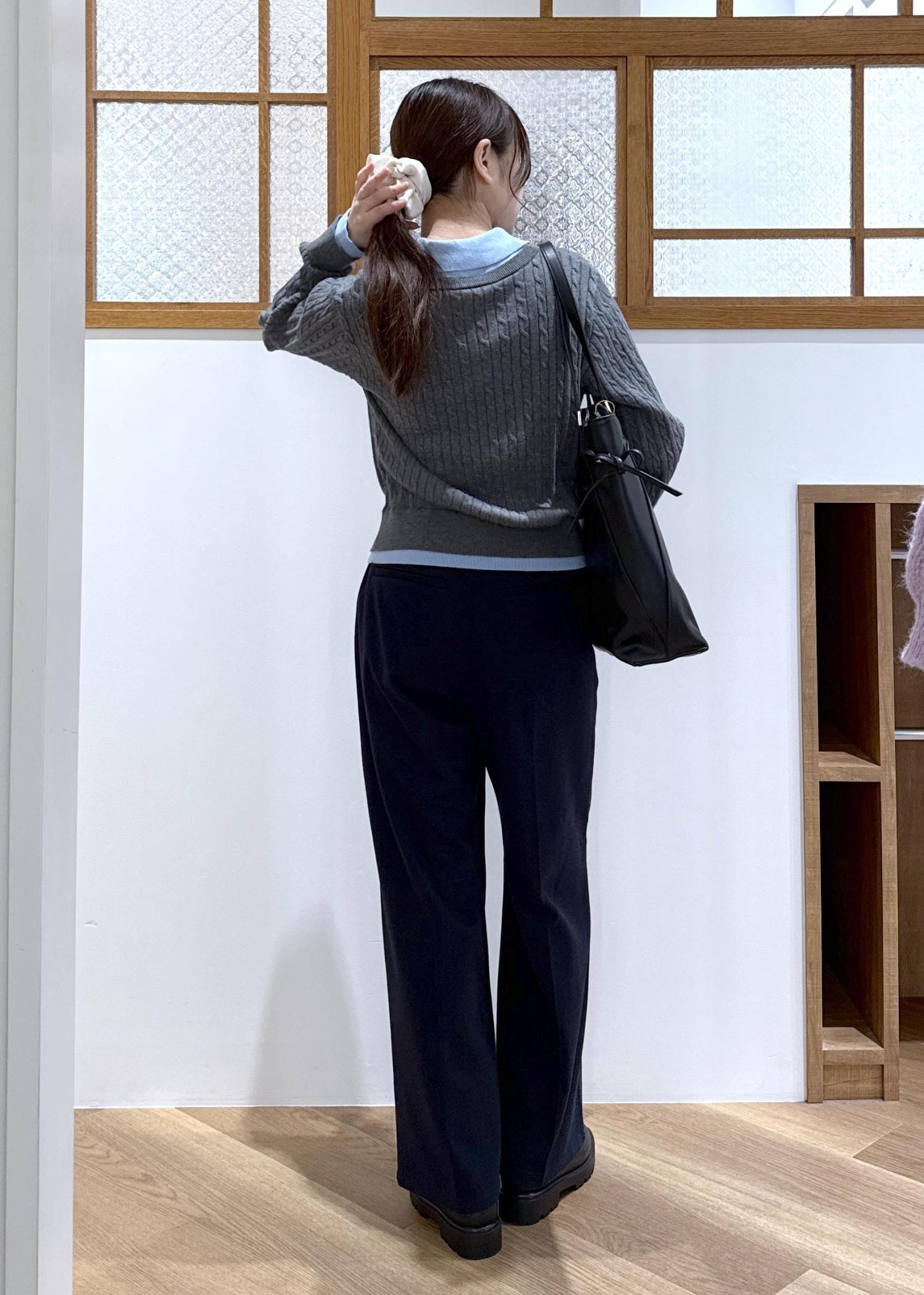 裾が広がりすぎないワイドパンツなのできれいめなコーディネートにも合わせやすいです。 -