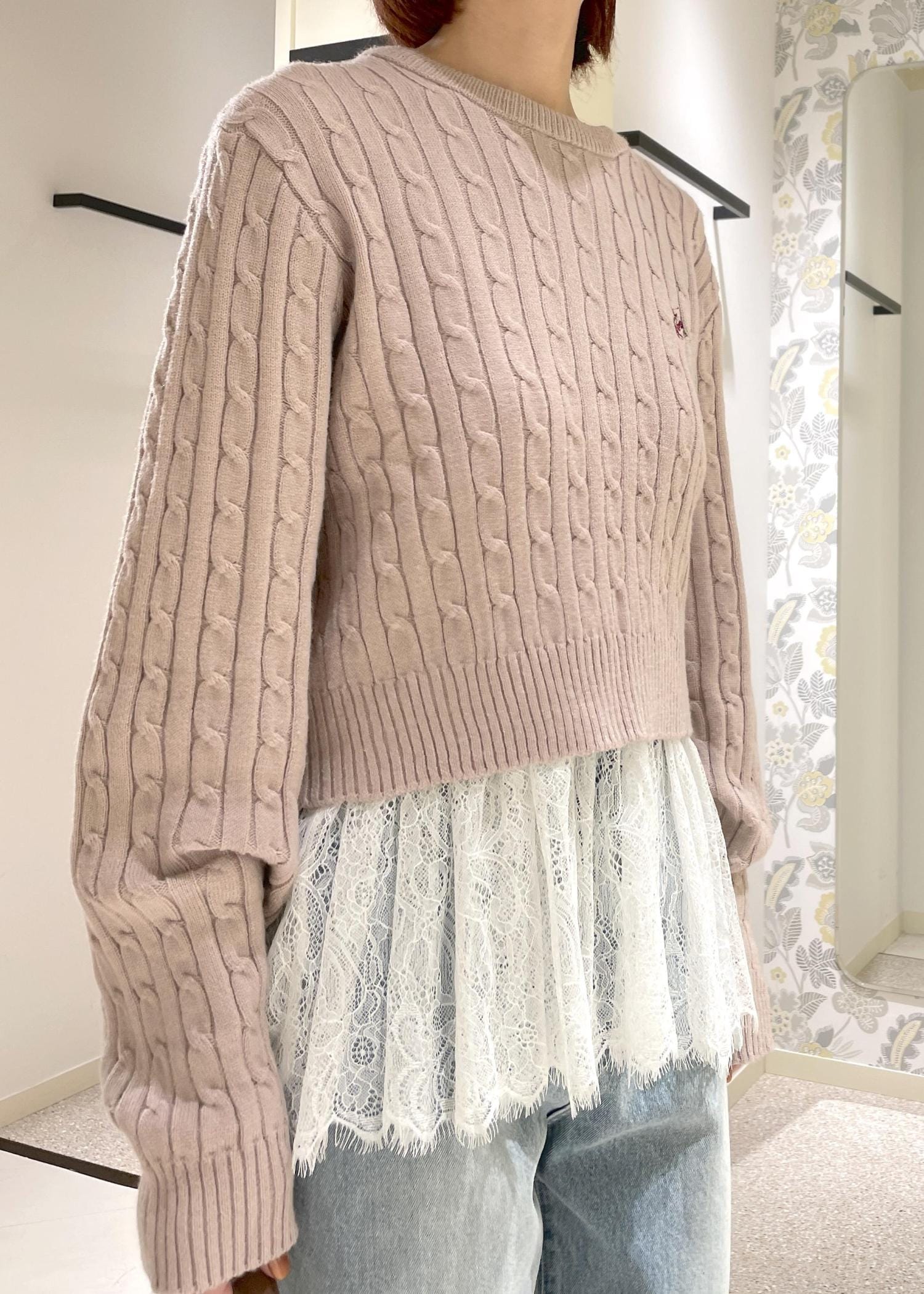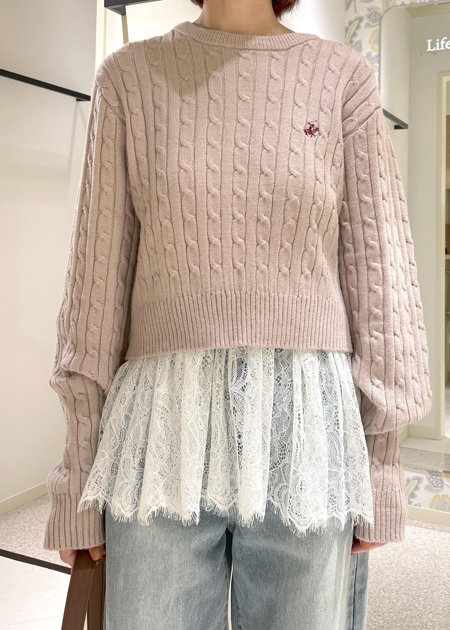 【BEVERLYHILLS POLO CLUB・WEB限定】ケーブル編みクロップドニットプルオーバー