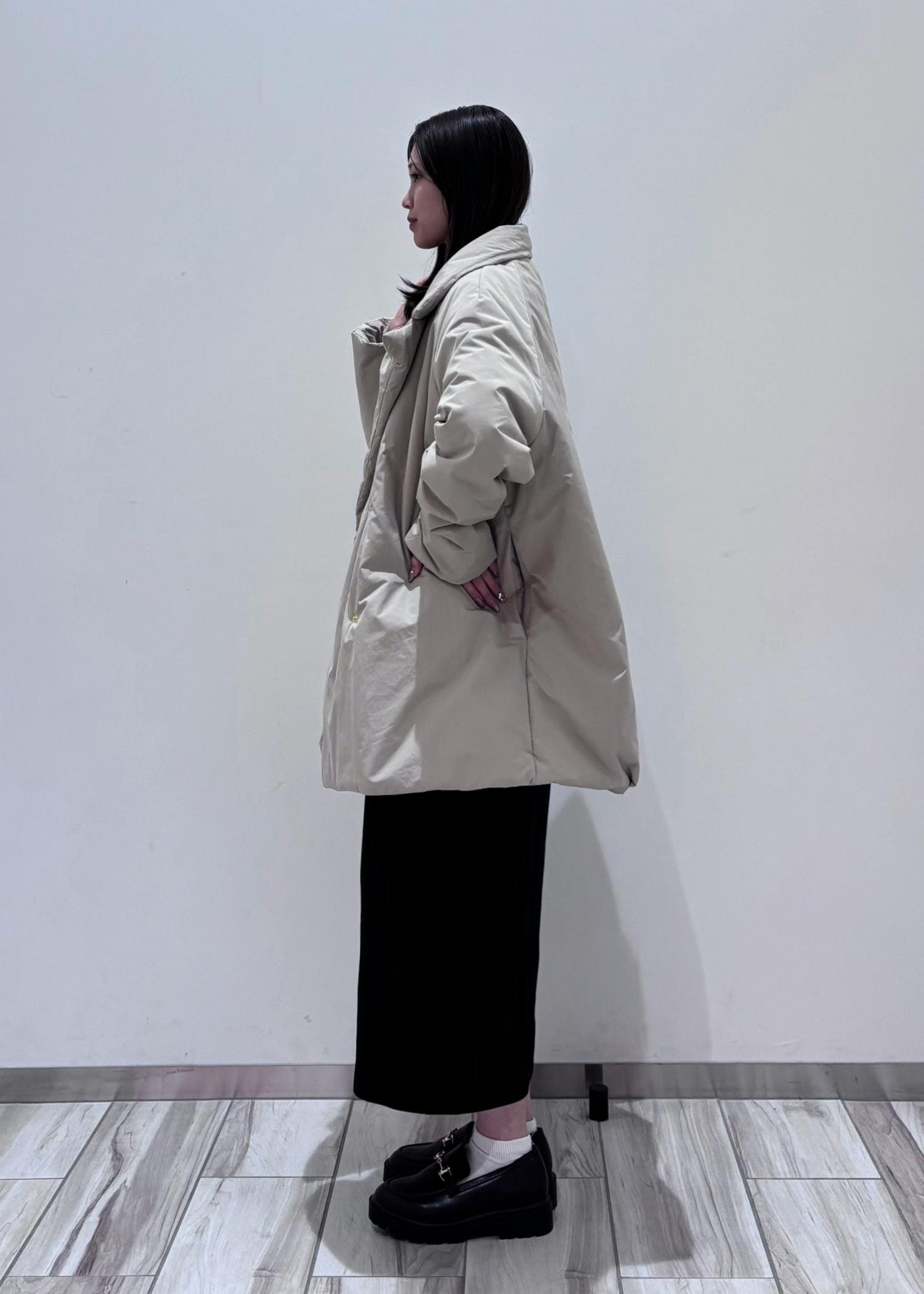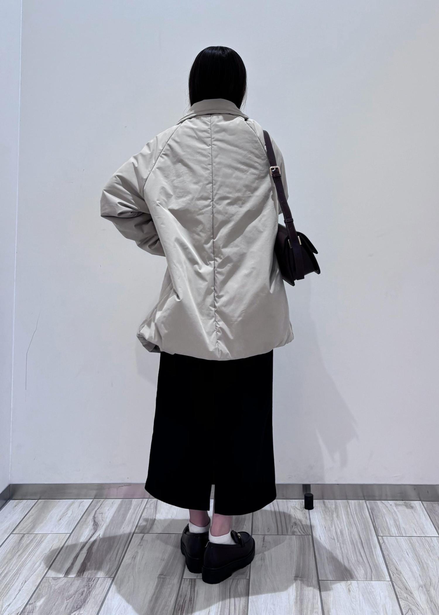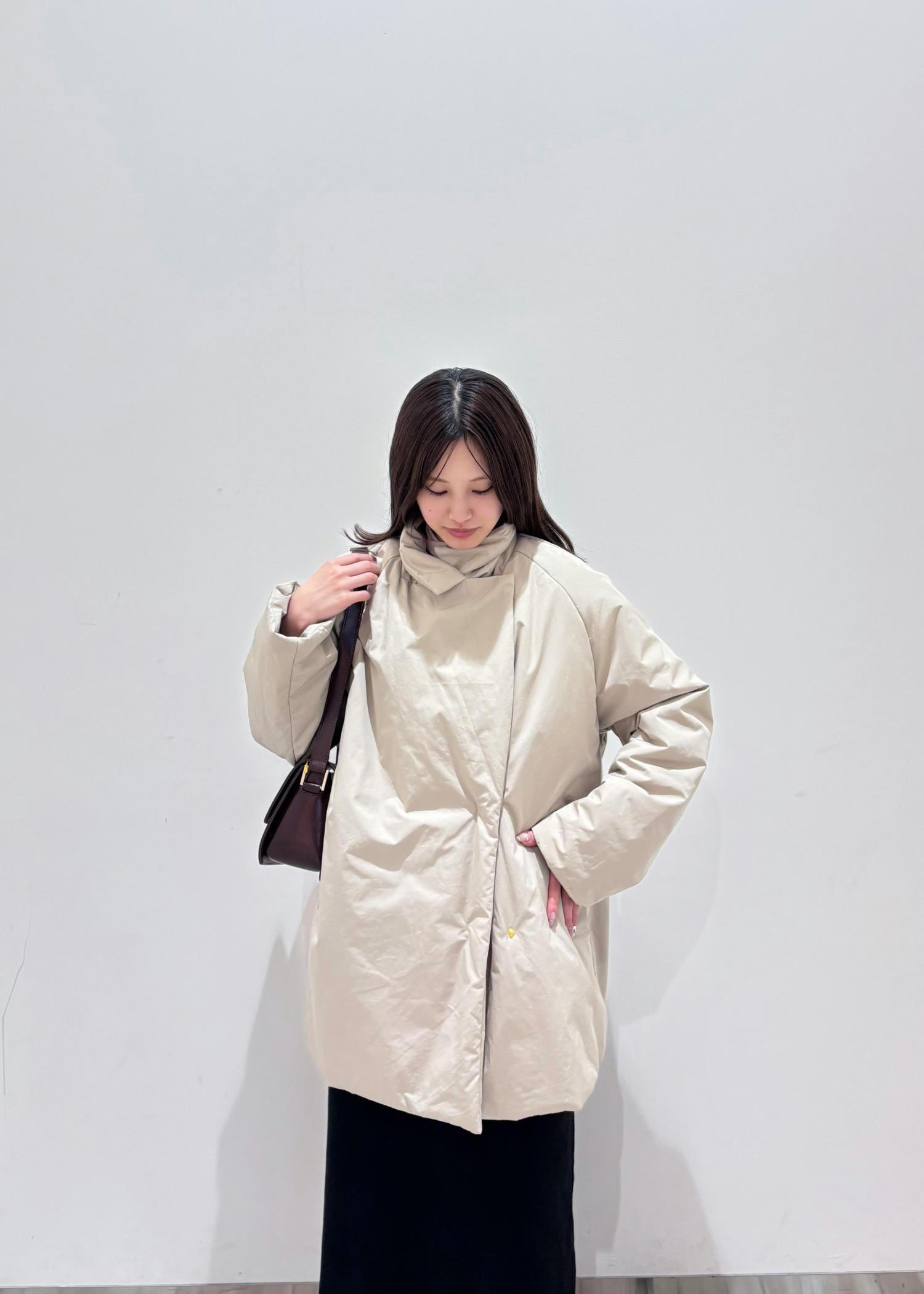 とっても軽く、厚みのあるふわふわした生地感で包み込んでくれます。ボタンを閉めると襟を立てることができるので、首周りも暖かく風除けも◎ -
