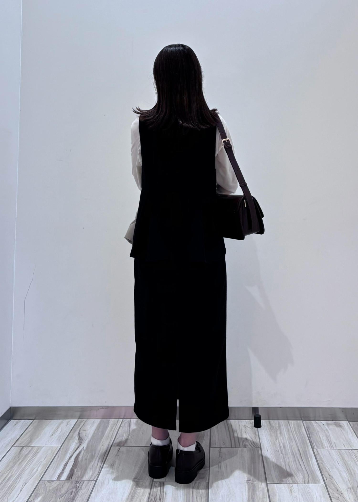 王道の白黒合わせにアウターonで、上着を脱いでも抜かりなくおしゃれ見えするコーデにしてみました♪