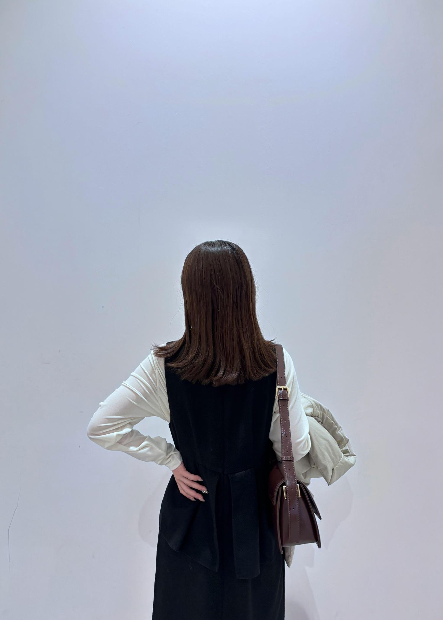 シンプルになりすぎない様小物はワイン系の色を差し色にしてみました。