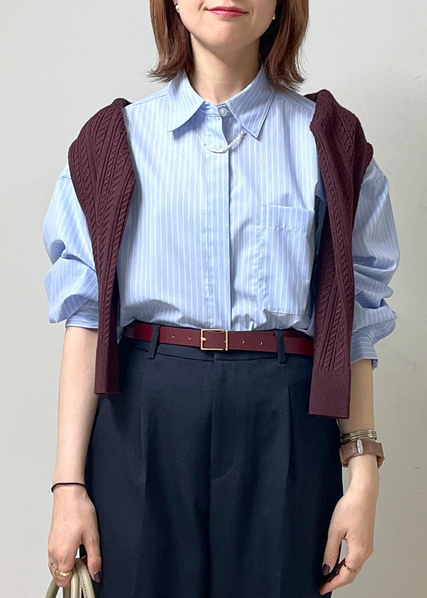 カーディガンとベルトの色合わせをしたのがポイントです!