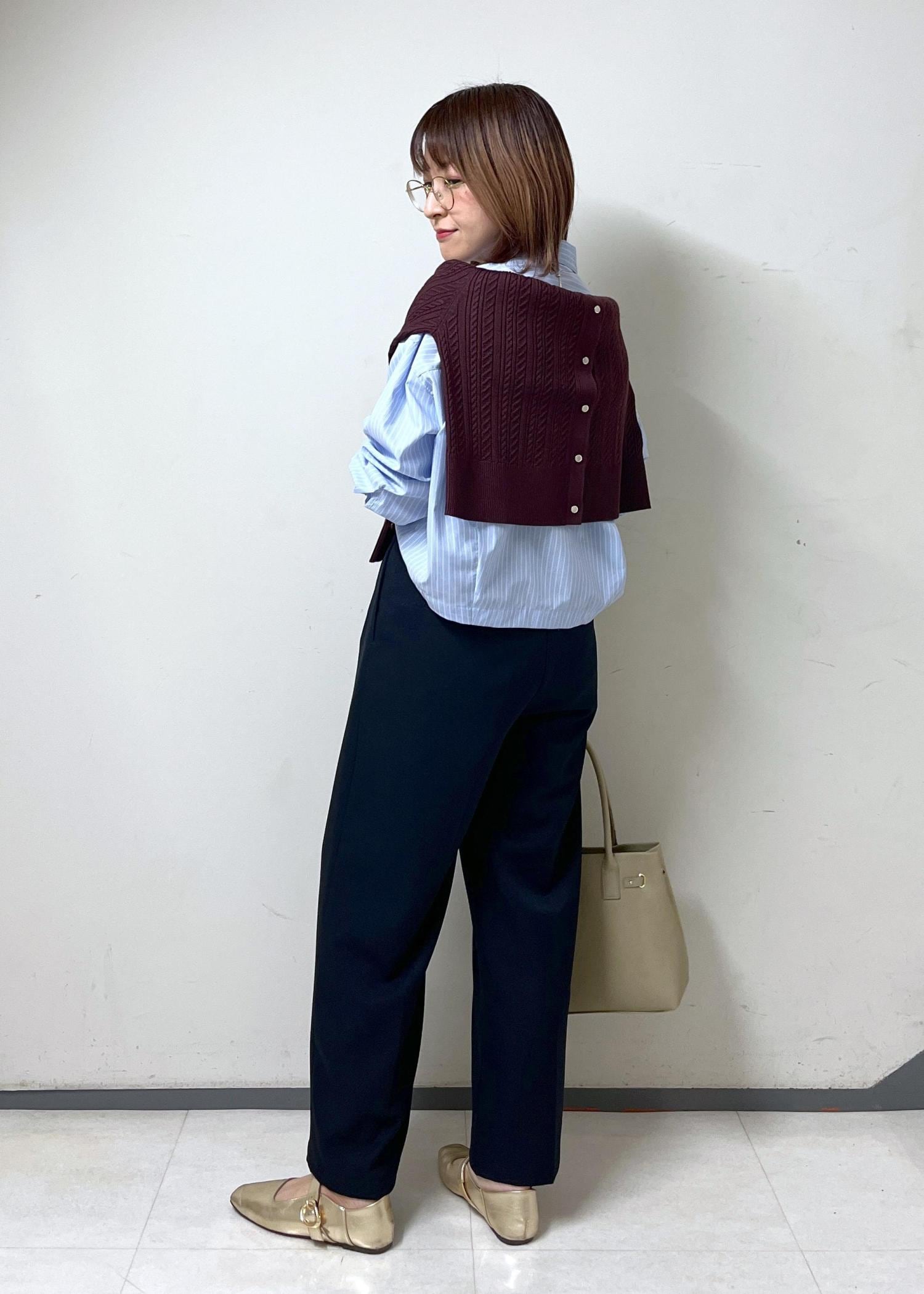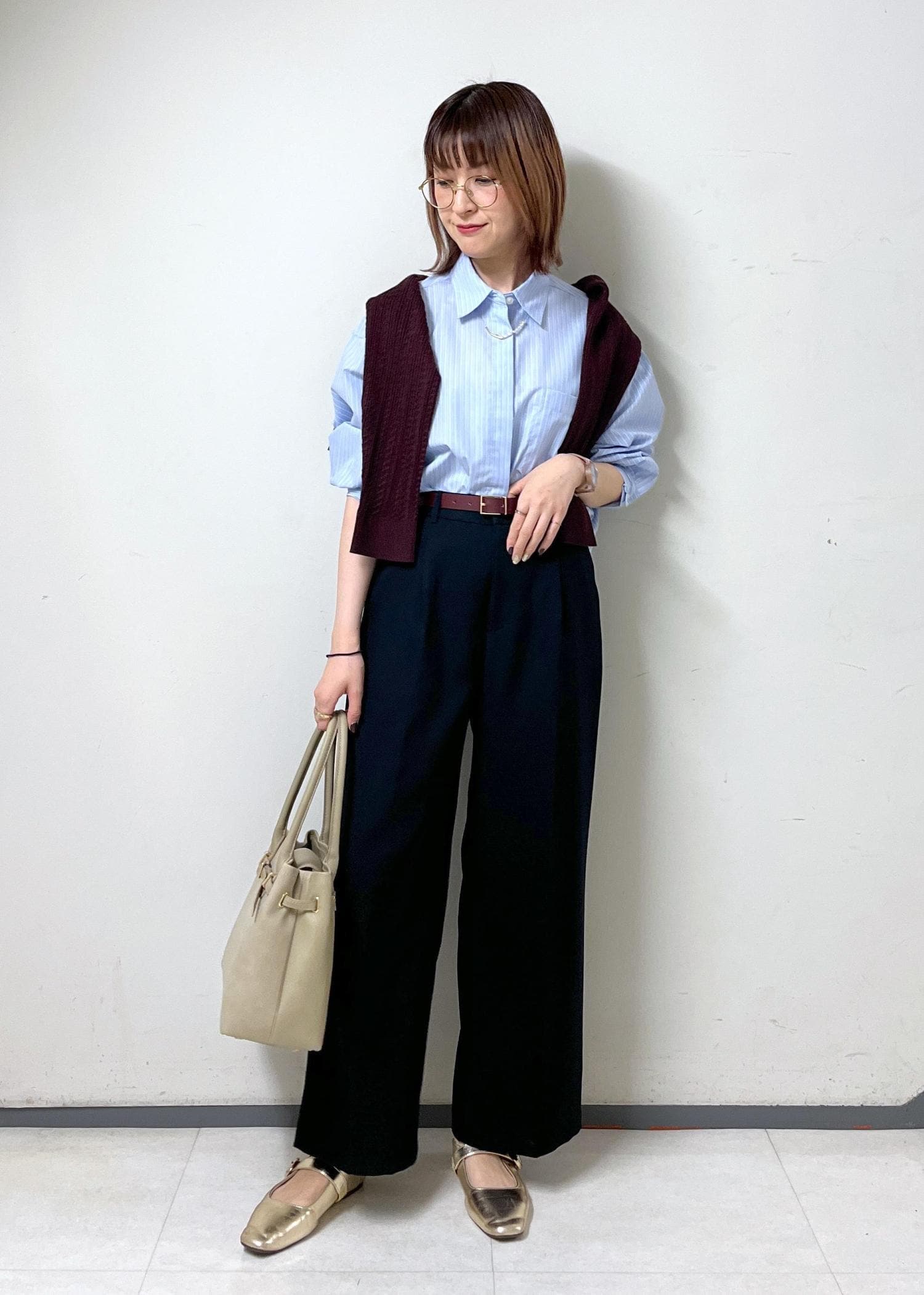 爽やかなブルーと、秋らしい色を合わせたお仕事コーデ。
