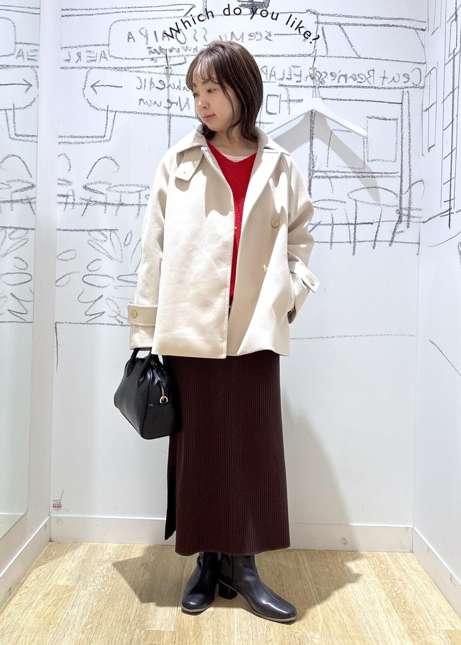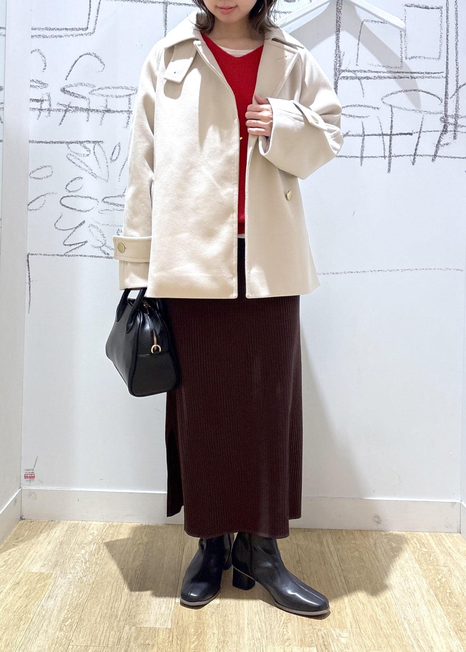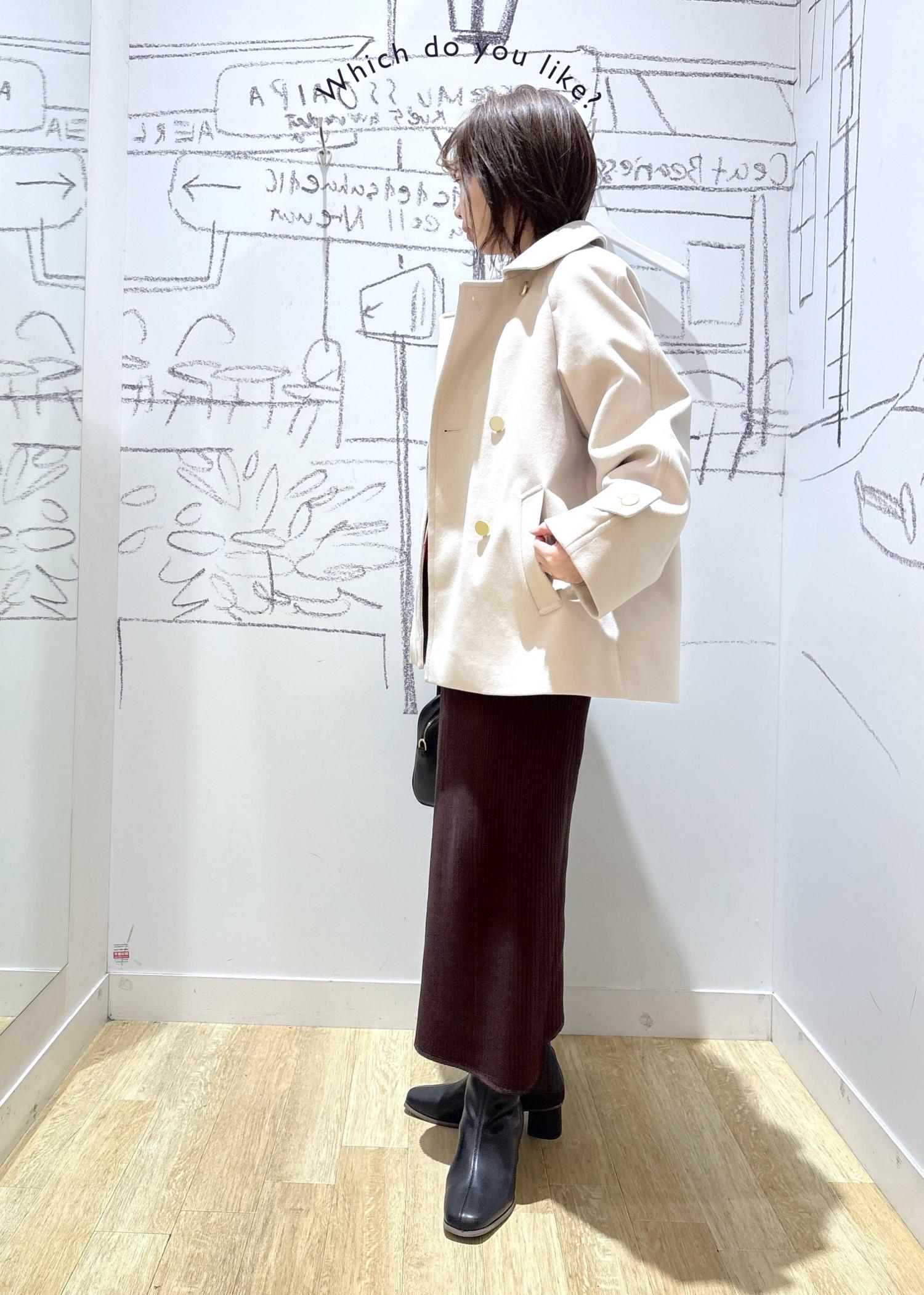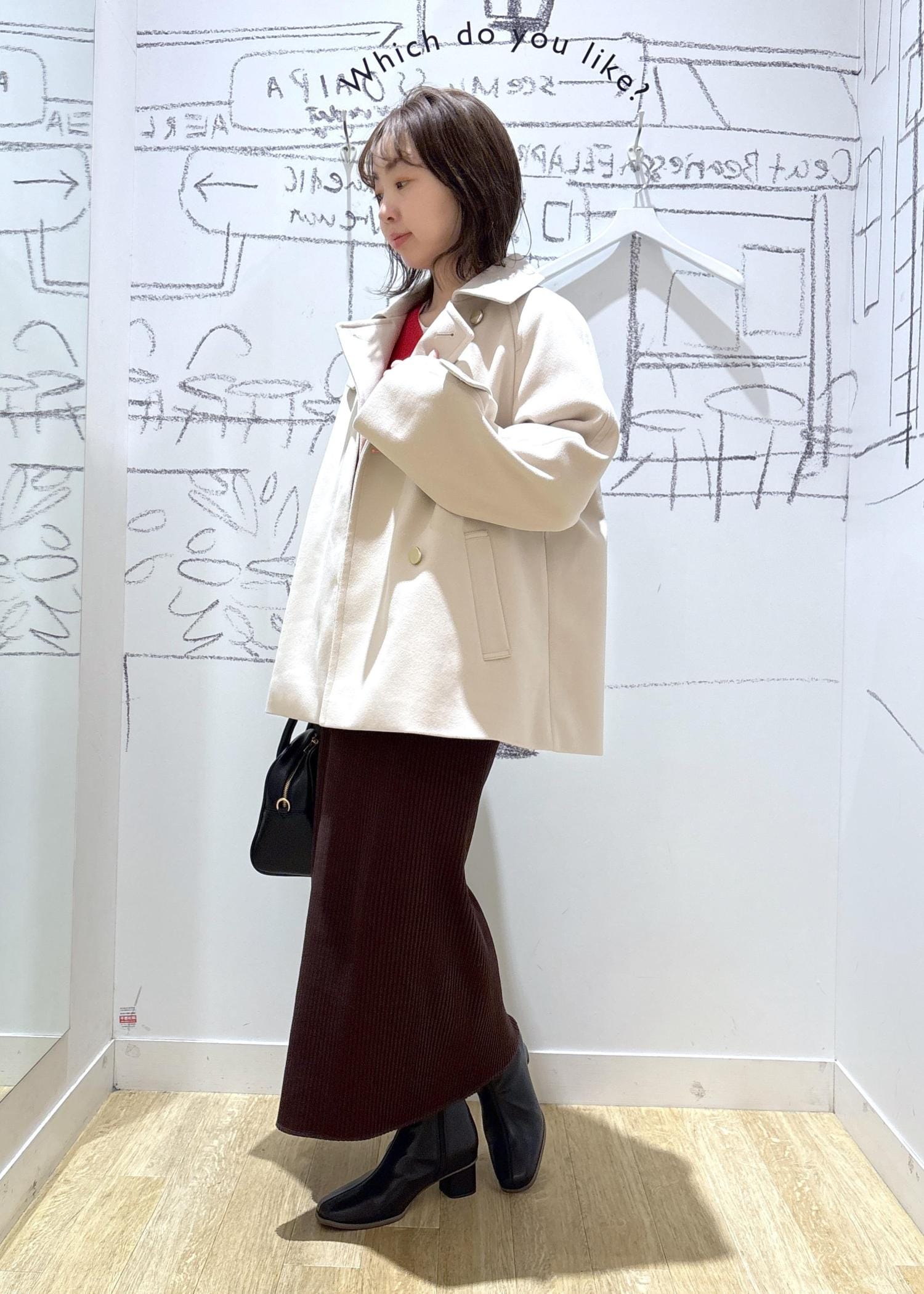 ROPÉ PICNICジャージーメルトンシリーズ 金ボタンミドル丈コート/リンクコーデベージュ / F¥10,989レビューゆったりとしたシルエットで中に厚手のニットもしっかり重ね着できます。