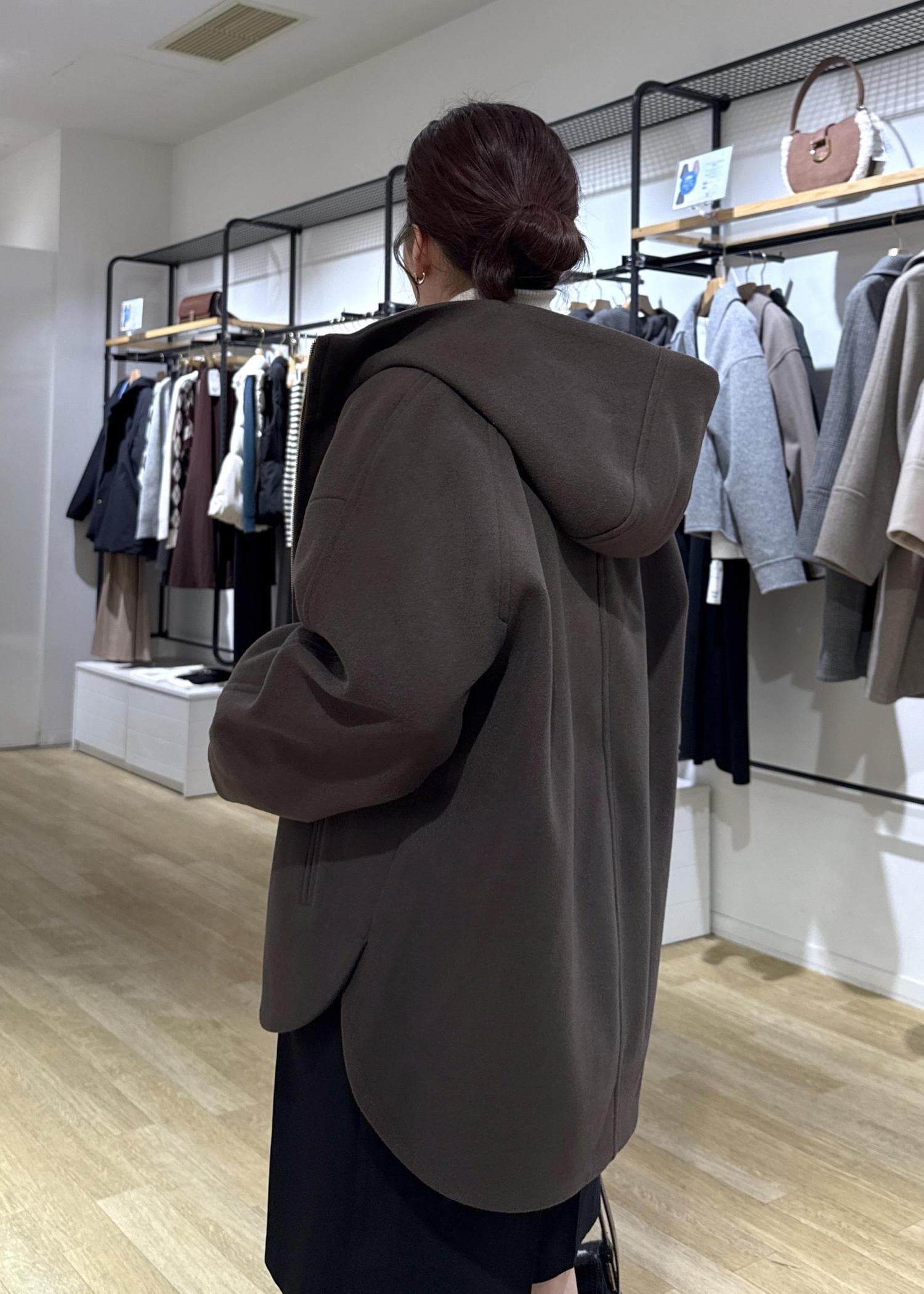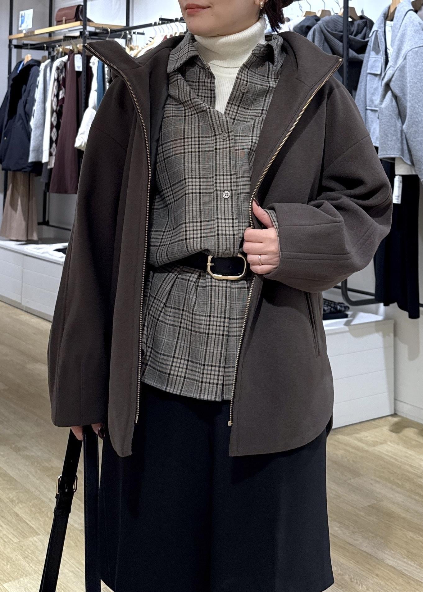 ROPÉ PICNICジャージーメルトンシリーズ ジップアップフーデッドコート/無地・チェック/リンクコーデブラウン / F¥10,989レビューサイズ感:ゆったりとしたサイズ感で厚手のニットを着てもラクに着用できます。着丈は後ろがヒップ隠れる長さで、袖丈は手の甲が隠れる長さです。