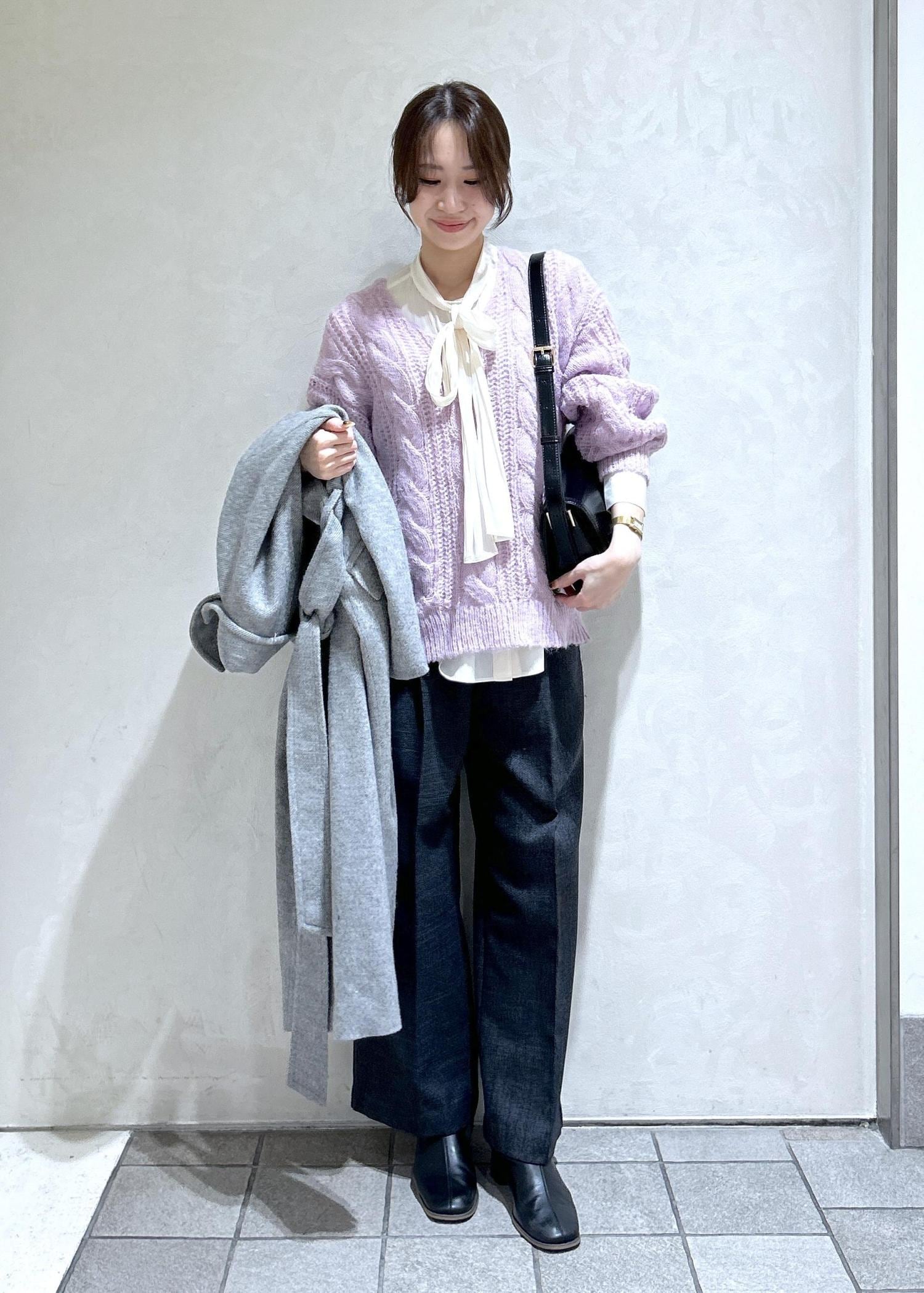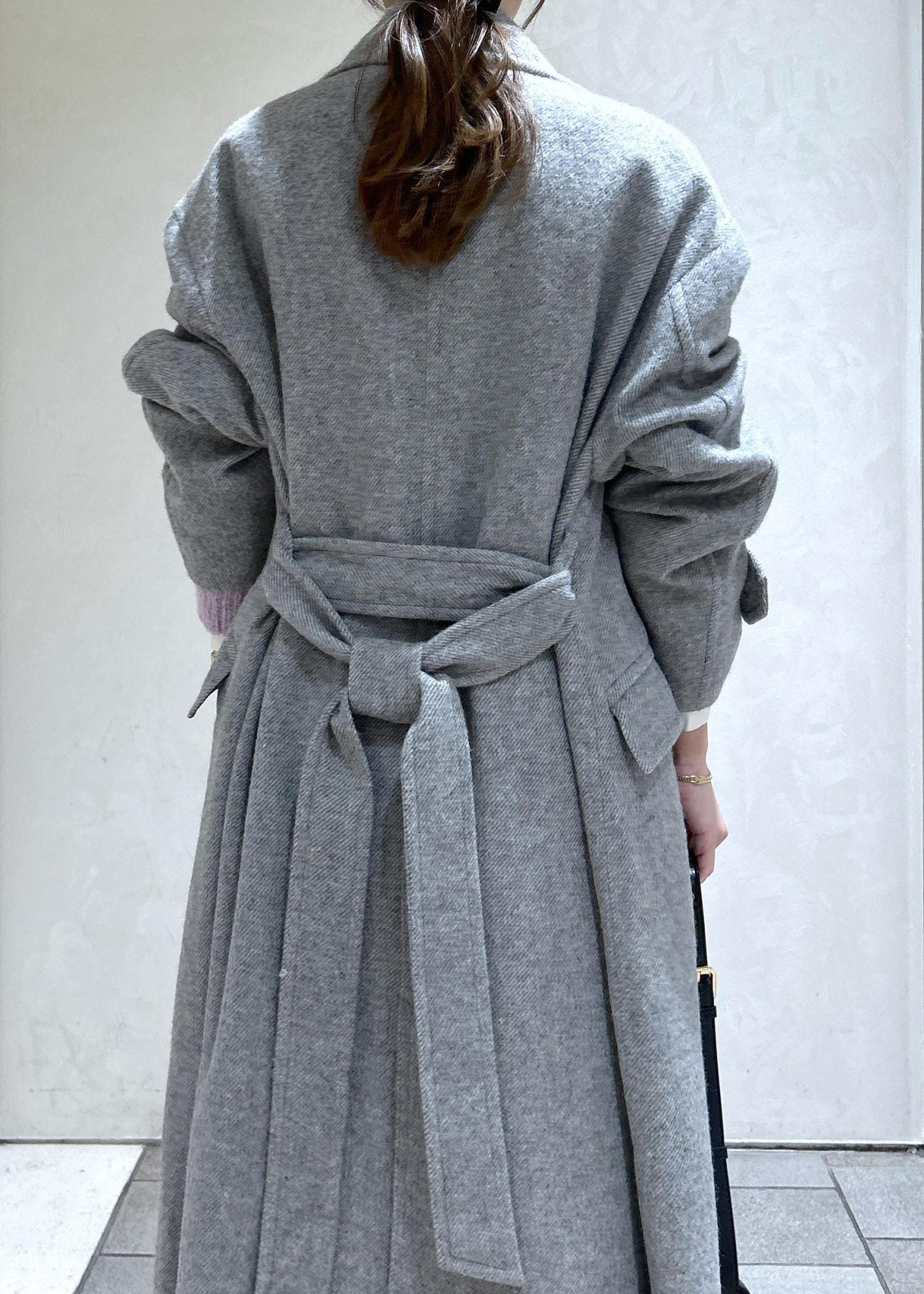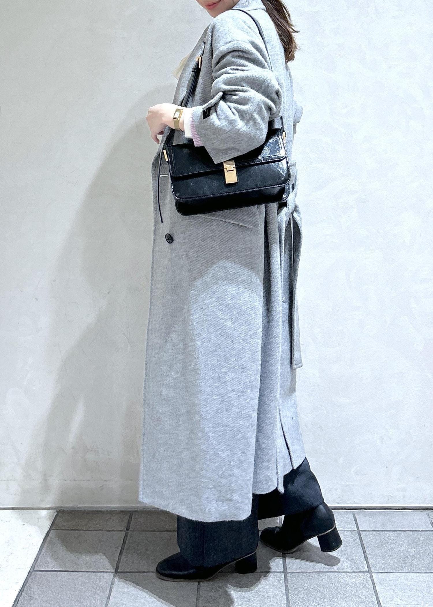 グレーのロングコートにインナーはピンク系でキレイめな冬スタイリングにしました。