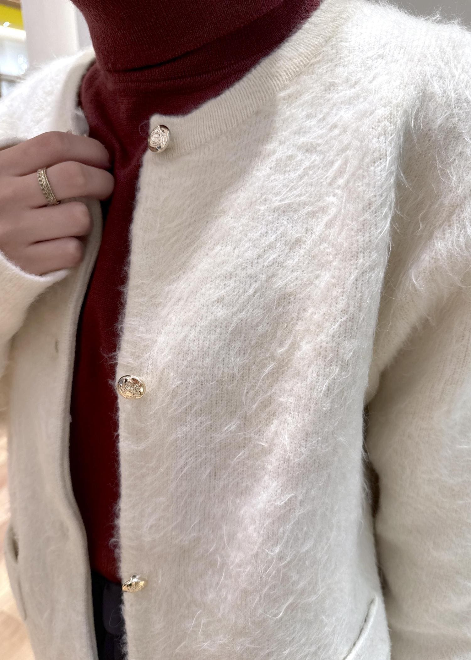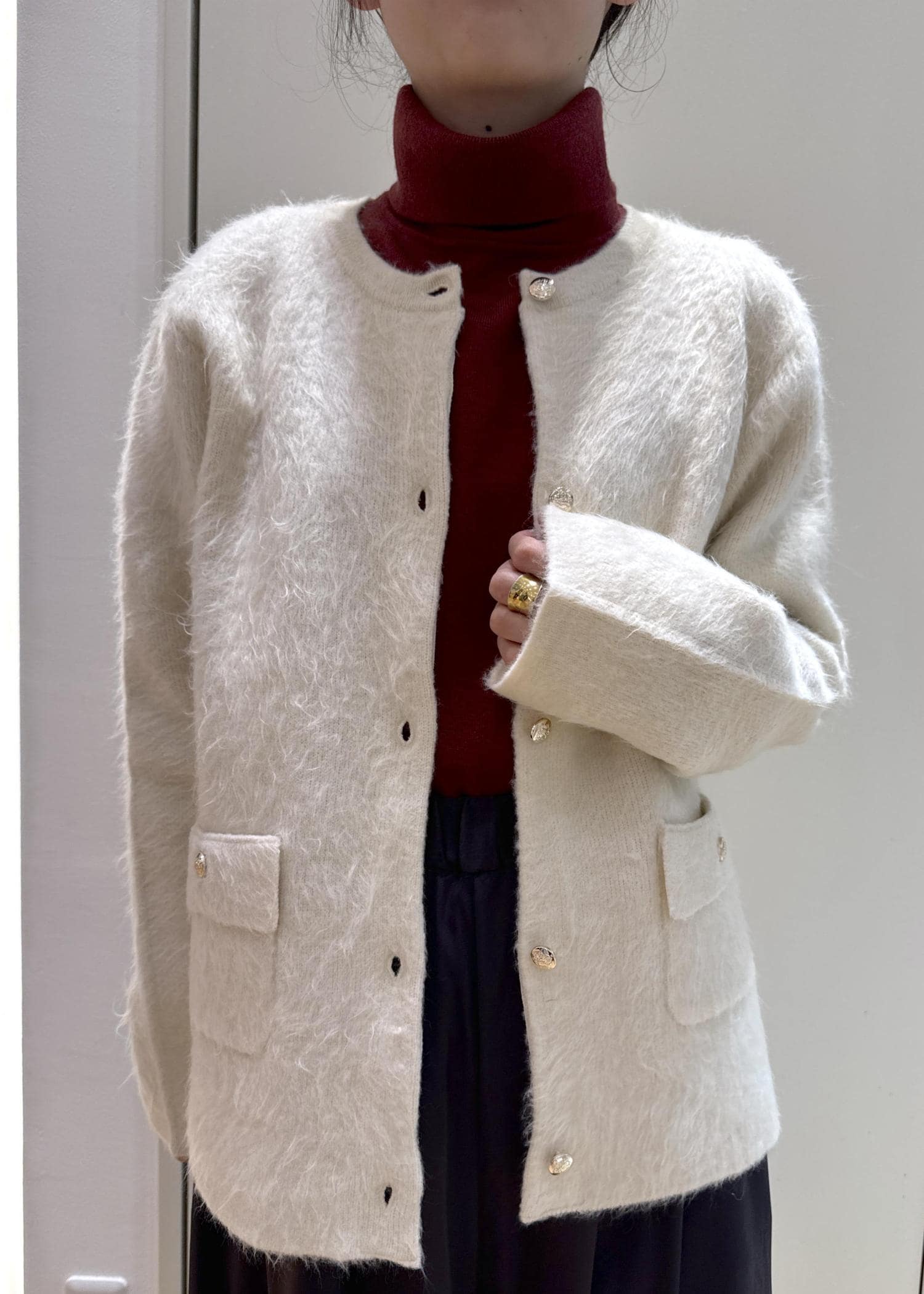 ROPÉ PICNICダブルフェイス襟取り外し起毛カーディガンキナリ / F¥5,995レビュー毛足の長さと金ボタンで高見えするニットカーディガンです。