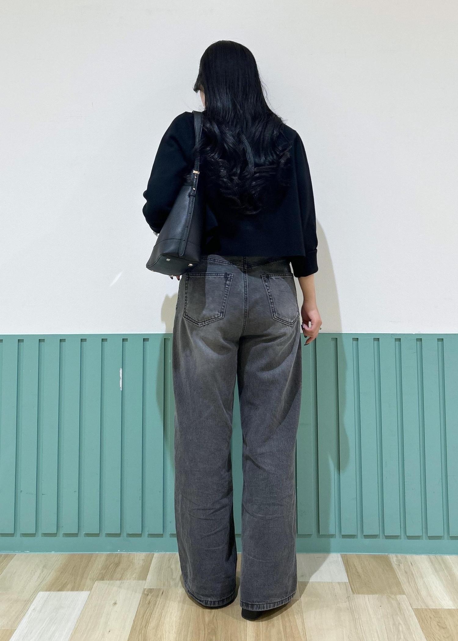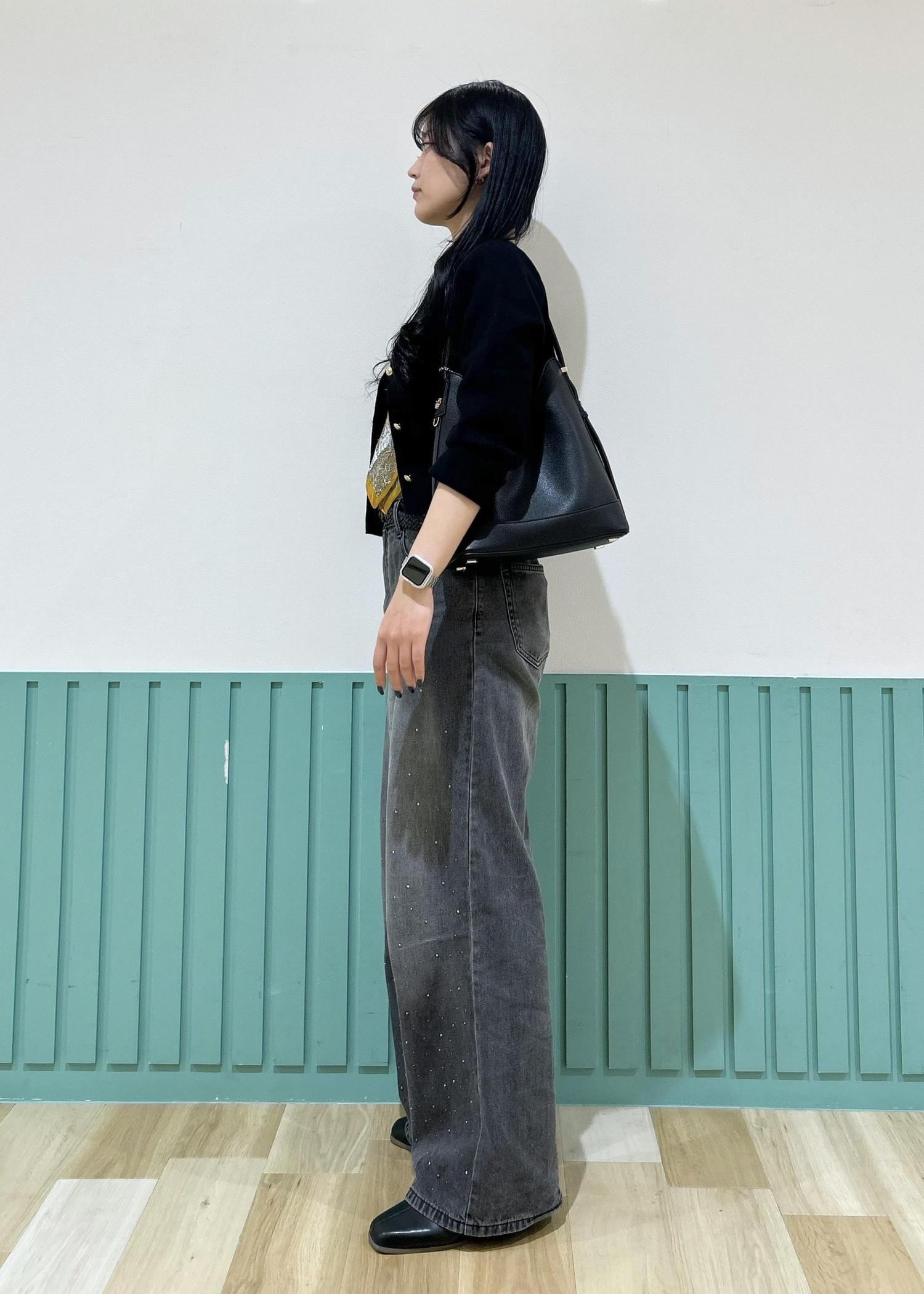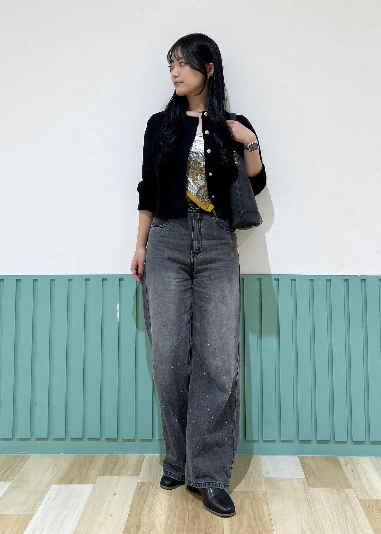 丈が短めなので、ワイドシルエットのデニムと合わせても