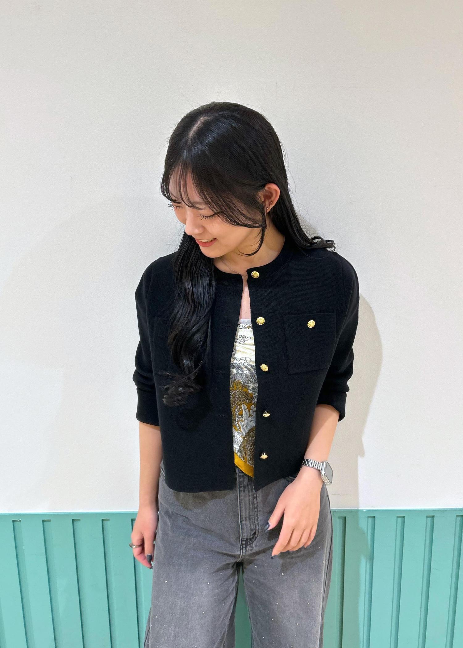 ビジューのさりげないきらめきでカジュアルすぎない印象にしました。