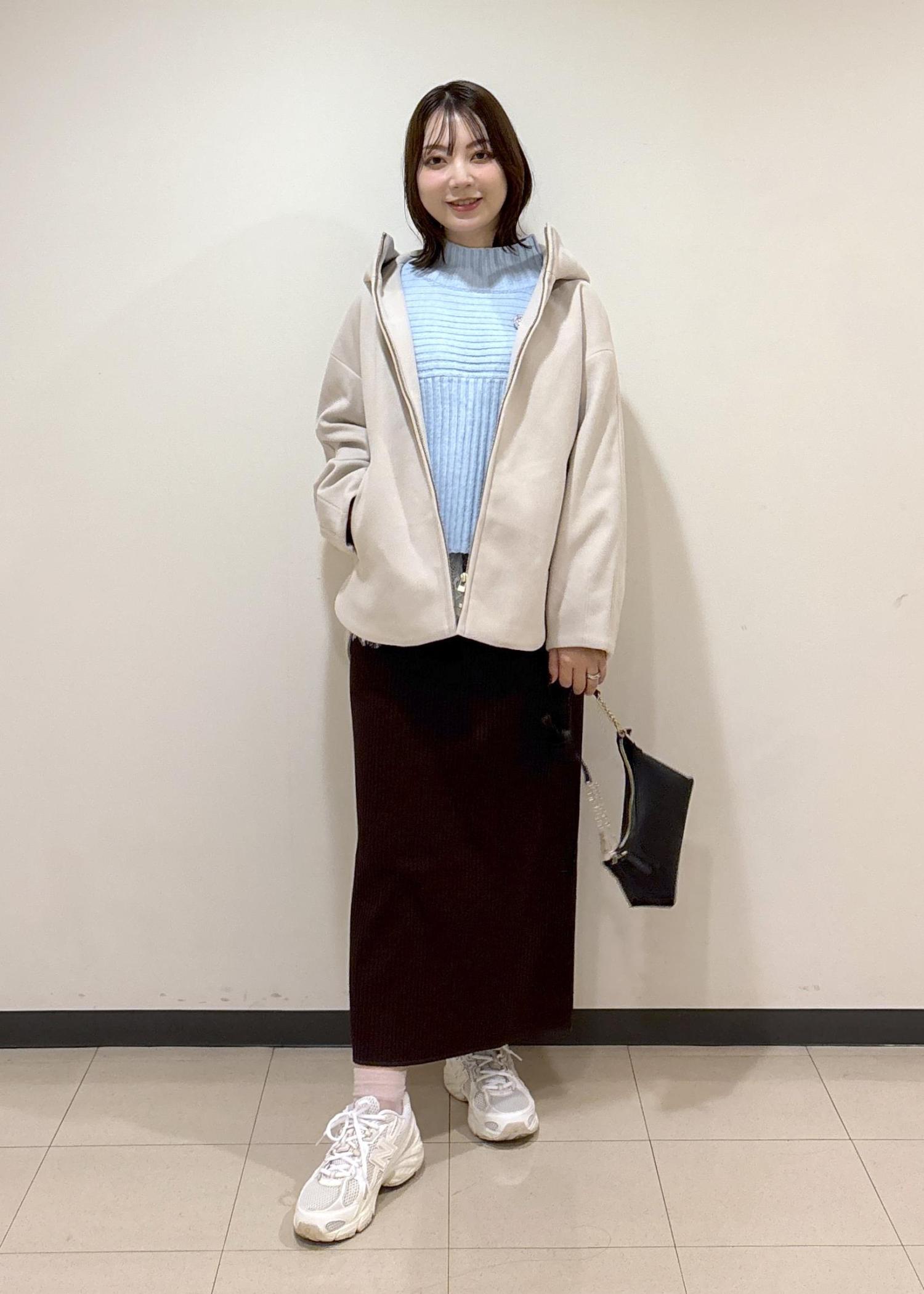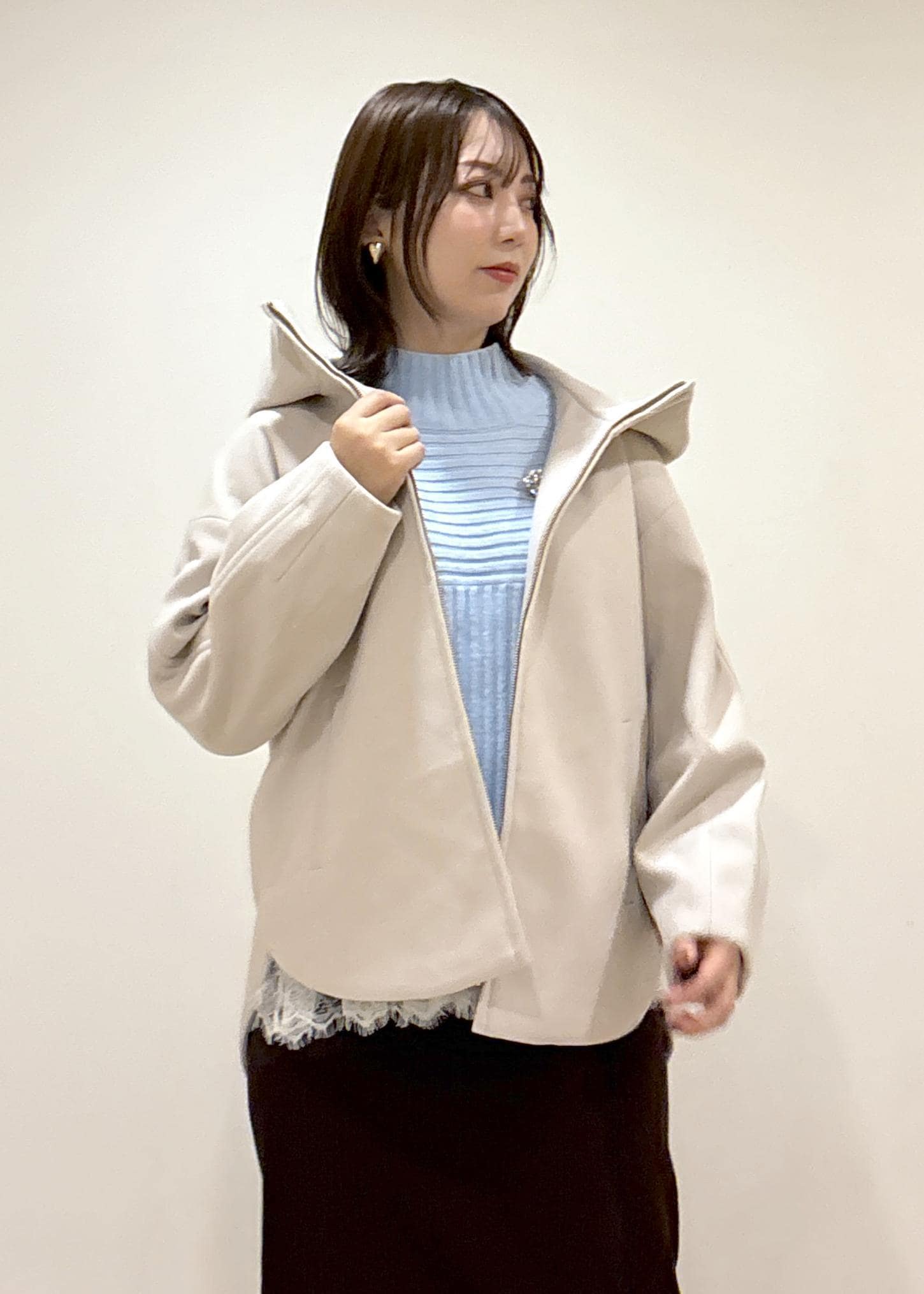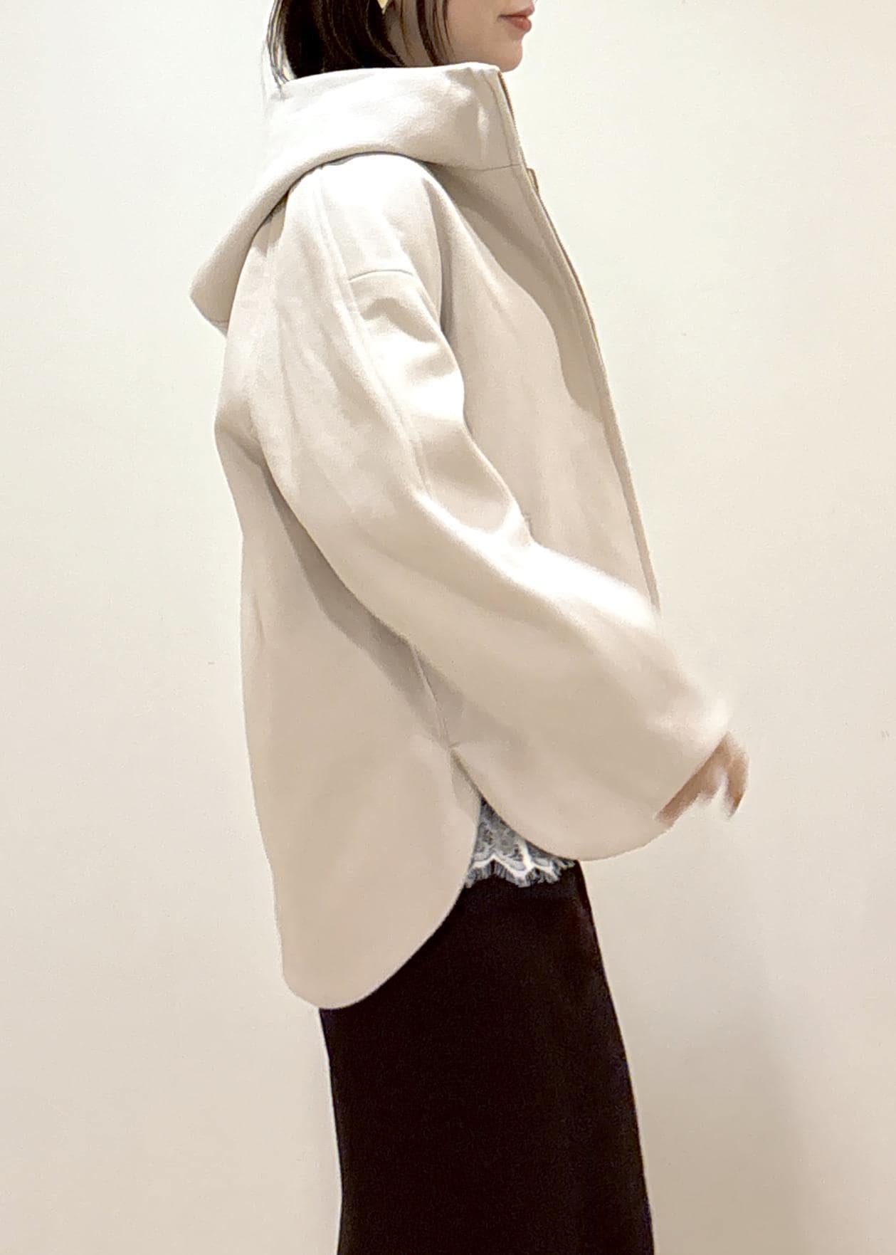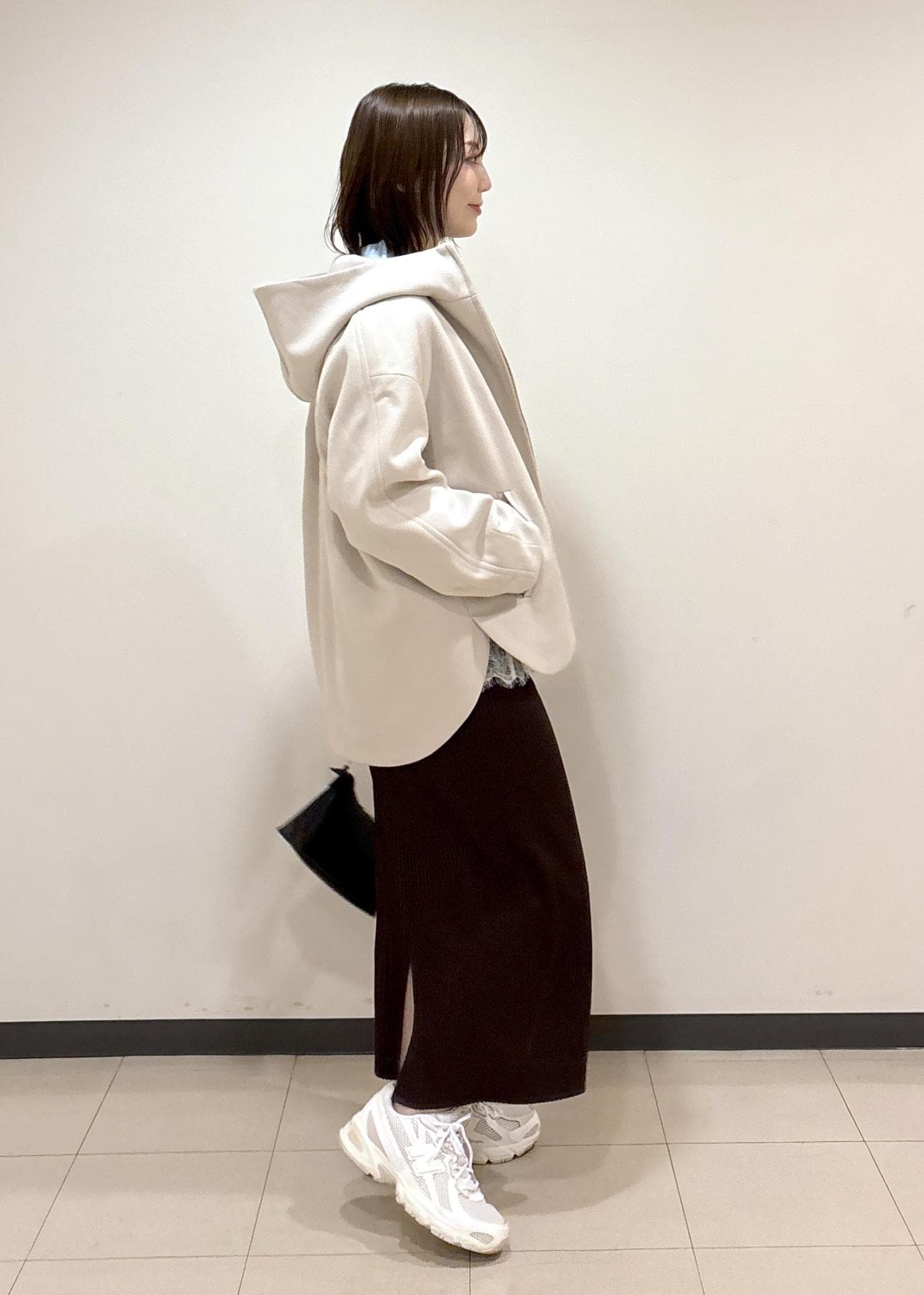 袖にかけて丸みのあるデザインや大きめのフードで抜け感出ます。 -