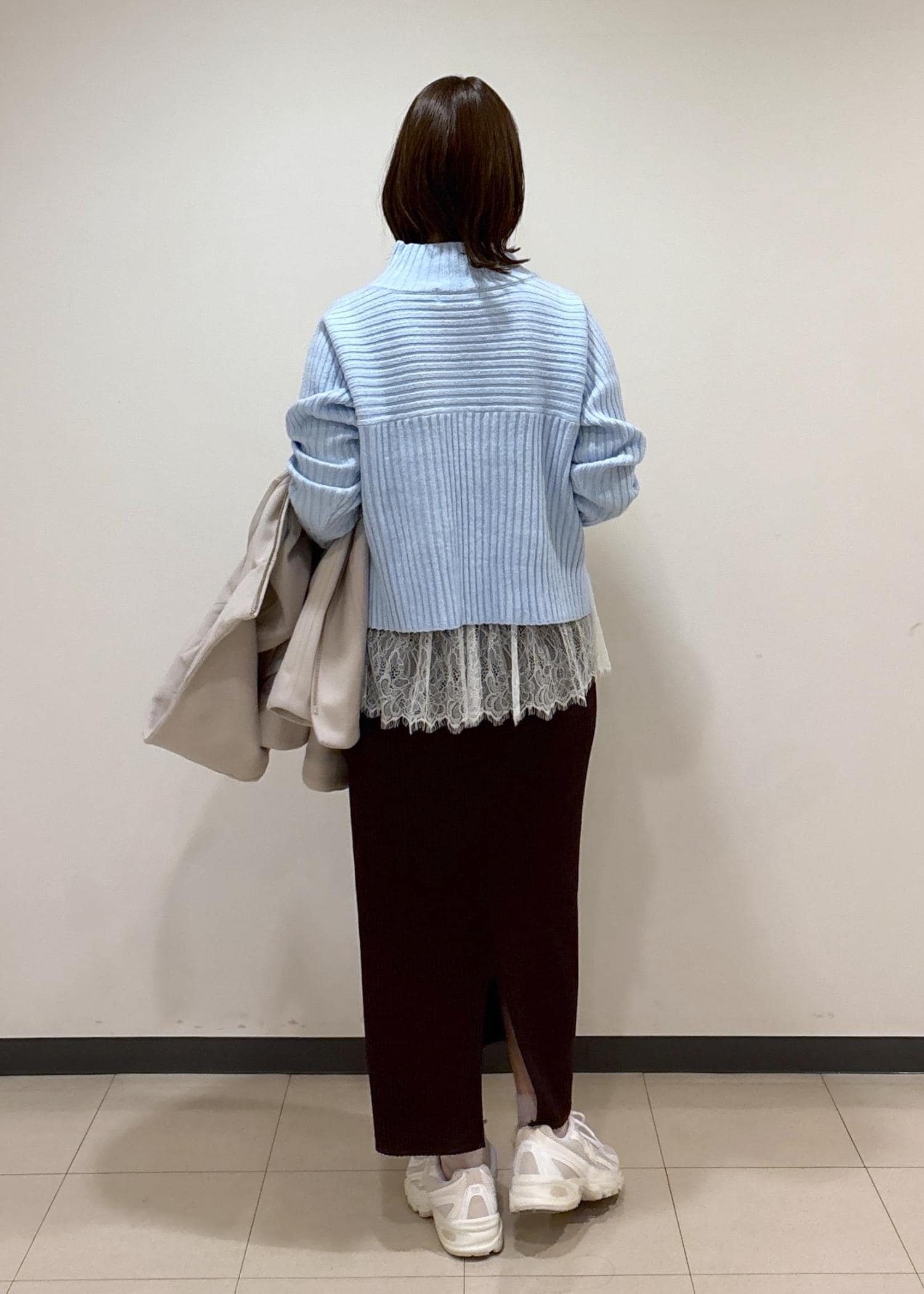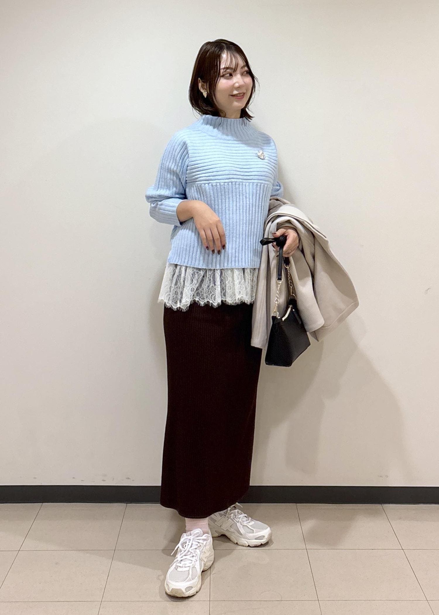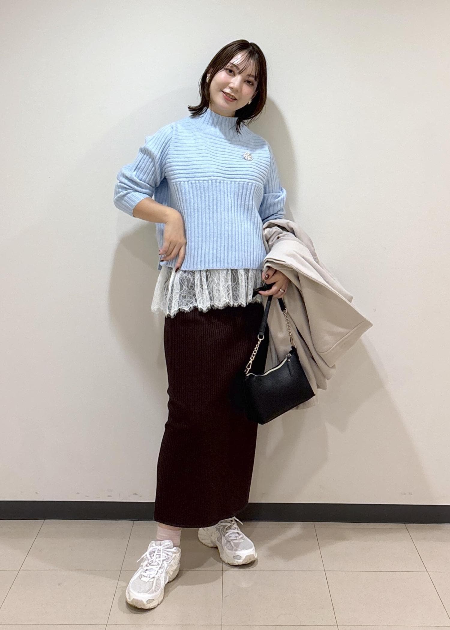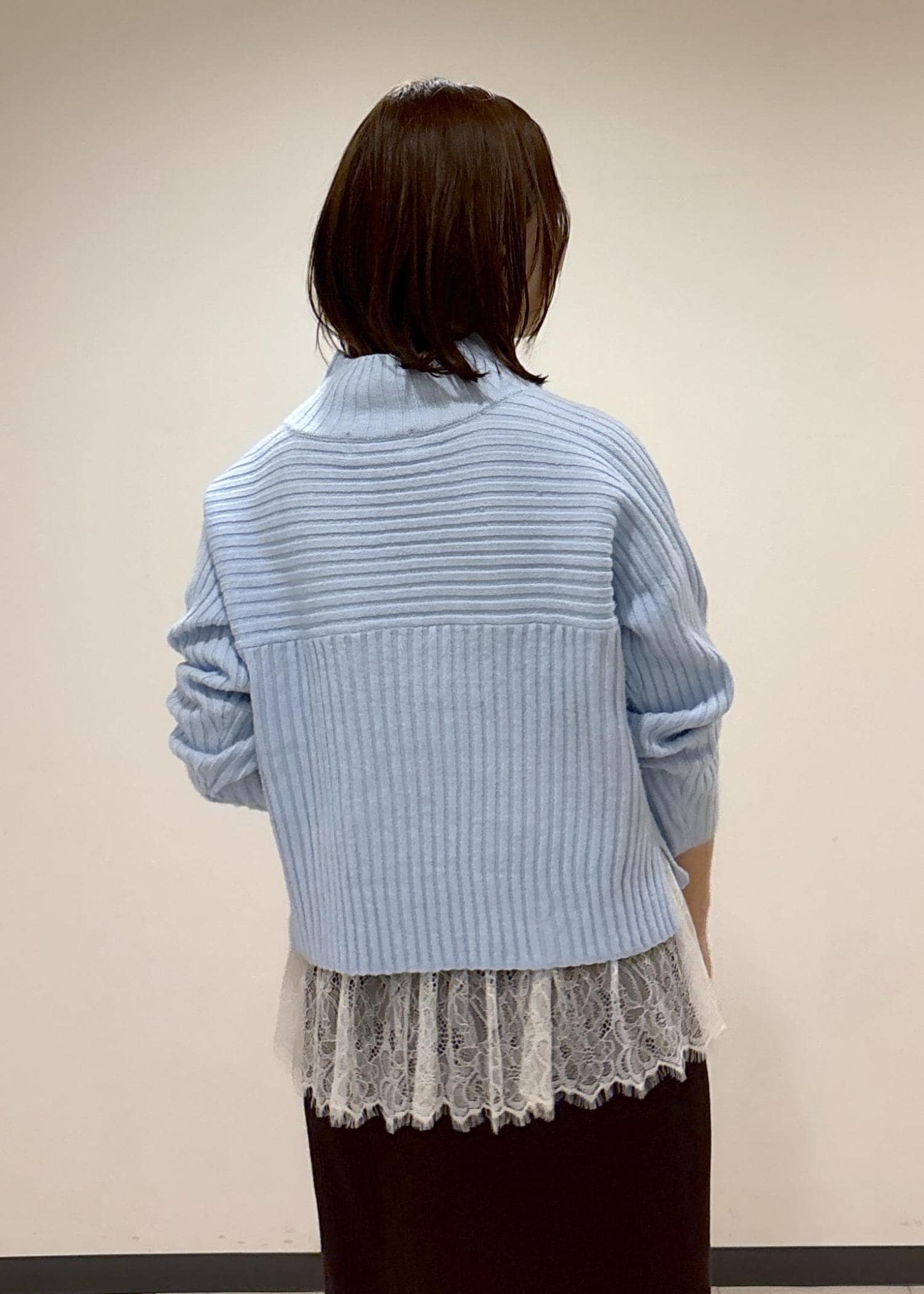 ROPÉ PICNICもちもちリブ切り替えニットプルオーバー/イージーケア・リンクコーデサックス / M¥4,499レビューハイネックですけど首周りゆとりあってチクチク感ないです。