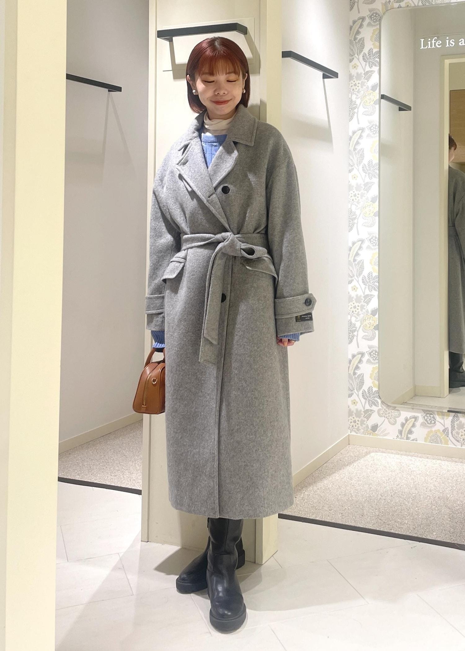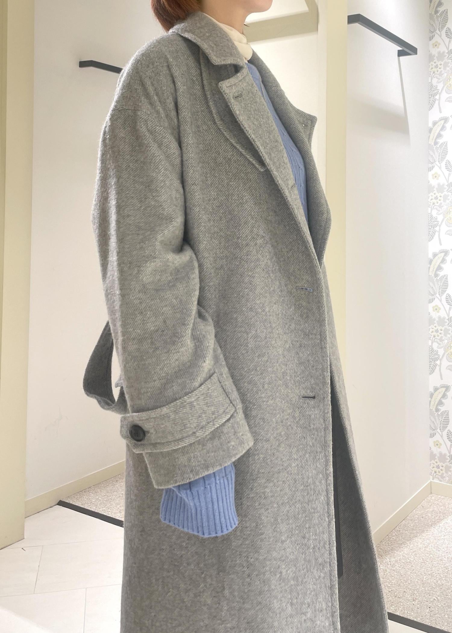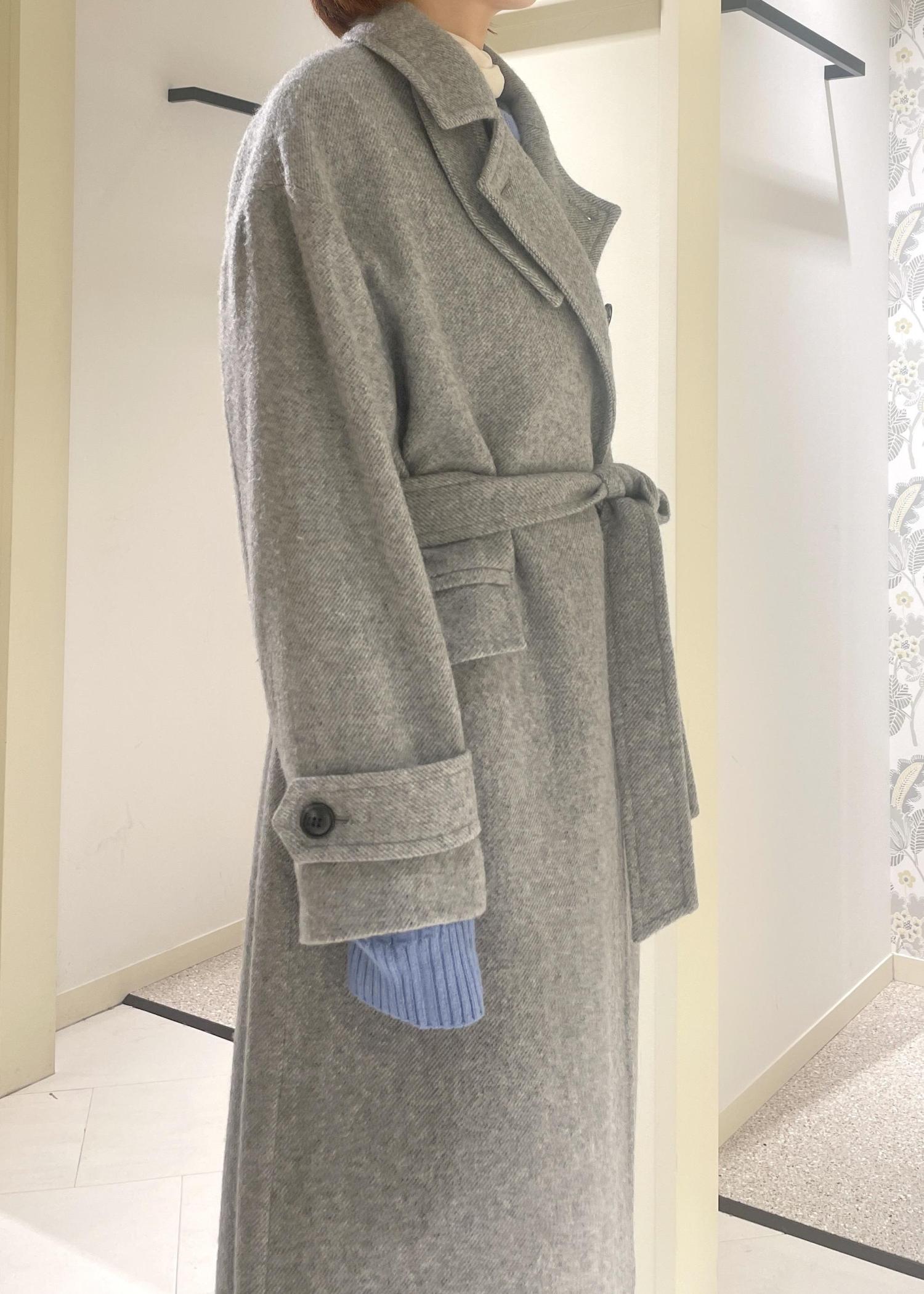 着丈は、膝下でロング丈ですが、ボタンやポケット位置が高く、ネックのデザインもあり、重量感を感じずバランス良く着て頂けます。