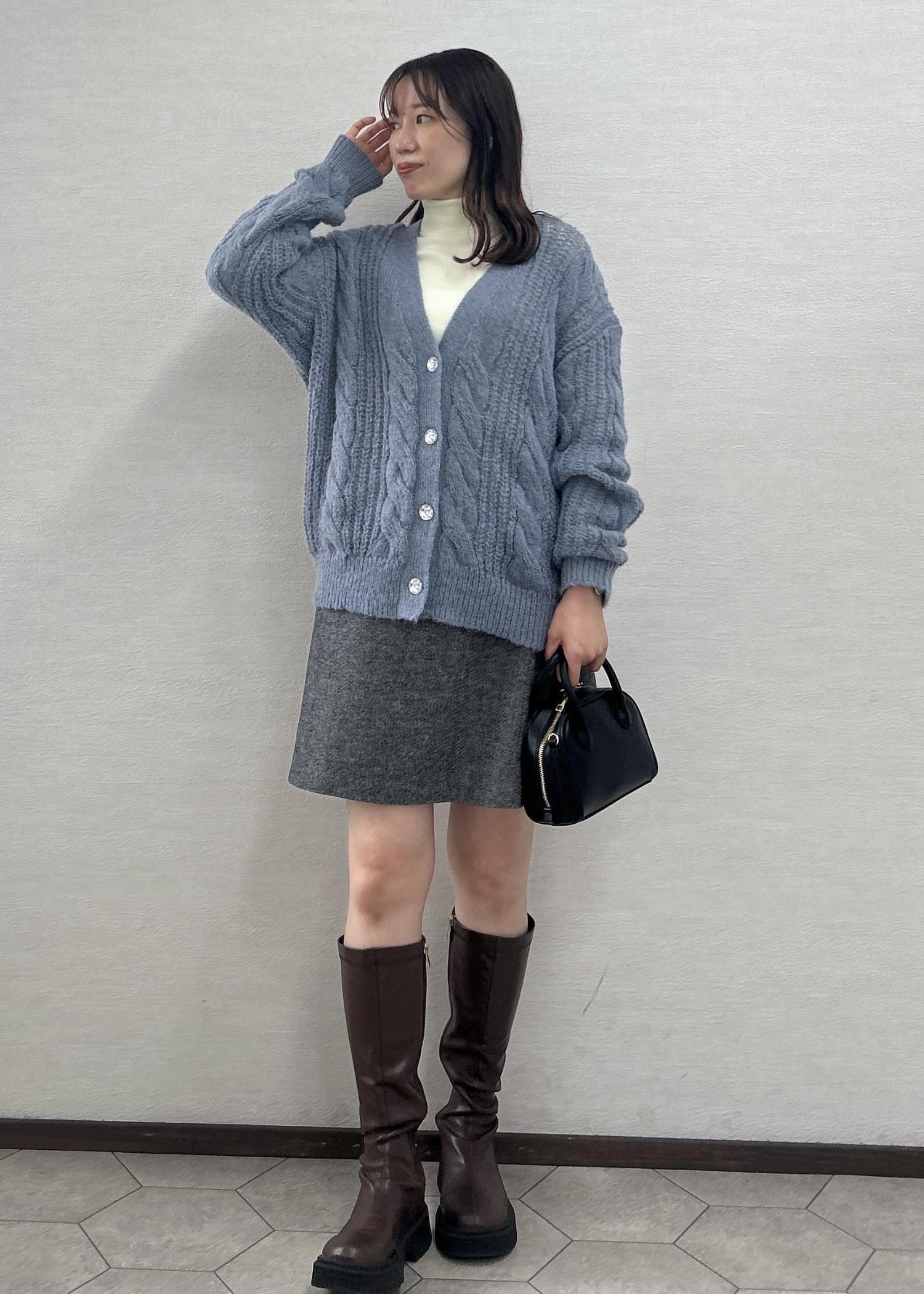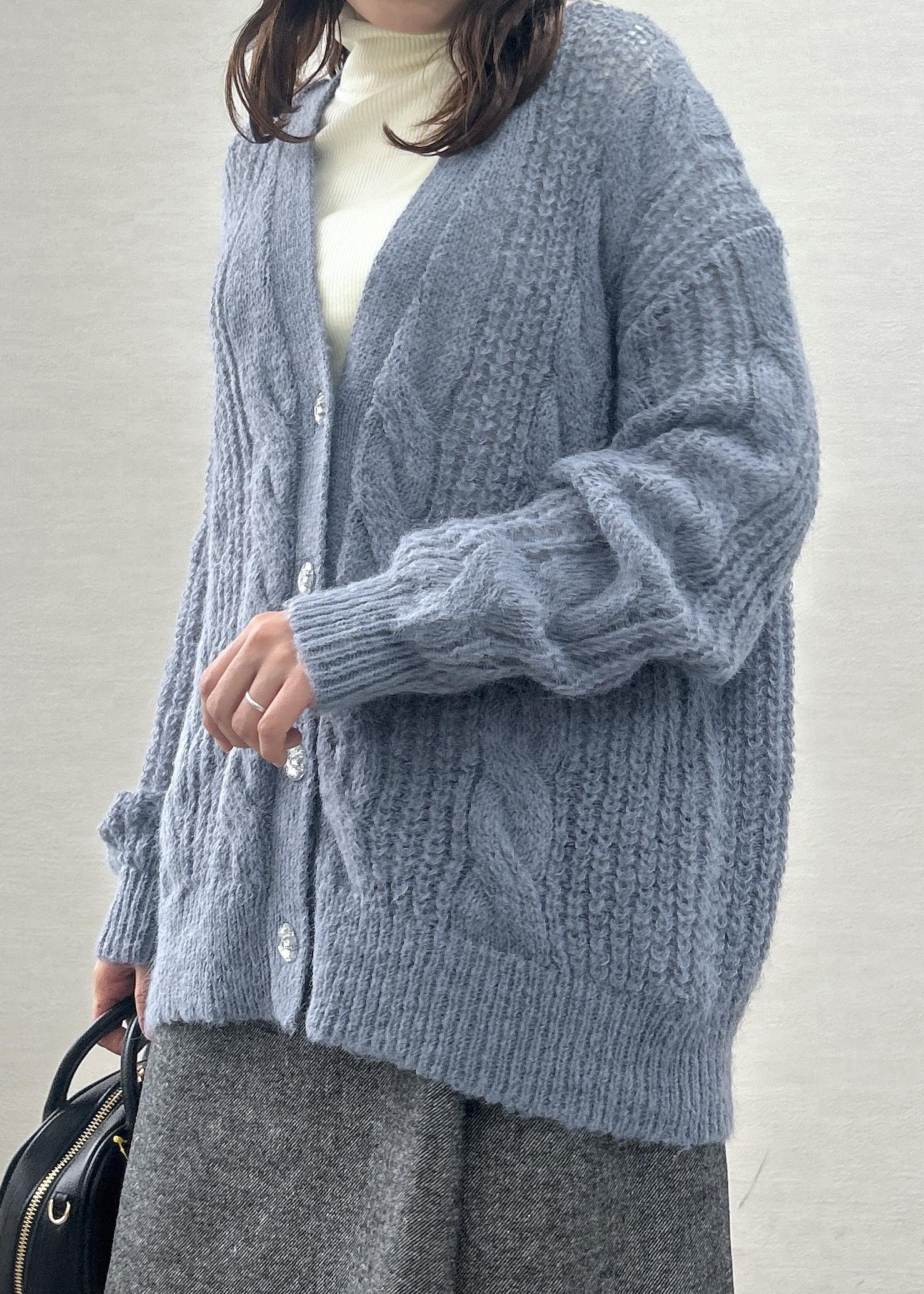ROPÉ PICNICゆるケーブル編みVネックニットカーディガンブルー系 / F¥5,995レビューヒップがすっぽり隠れる長さです。