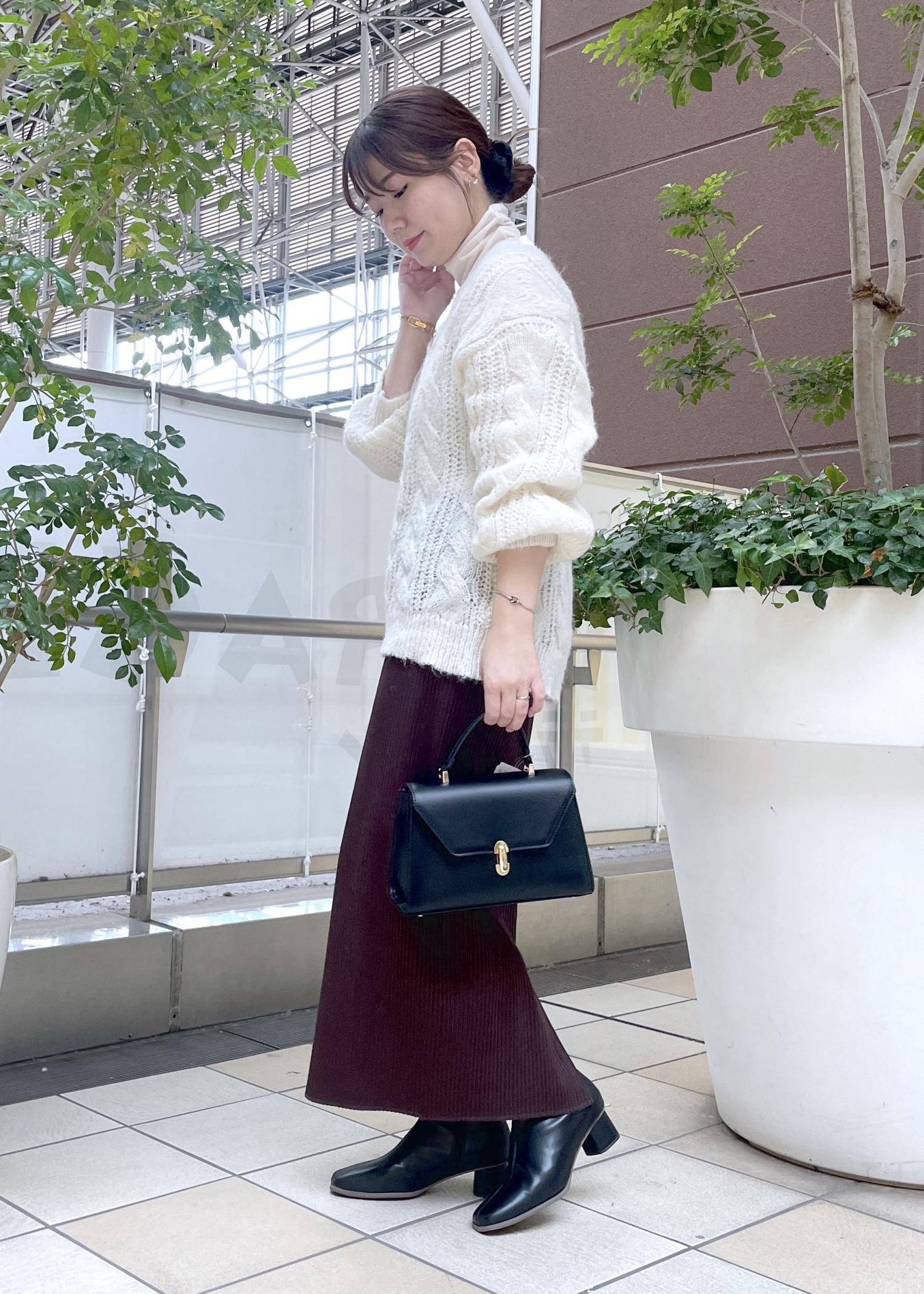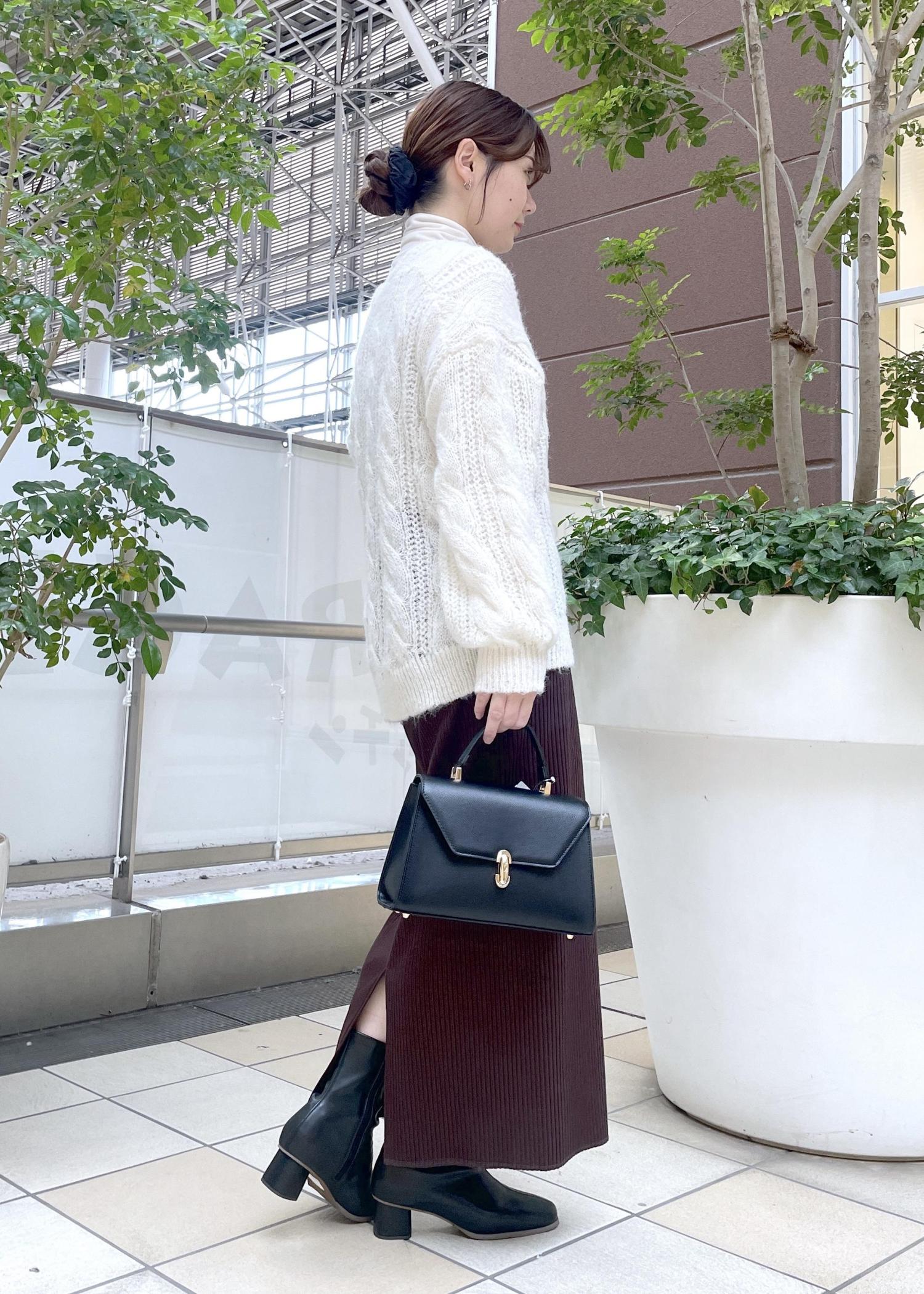小物はブラックを合わせて大人っぽい雰囲気にまとめました。
