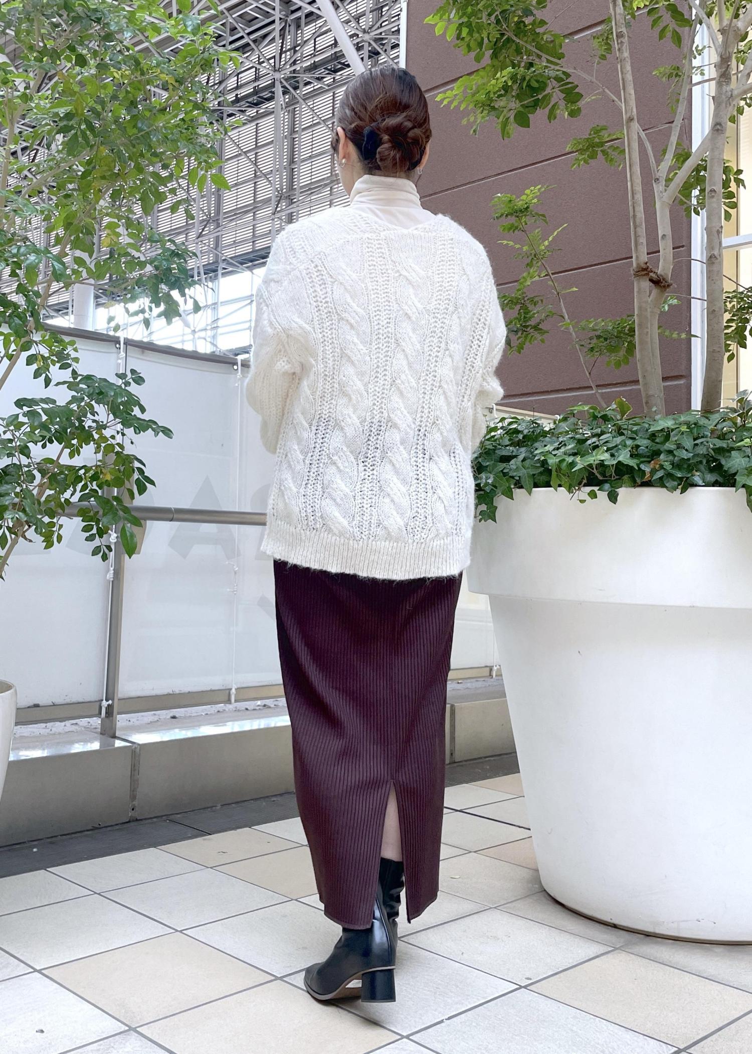 白のざっくりニットが可愛いきれいめカジュアルコーデです。