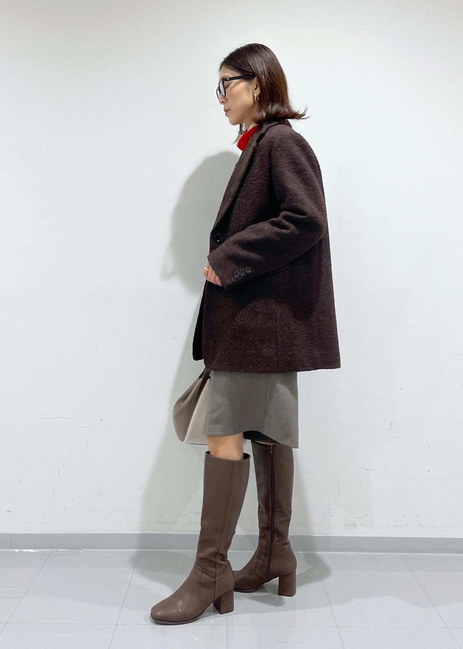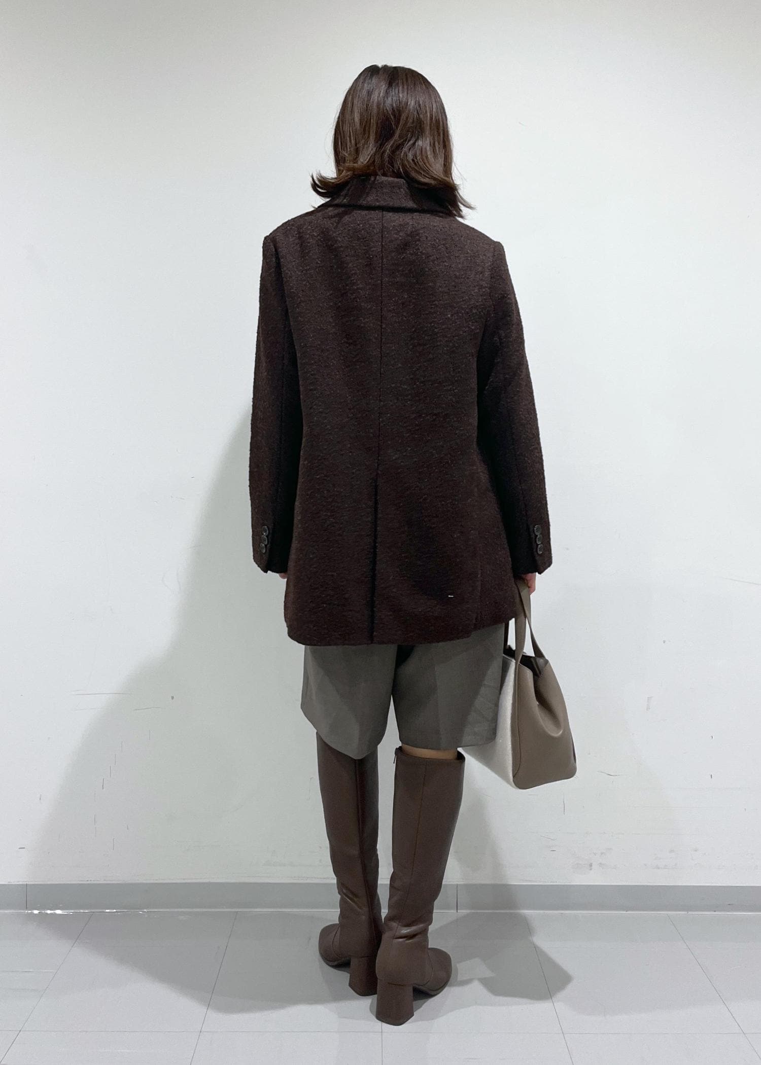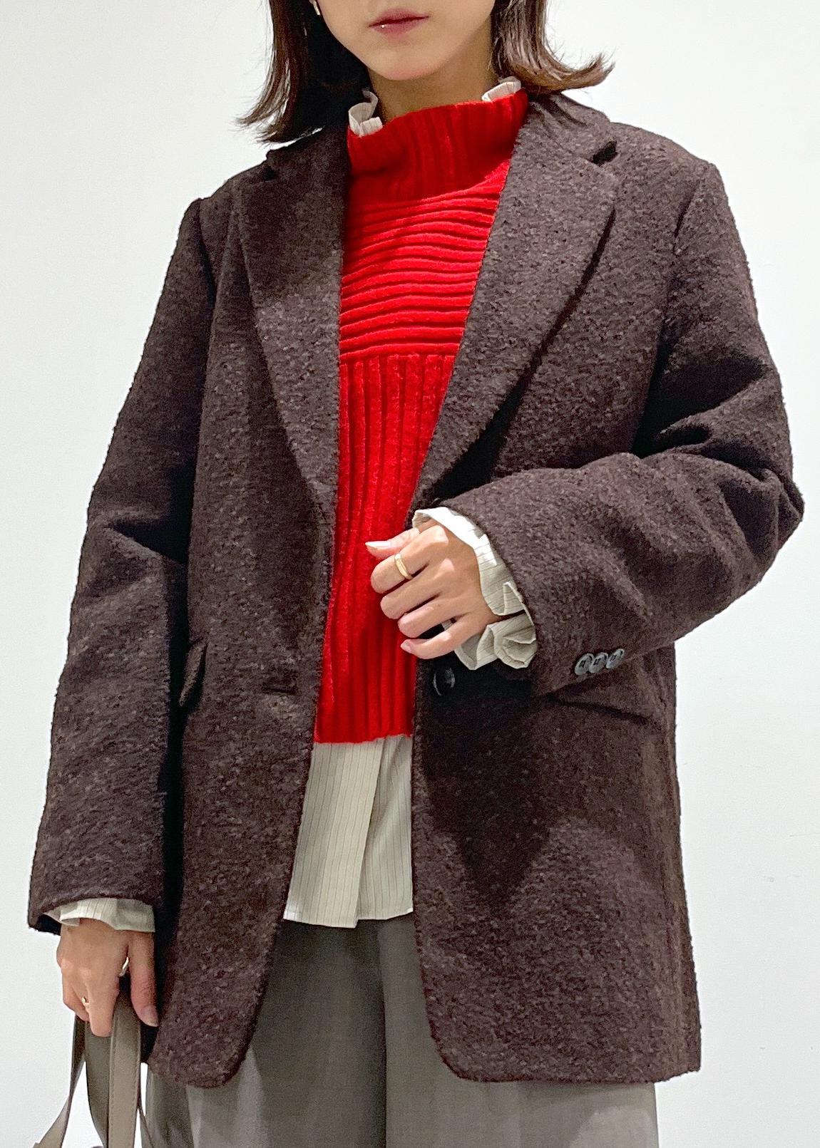 大きめのサイズ感ですが、シングルジャケットのデザインなので着膨れ感なく着用でき、カジュアルコーデだけでなくきちんとスタイルにもおすすめです。 -