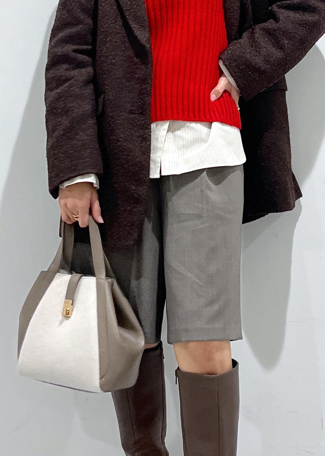 春夏のハーフパンツ(GDS15130)よりも着丈が長く、膝まであるので大人きれいめスタイルにも取り入れやすいです。