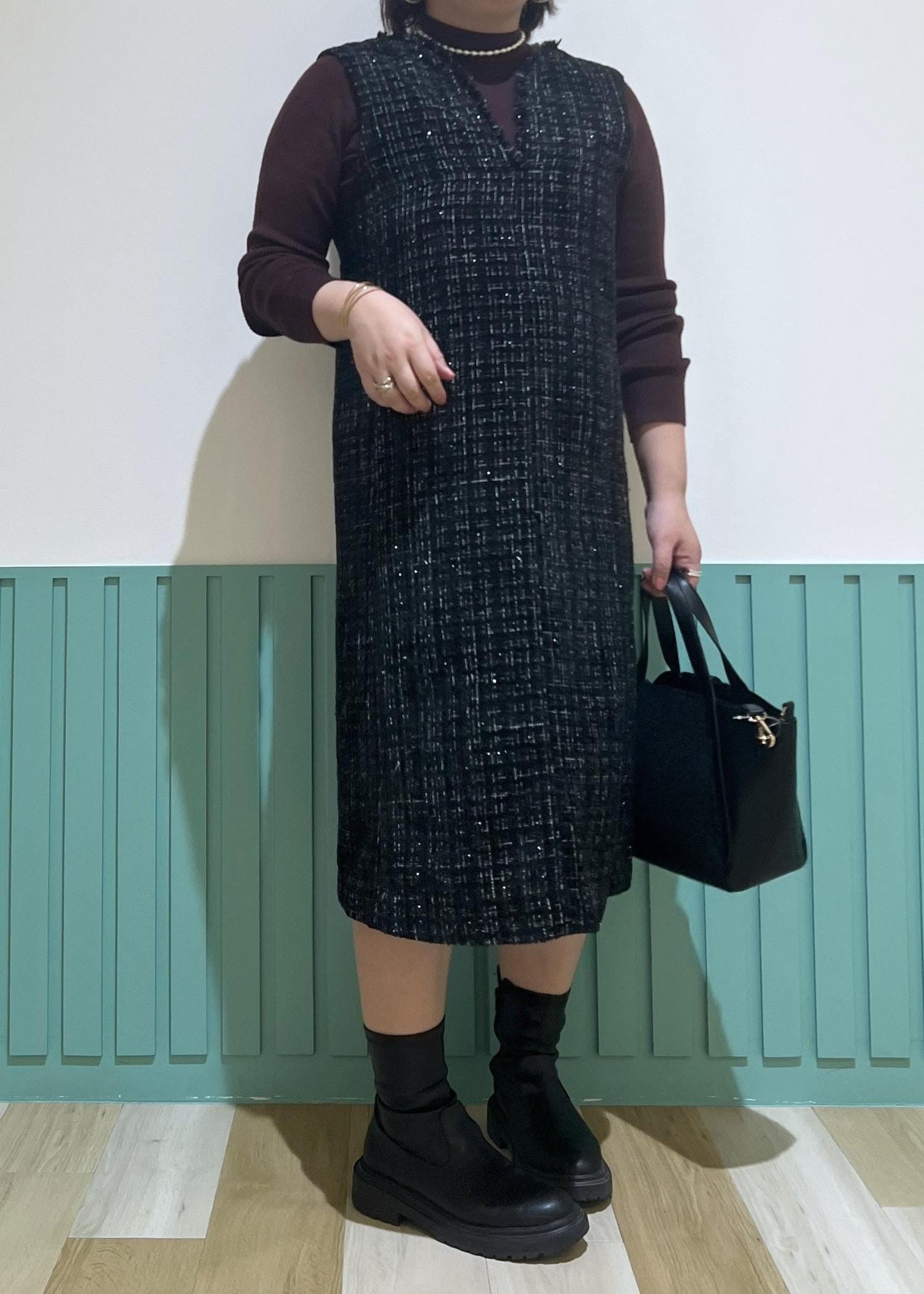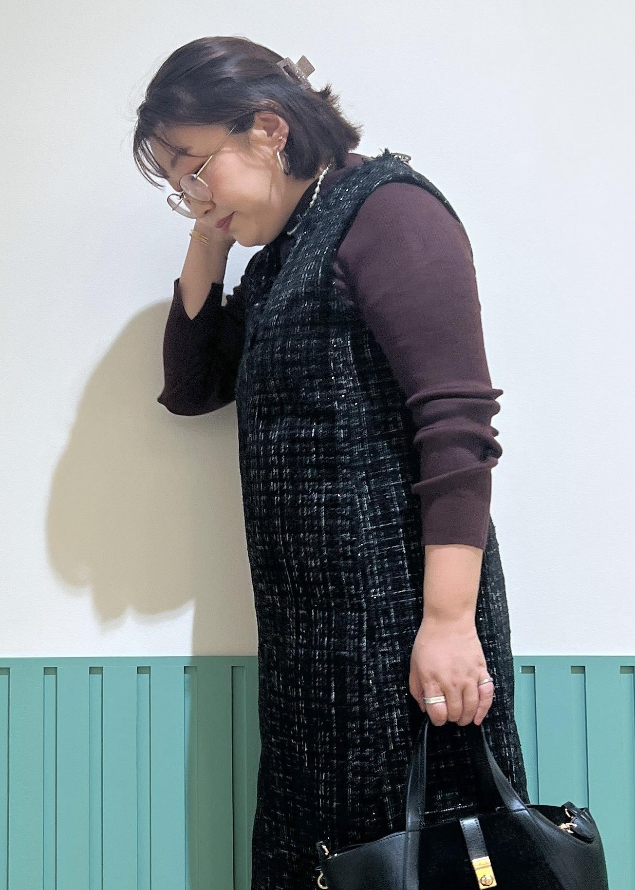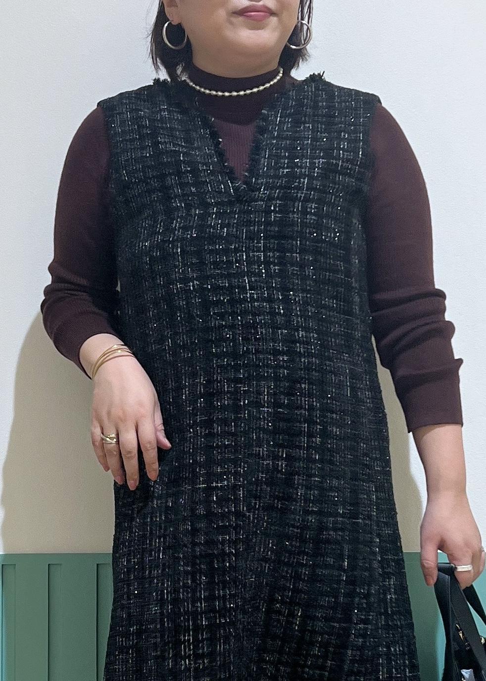 ROPÉ PICNICキーネックツイードジャンパースカート ワンピース/着丈が選べるブラック / MT¥8,998レビューキーネックで首元スッキリ♪