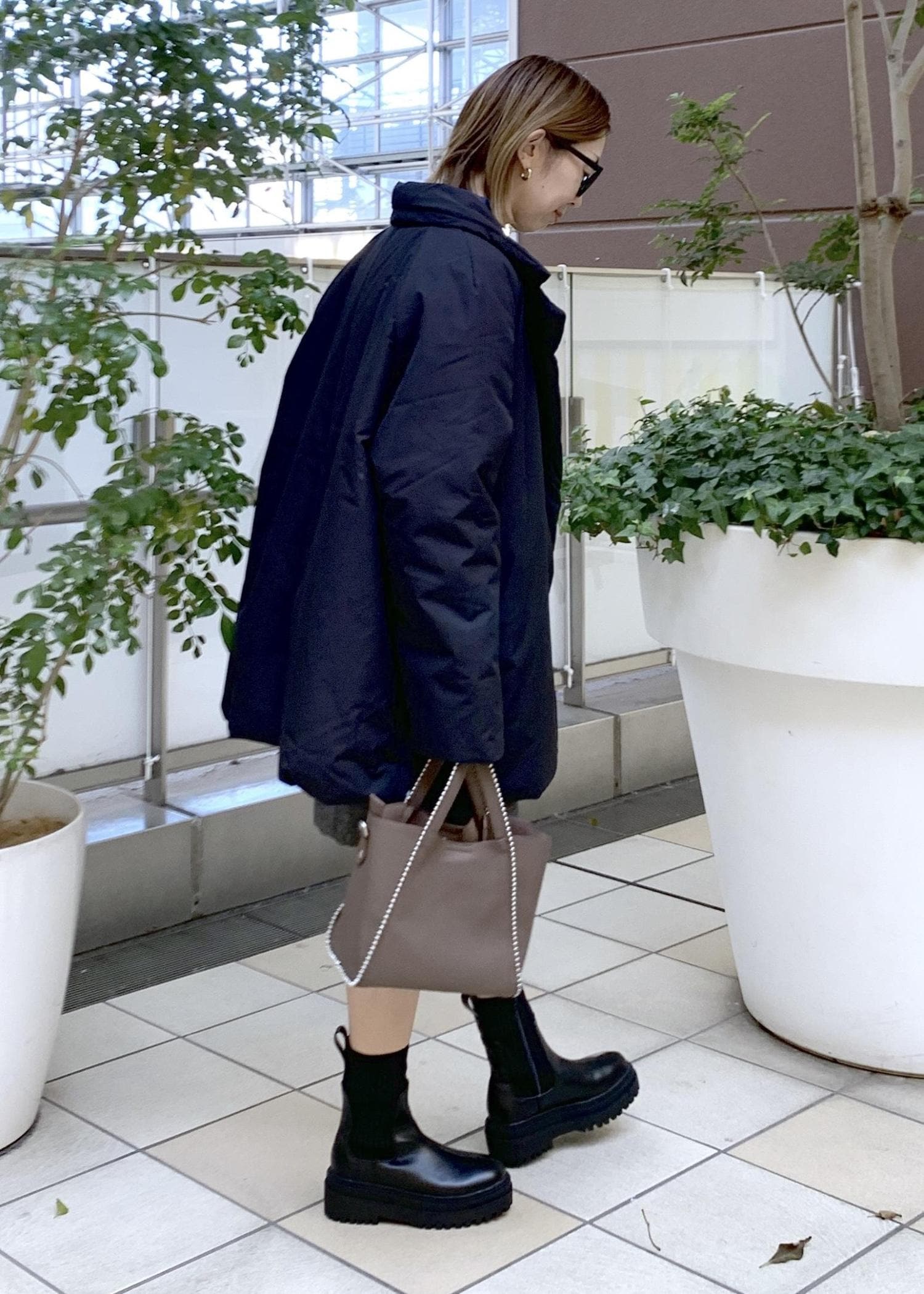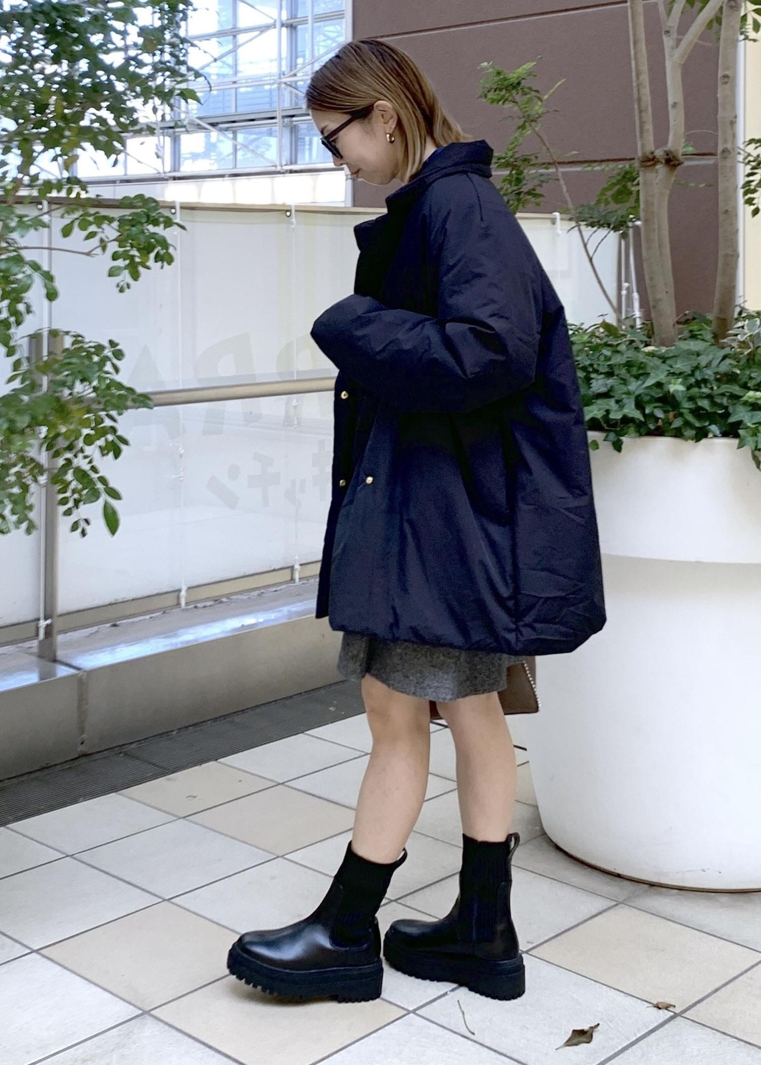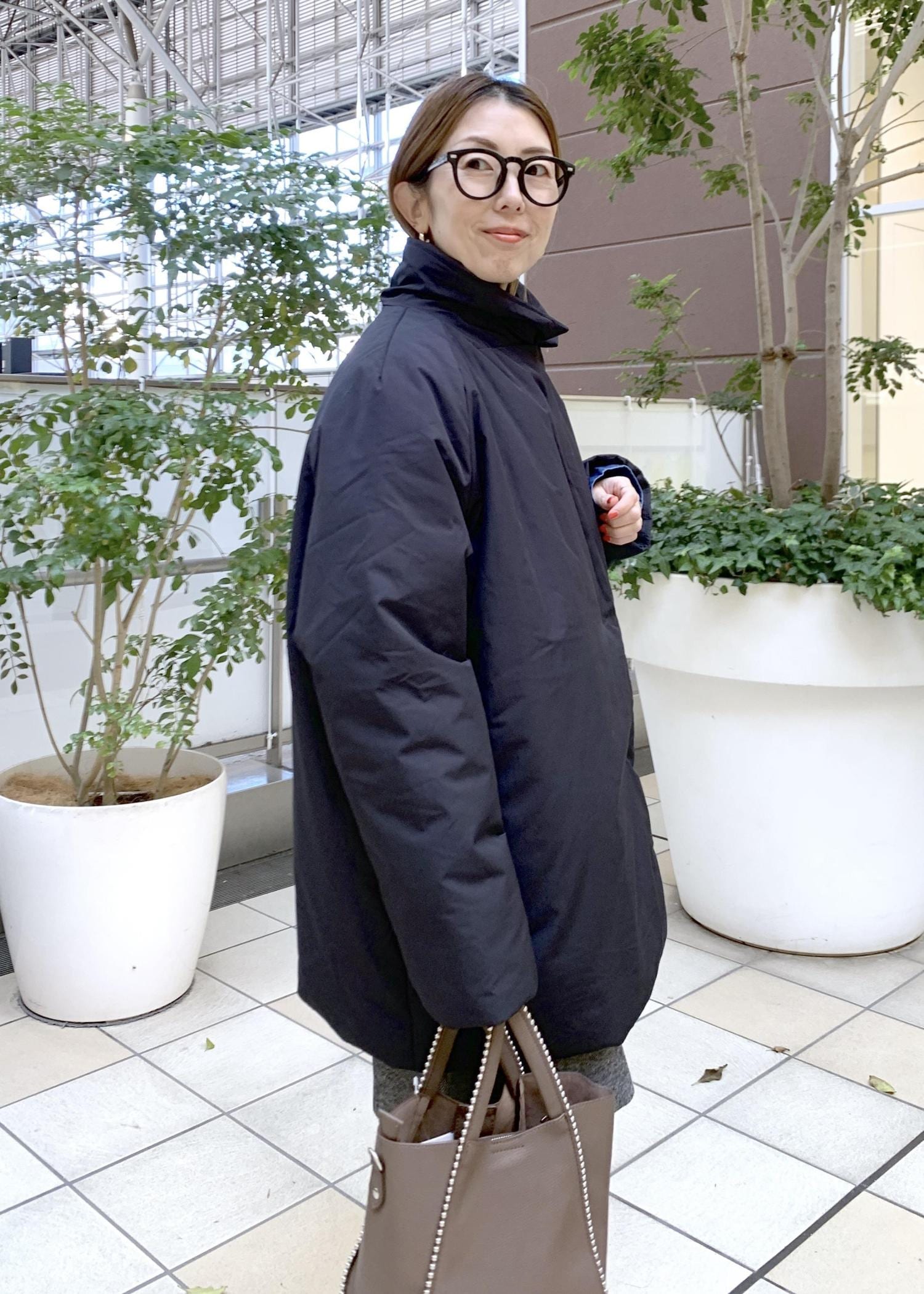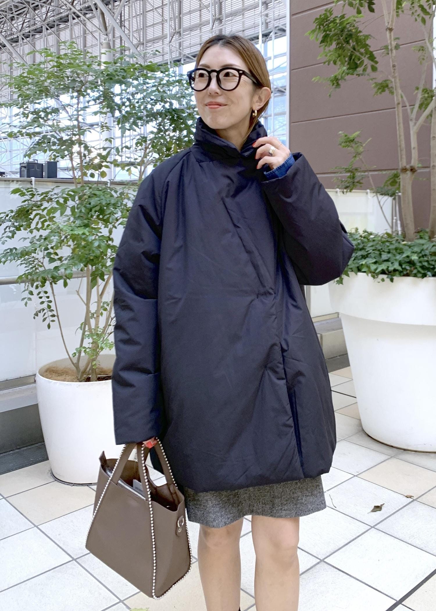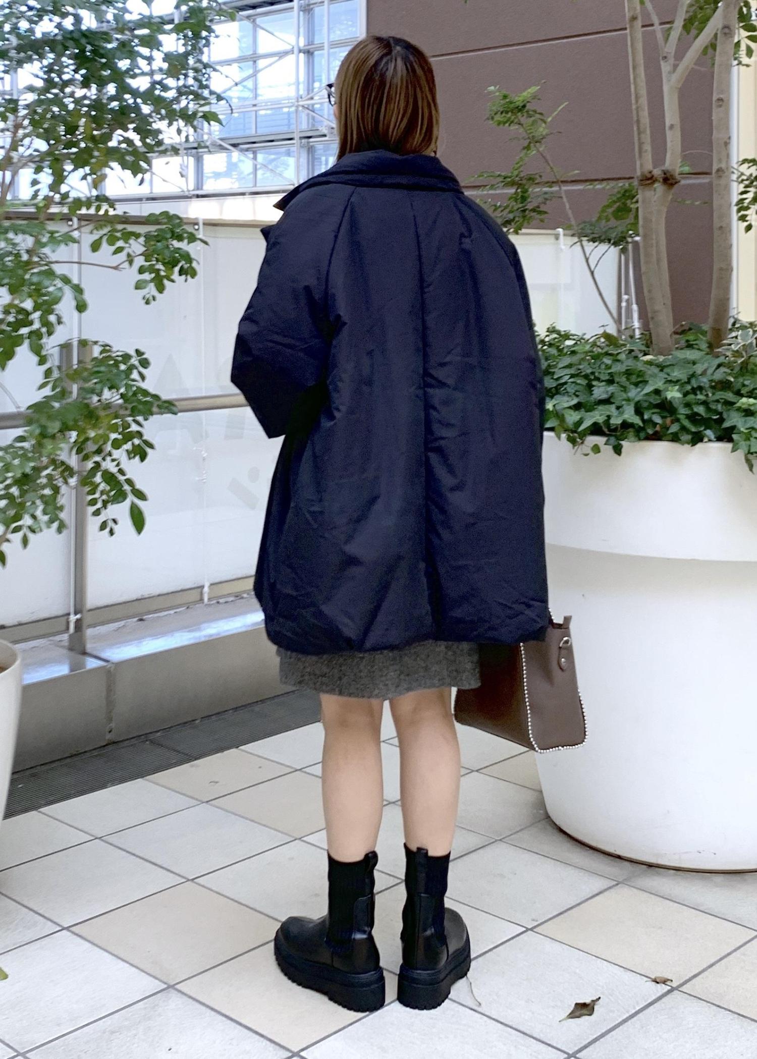 ゆったり感のあるコクーンシルエットの中綿アウター