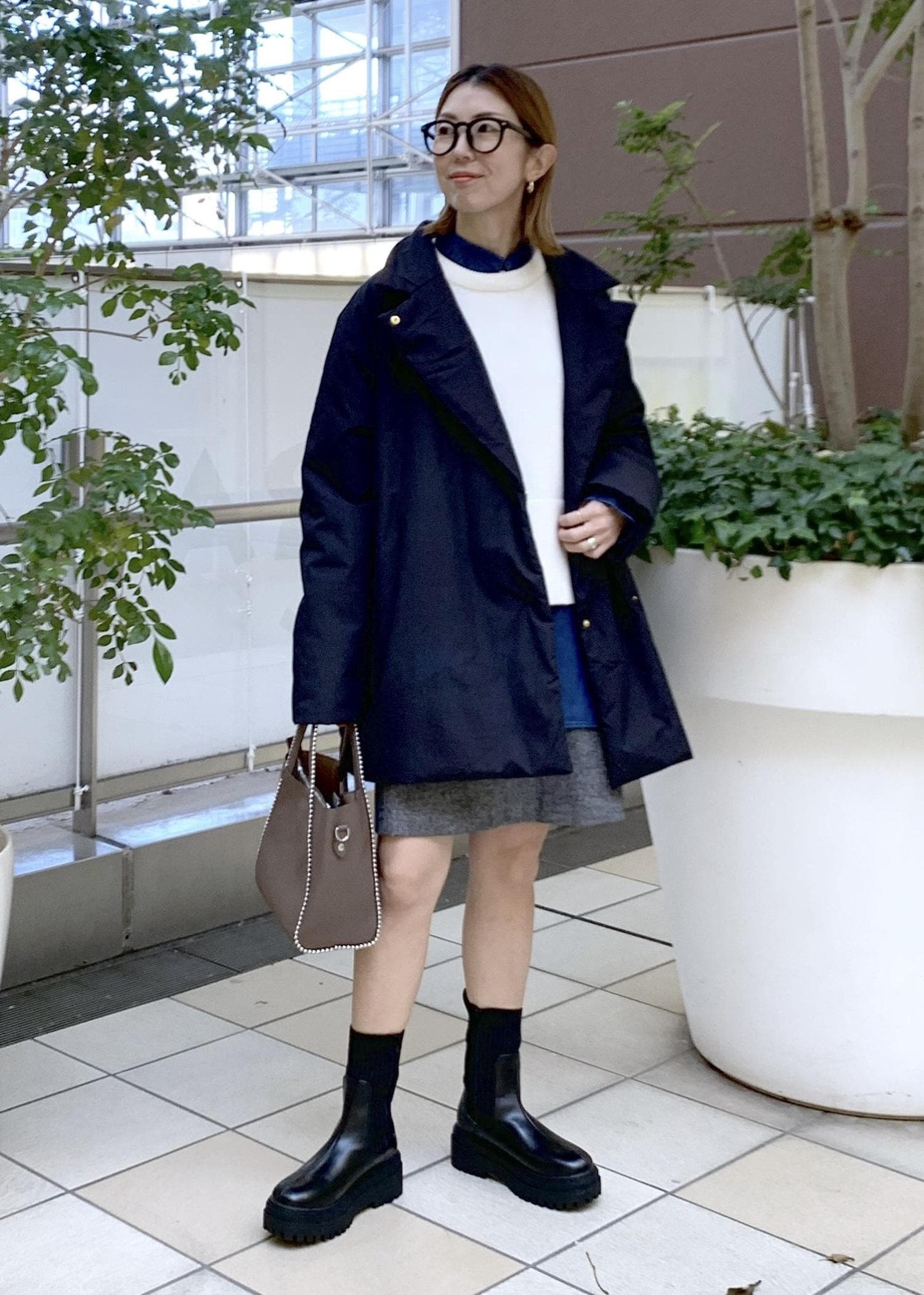 小柄さんにはややオーバーサイズなサイズ感なので、ミニボトムなどとの合わせがおすすめ。 -